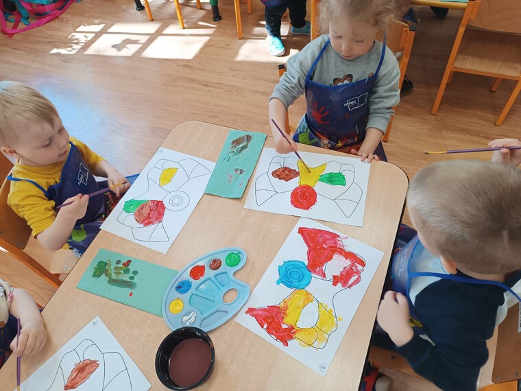 Pierwszy tydzień w grupie Kangurki już za nami! Minął on bardzo aktywnie i w kolorowych barwach. Dzieci z zaangażowaniem poznawały świat kolorów – segregowały je, budowały wieże z klocków, a także tworzyły własne, małe palety malarskie.