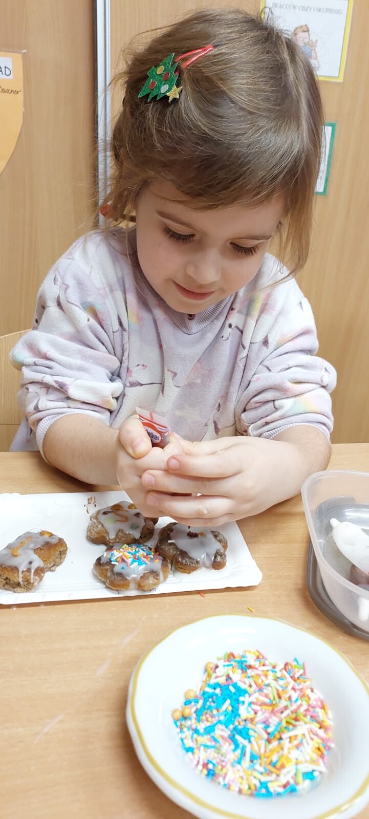 W środę, 10 grudnia, grupa Biedronki spędziła czas na pełnej smacznej pracy i świątecznej zabawie. Dzieci z zapałem przygotowywały świąteczne pierniczki, a przy tym towarzyszyły im śmiech, radość i wspaniała atmosfera.