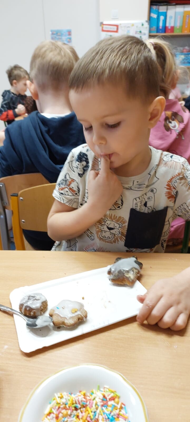 W powietrzu unosiły się aromatyczne zapachy przypraw do pierników połączone ze słodkim aromatem lukru, co dodatkowo wprowadzało przedszkolaków w świąteczny nastrój.