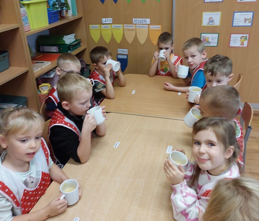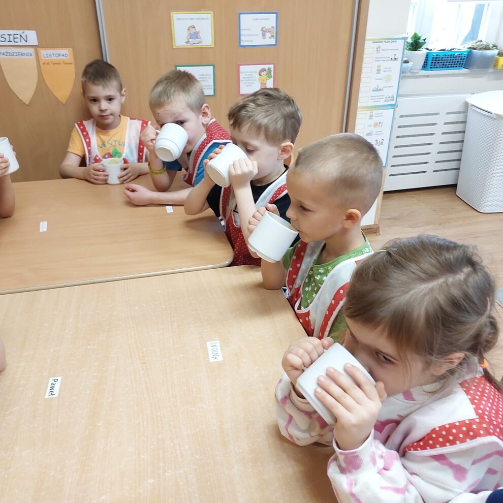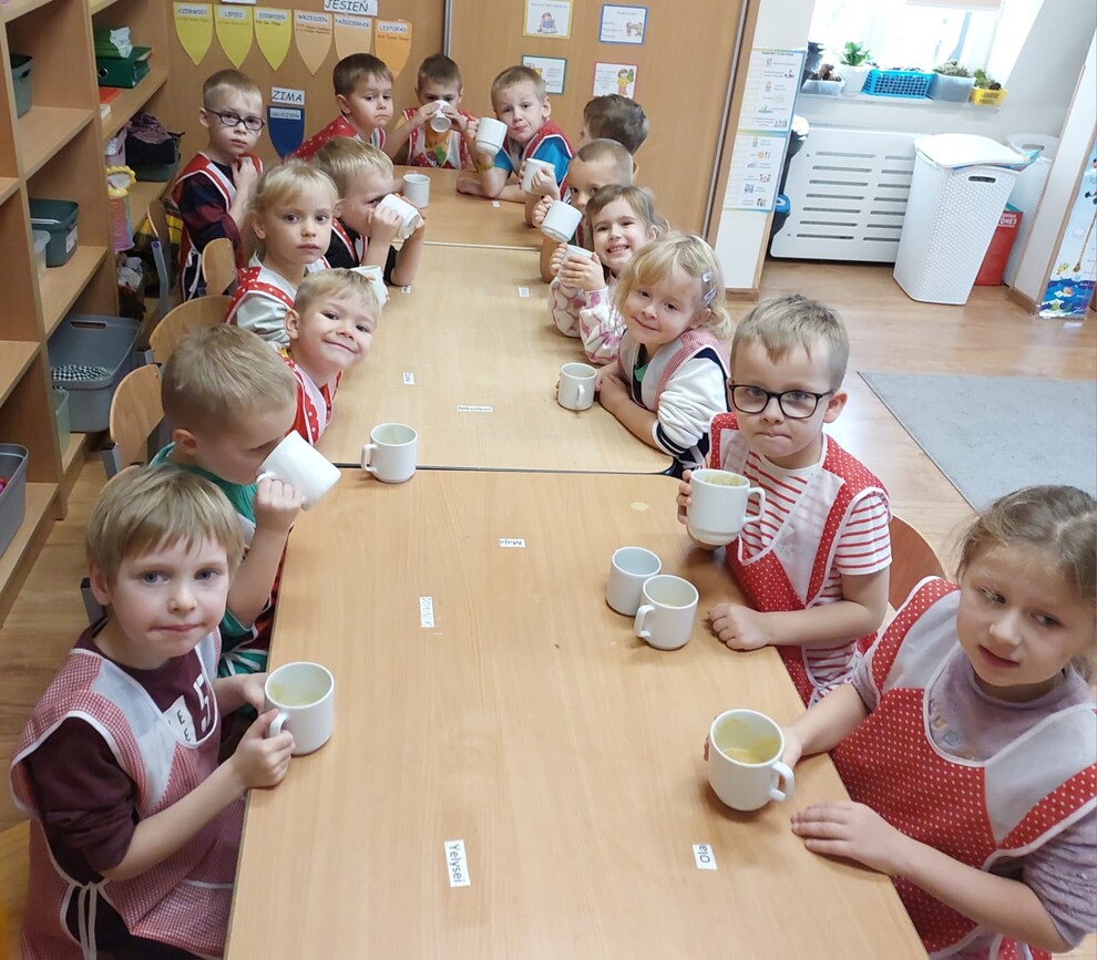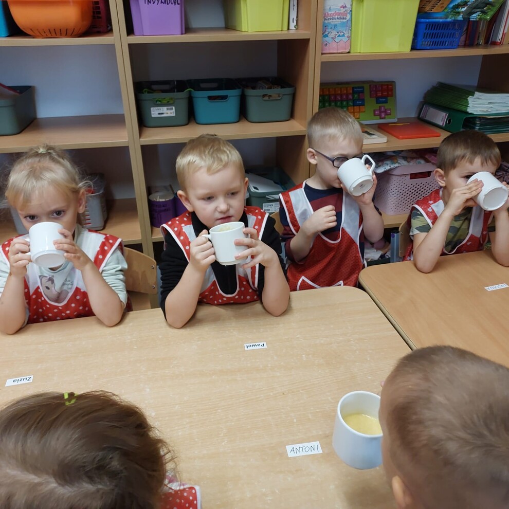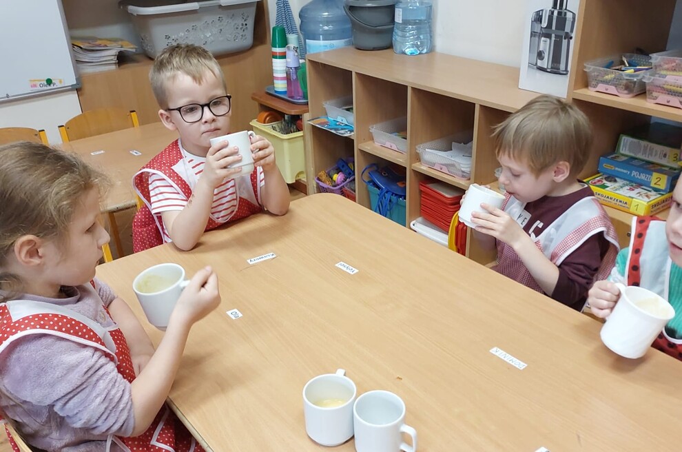 Samodzielnie wykonany sok zachwycił dzieci wyjątkowym smakiem. Podczas degustacji przedszkolaki rozpoznawały poszczególne owoce: jabłka, gruszki, kiwi, pomarańcze i mandarynki.