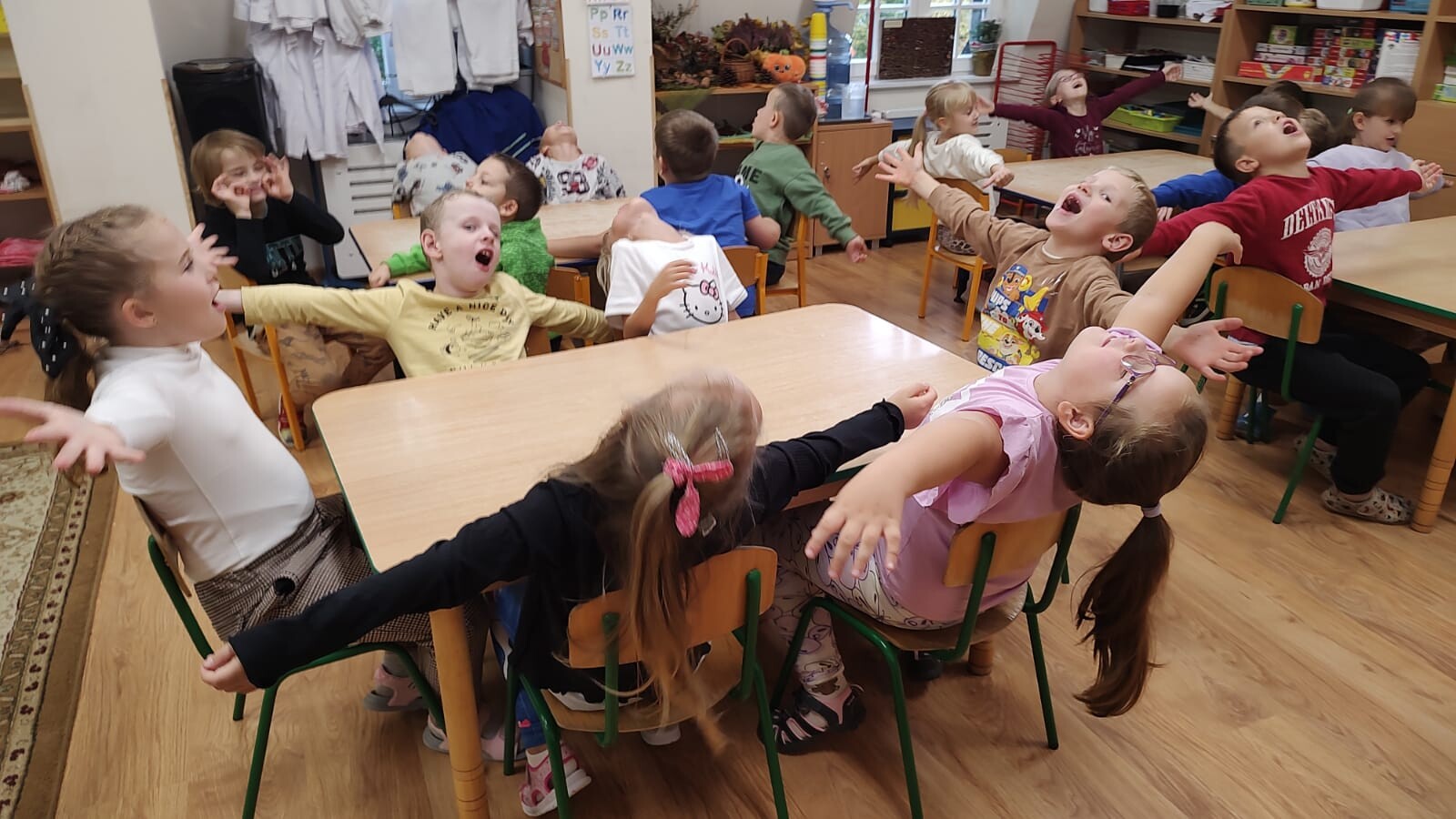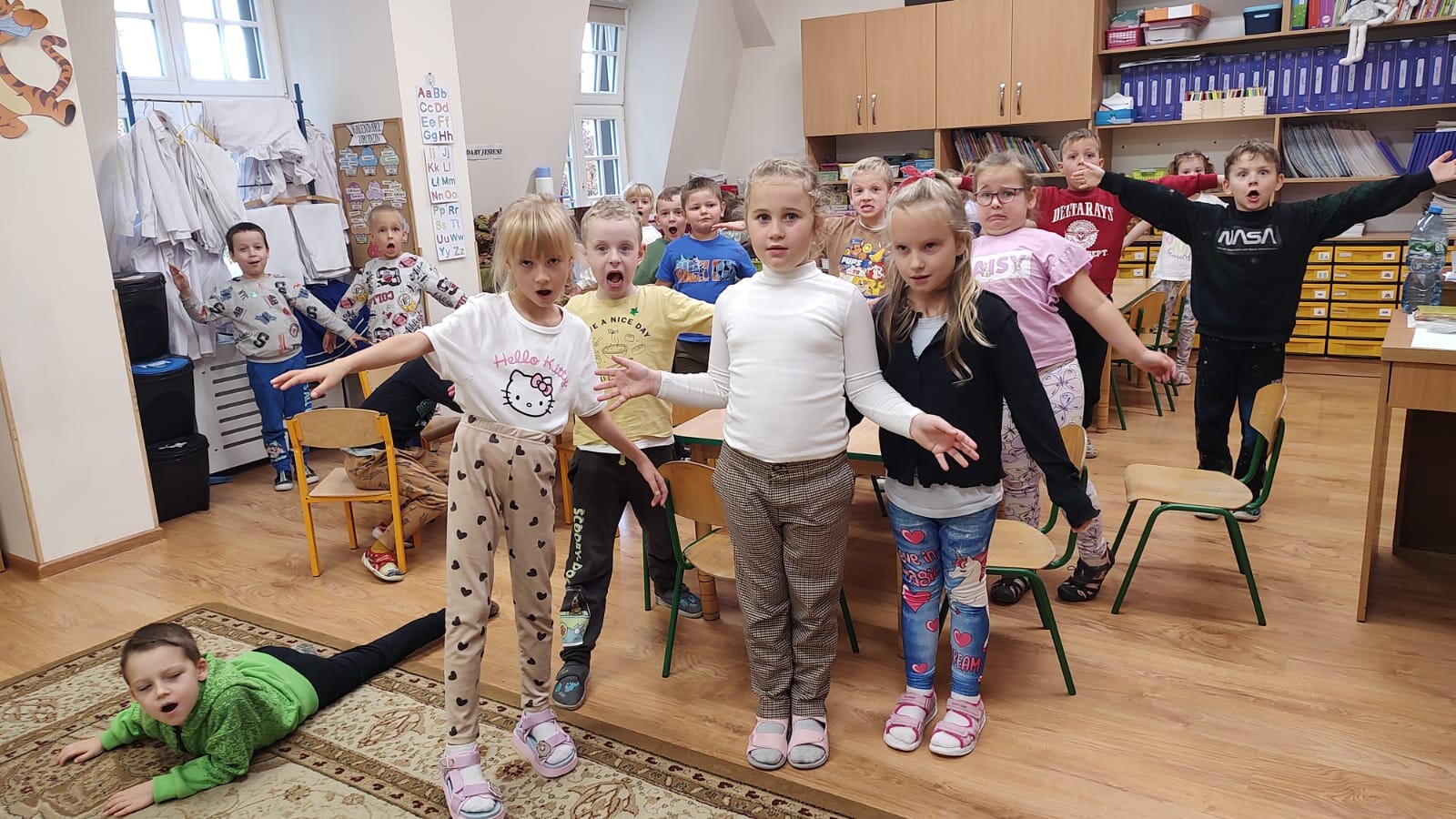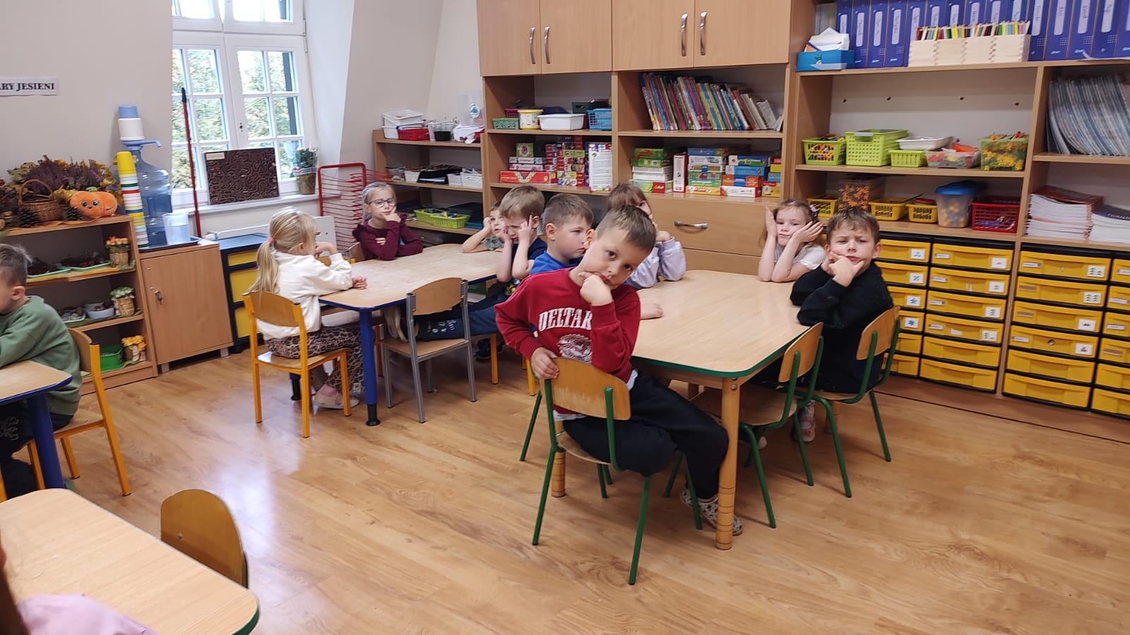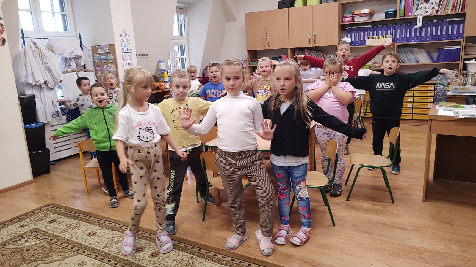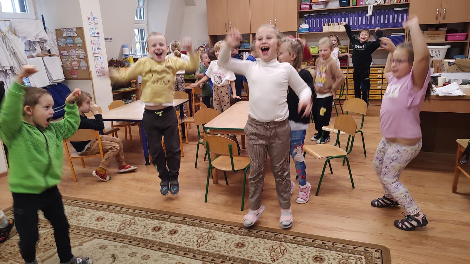 Na początku zajęć przedszkolaki wysłuchały opowiadania o Panu Łału, a następnie rozmawiały o sytuacjach, w których mogą się zdziwić. Dzieci ćwiczyły wyrażanie emocji mimiką i gestem – było przy tym mnóstwo śmiechu i spontanicznej radości.