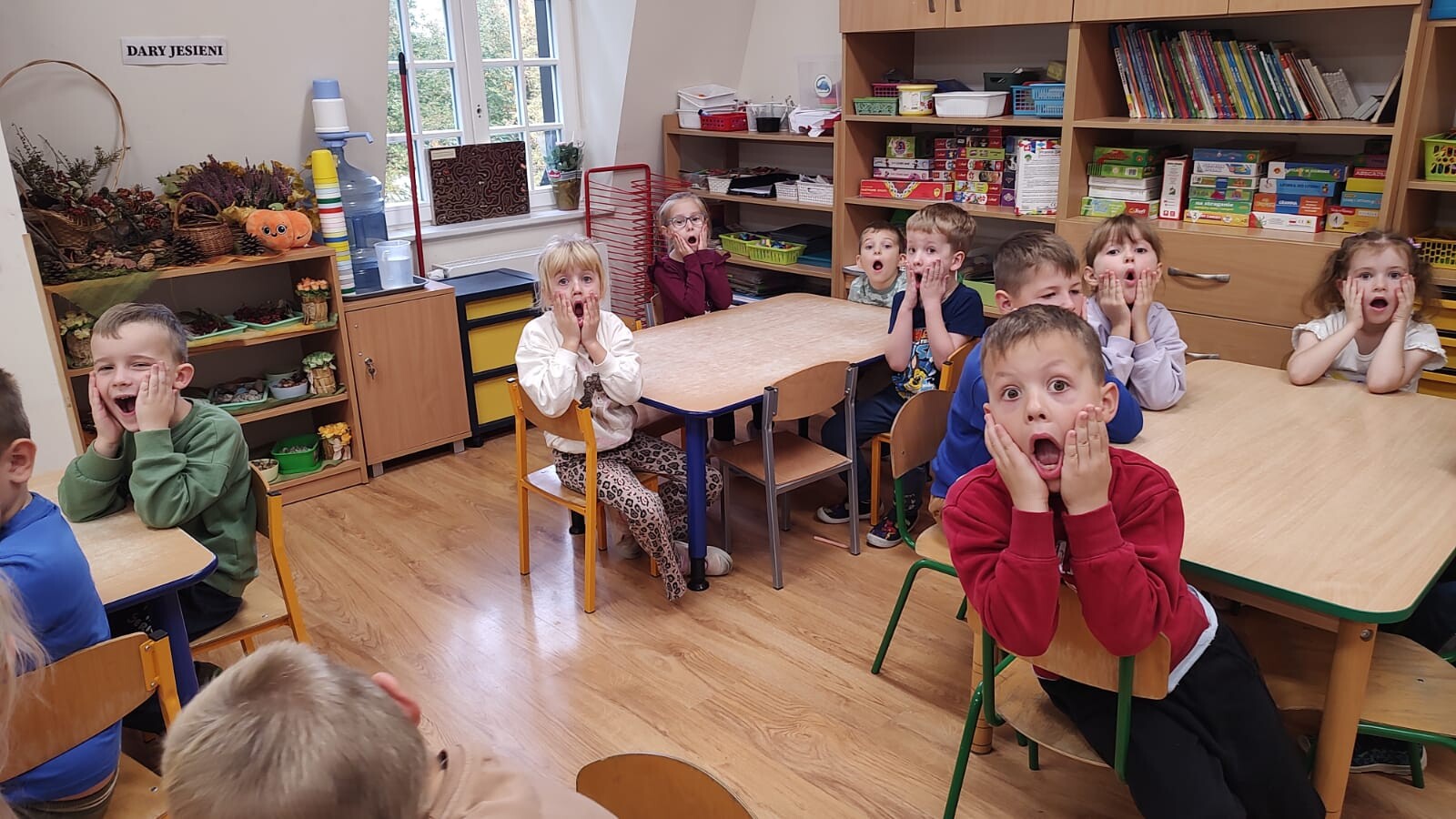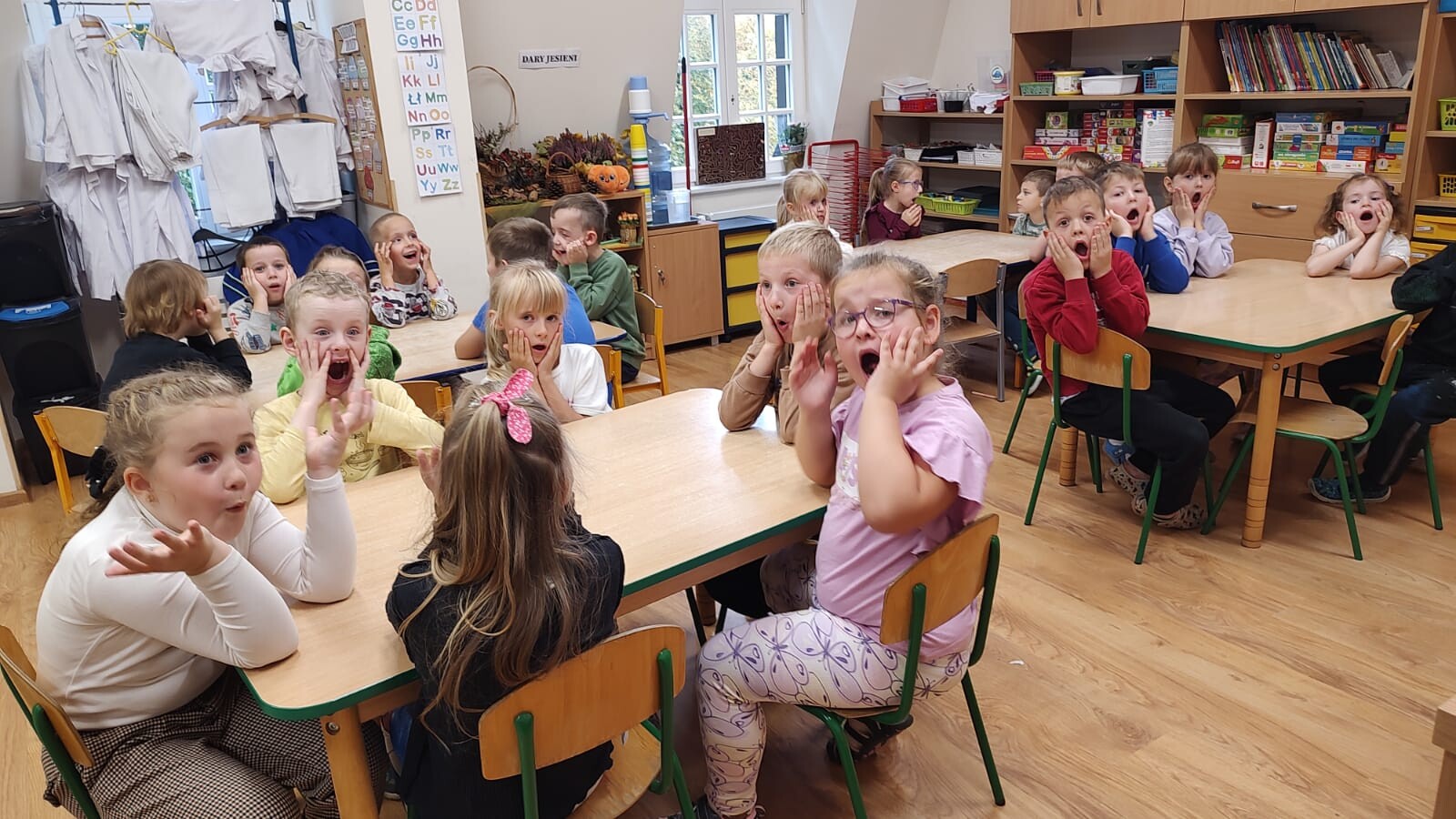 Spotkanie z Panem Łał pokazało dzieciom, że zdziwienie to emocja, która pomaga odkrywać świat, zachęca do zadawania pytań i rozwija ciekawość. Zajęcia dostarczyły przedszkolakom wielu pozytywnych emocji oraz ciekawych doświadczeń poznawczych.