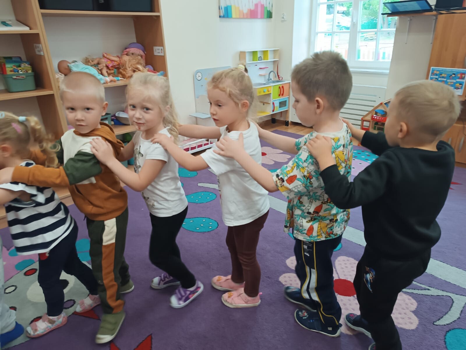 W grupie „Kangurki” odbyła się uroczystość pełna niespodzianek. Dzieci dostały dyplomy i upominki, a chłopcy przygotowali także coś specjalnego dla dziewczynek, aby każdy czuł się wyróżniony. Wspólne świętowanie urozmaiciły tańce – dzieci w rytmie piosenki utworzyły wesoły pociąg i bawiły się znakomicie.