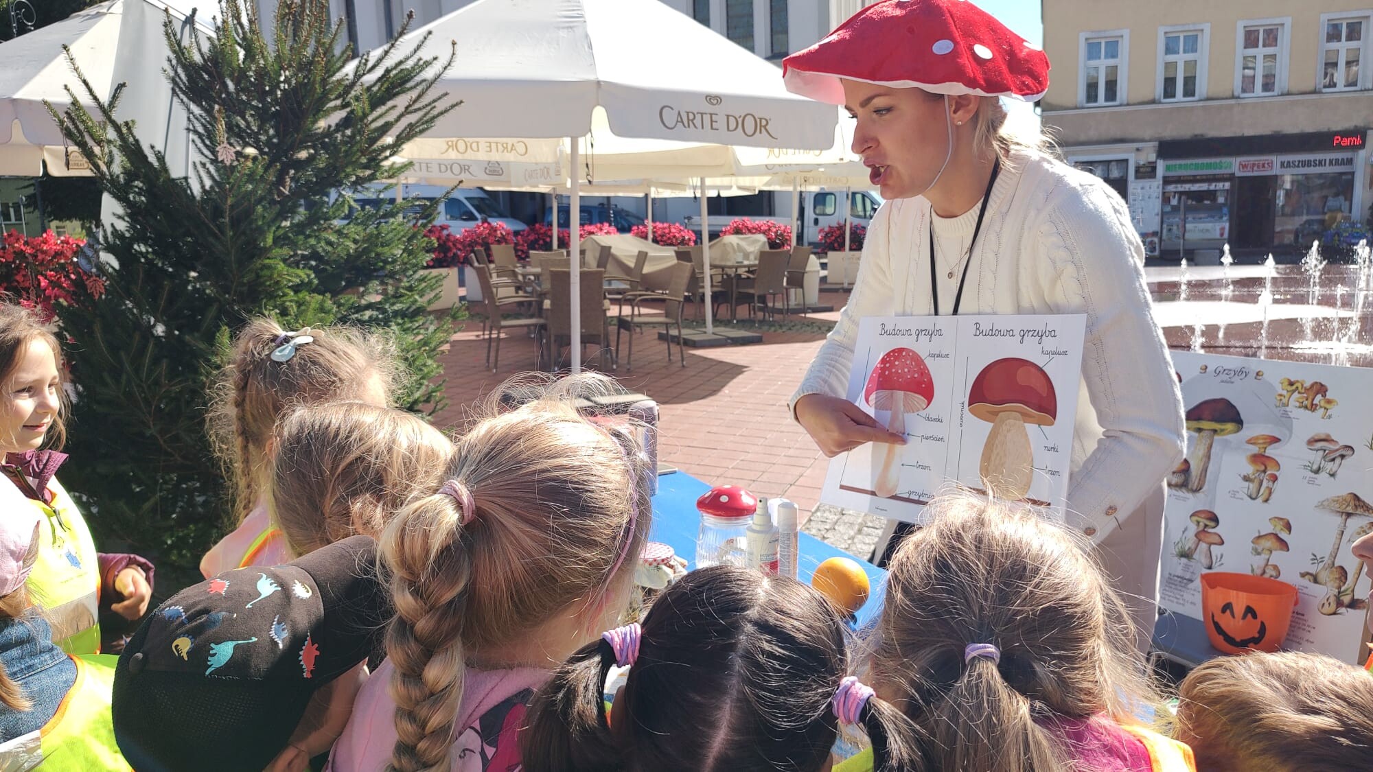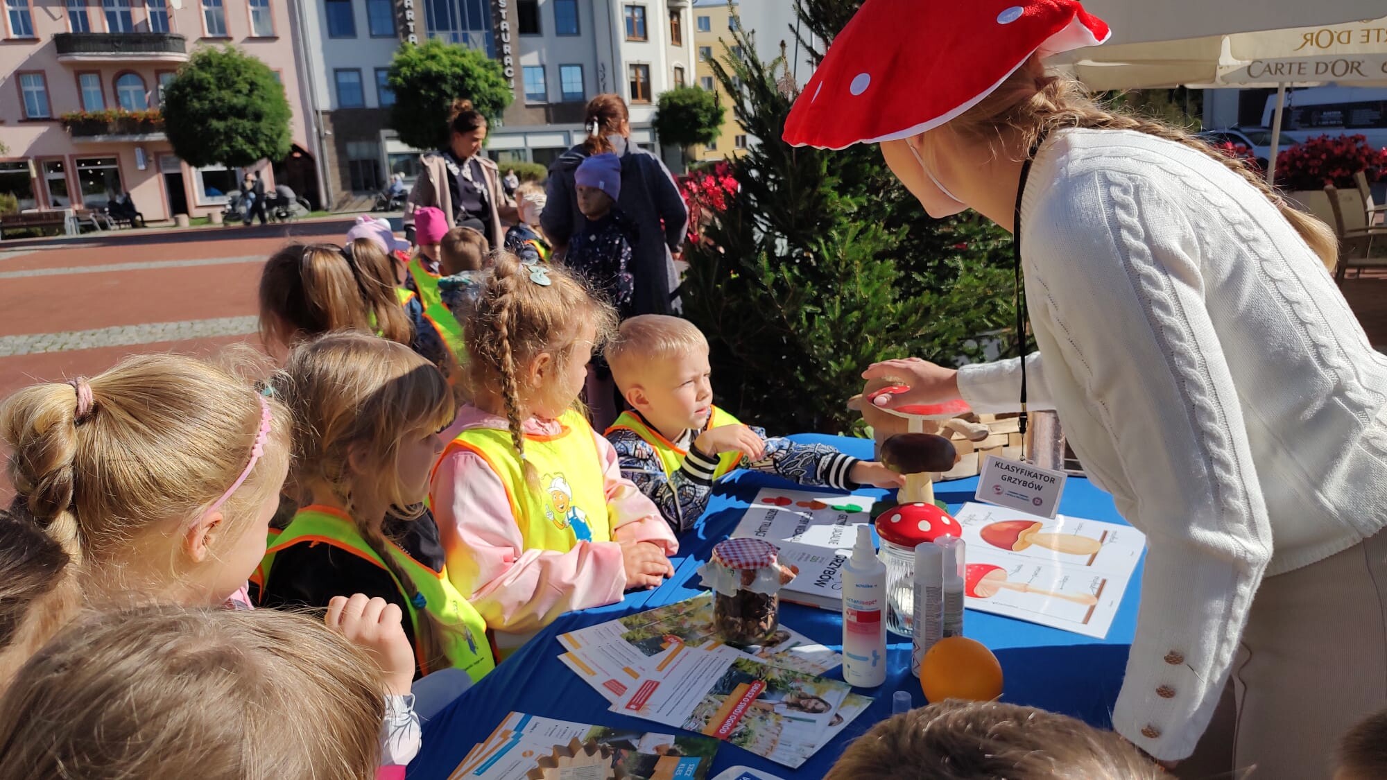 Dzisiejsze wyjście grupy „Króliczki” na bytowski rynek było pełne wrażeń i nowych wiadomości. Dzieci wraz z opiekunami odwiedziły wystawę grzybów jadalnych, niejadalnych i trujących, przygotowaną przez Powiatową Stację Sanitarno-Epidemiologiczną w Bytowie we współpracy z Kołem Gospodyń Wiejskich „Niezabudki” z Niezabyszewa.