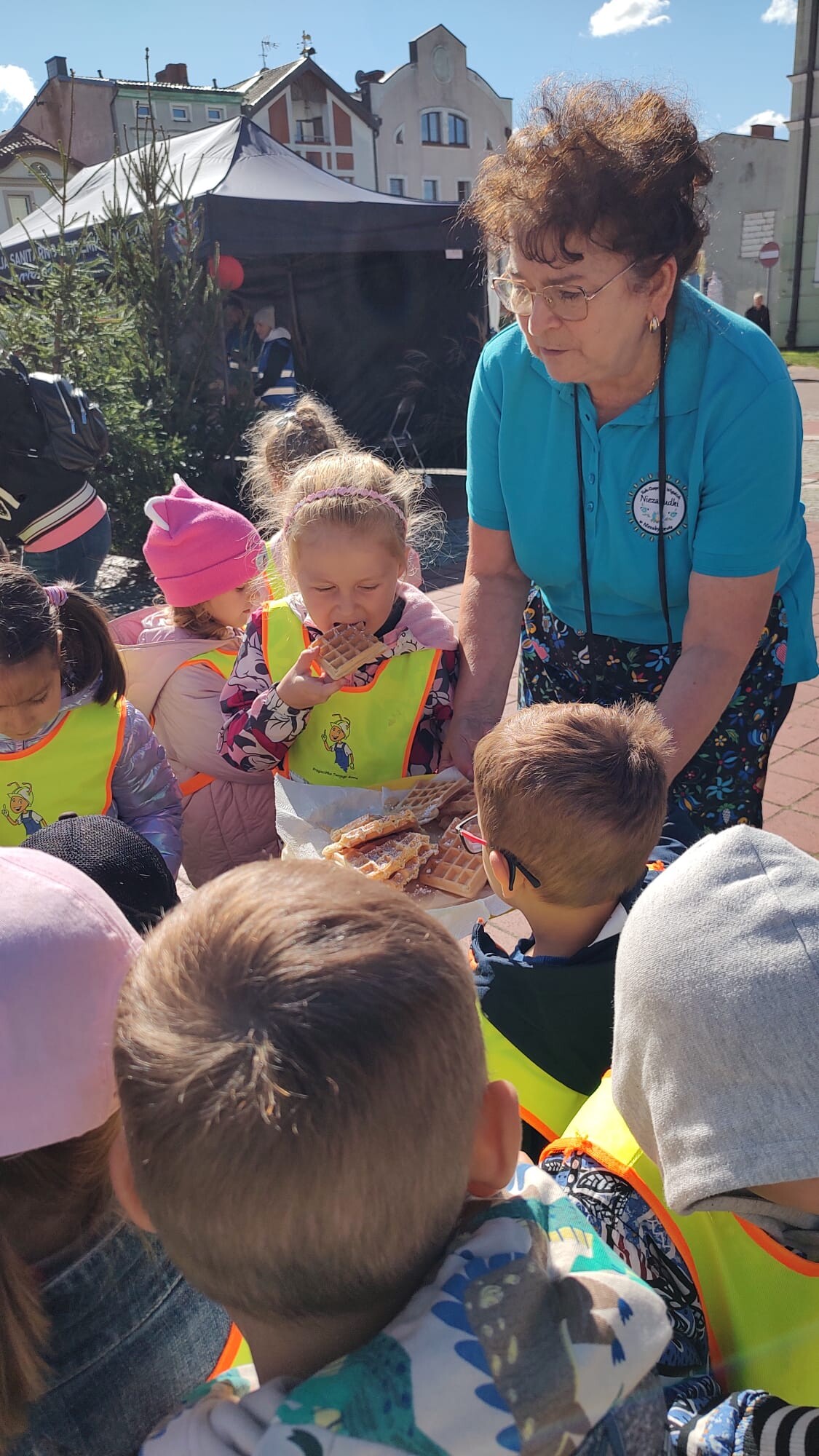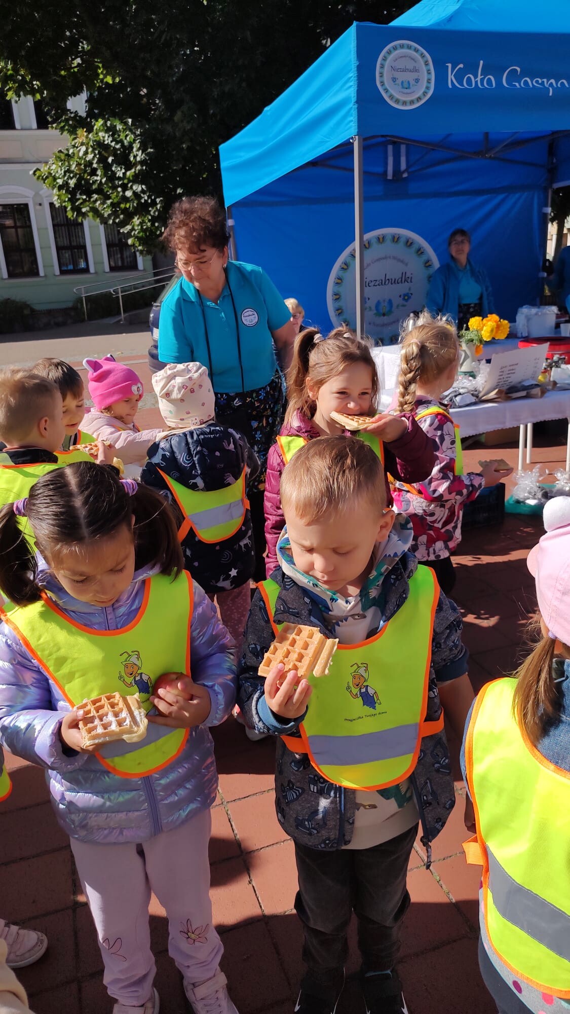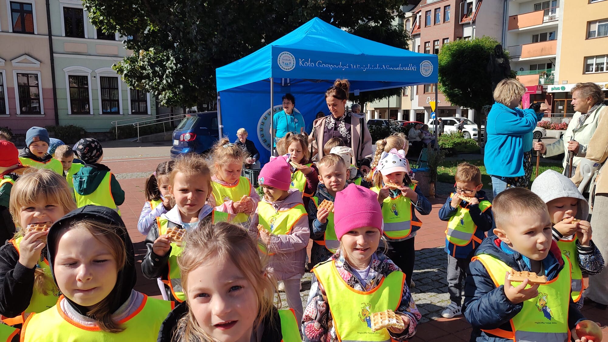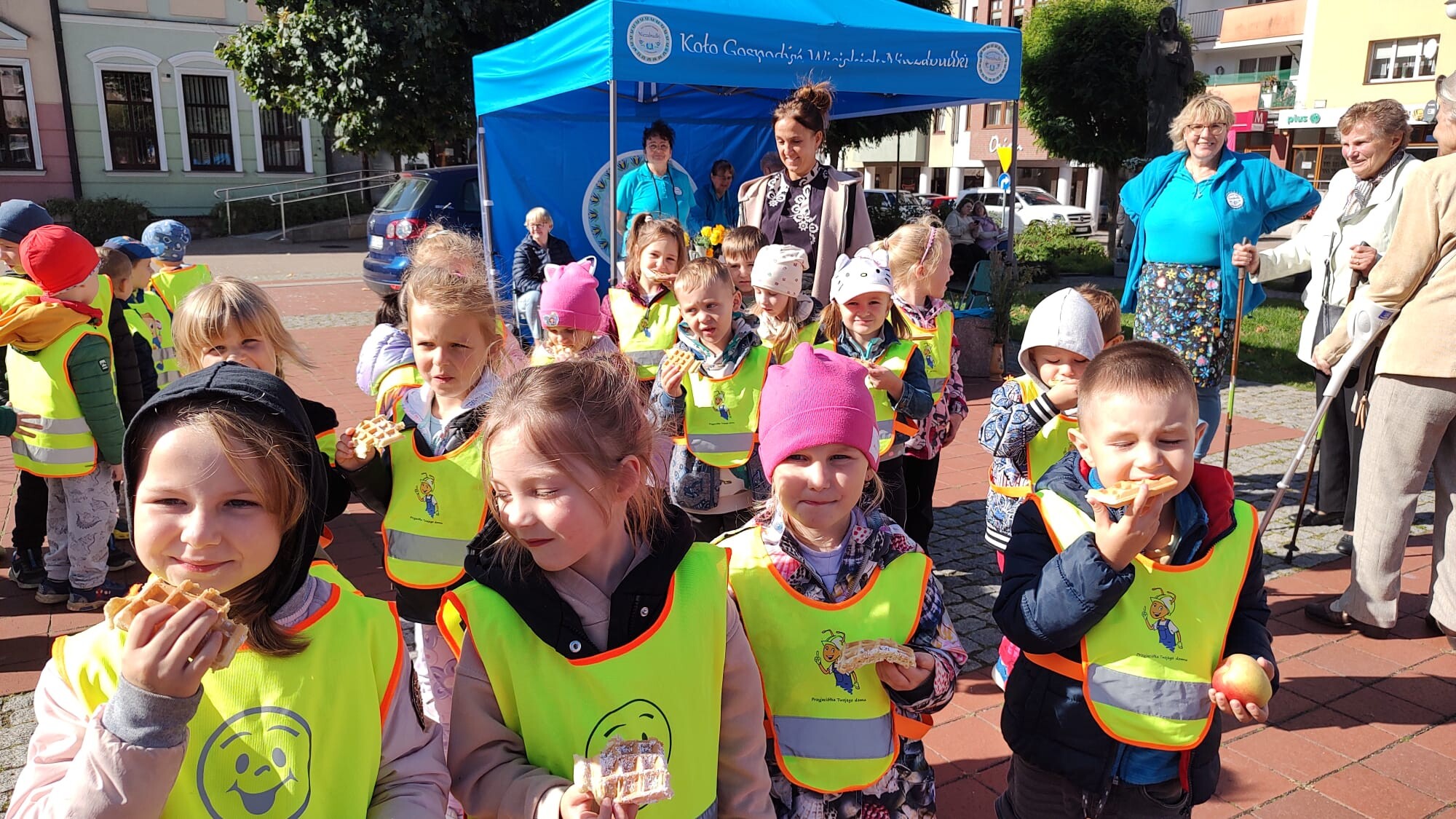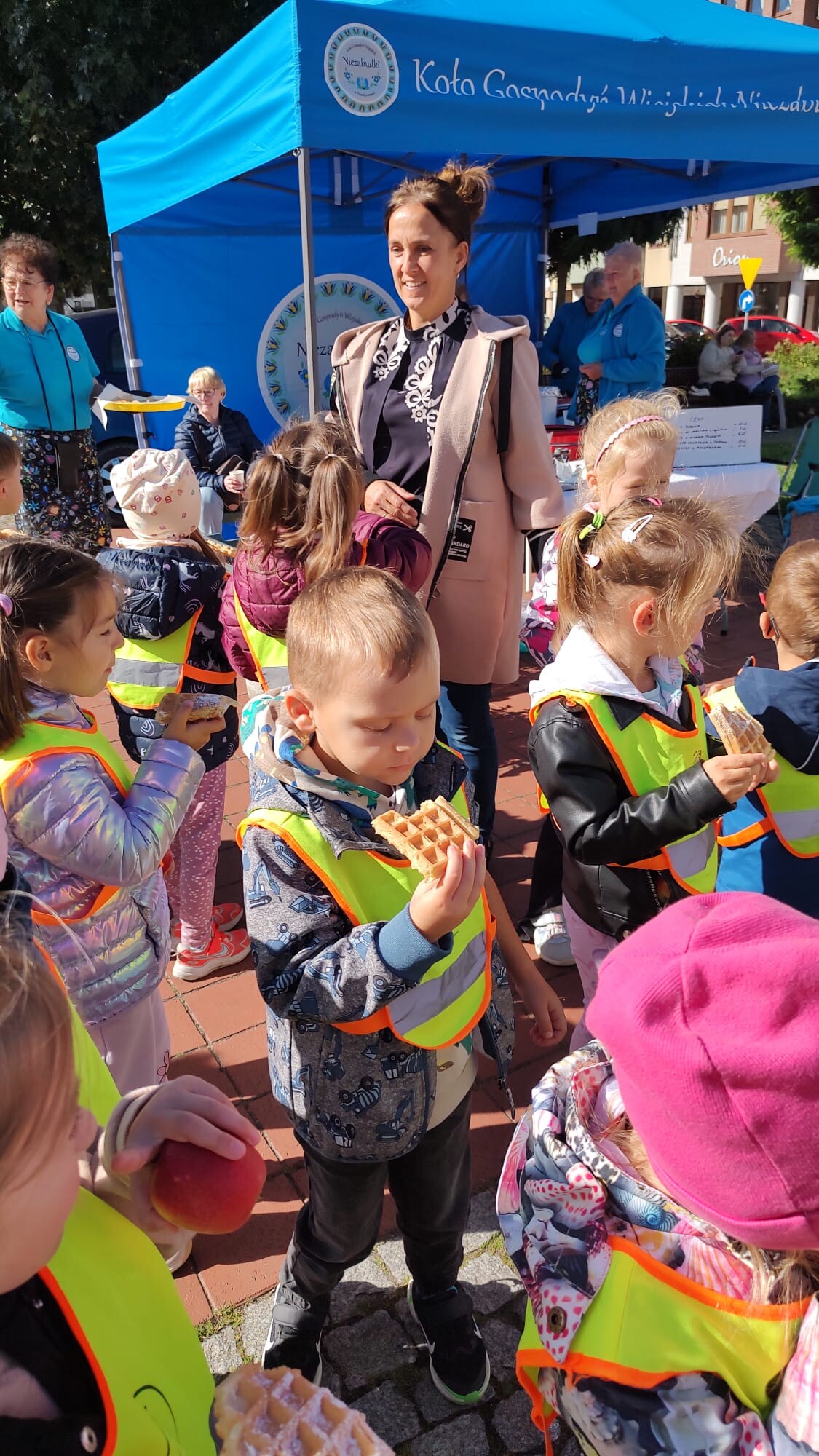 Dużą atrakcją było również stoisko z regionalnymi przysmakami przygotowane przez panie z KGW „Niezabudki”. Największym powodzeniem cieszyły się pyszne gofry, którymi dzieci zostały poczęstowane. Nie zabrakło także zabawy – „Króliczki” zrobiły sobie pamiątkowe zdjęcia w fotobudce oraz skosztowały soczystych jabłek.