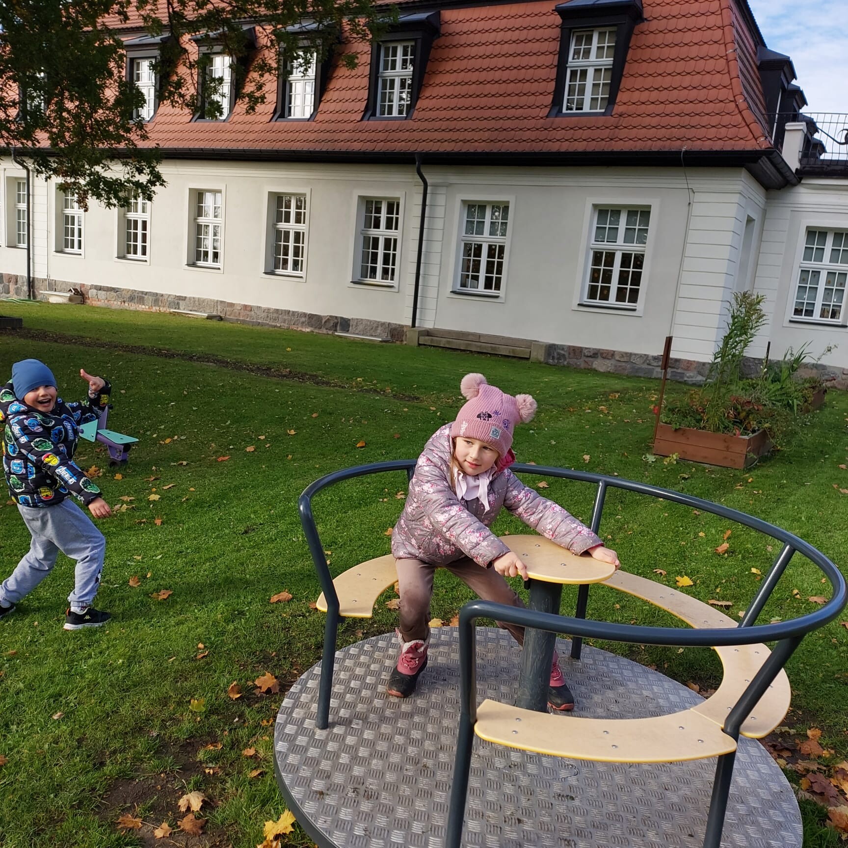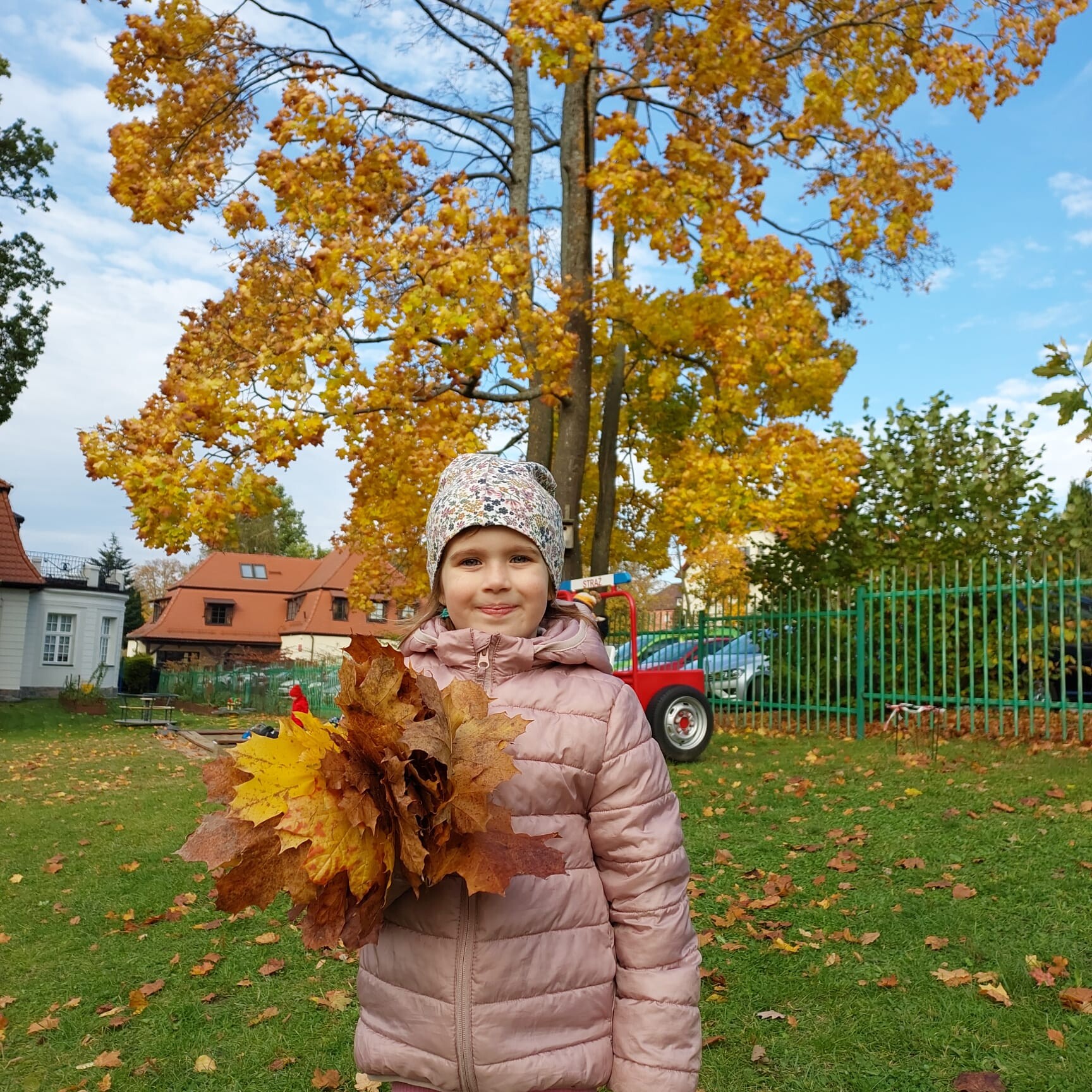 Nie brakuje też wspaniałej zabawy – dzieci wykorzystują zgromadzony materiał przyrodniczy do tworzenia jesiennych kompozycji, układania wzorów z liści czy wspólnych zabaw ruchowych. Każde wyjście do ogrodu to dla „Biedronek” połączenie nauki, odkrywania i radości z przebywania na świeżym powietrzu.