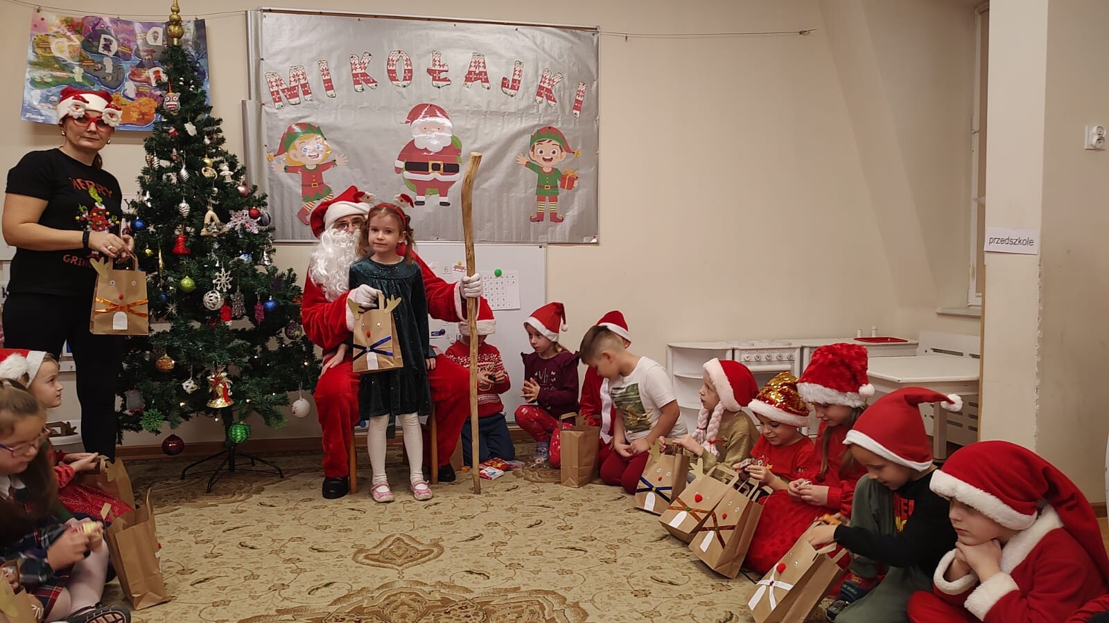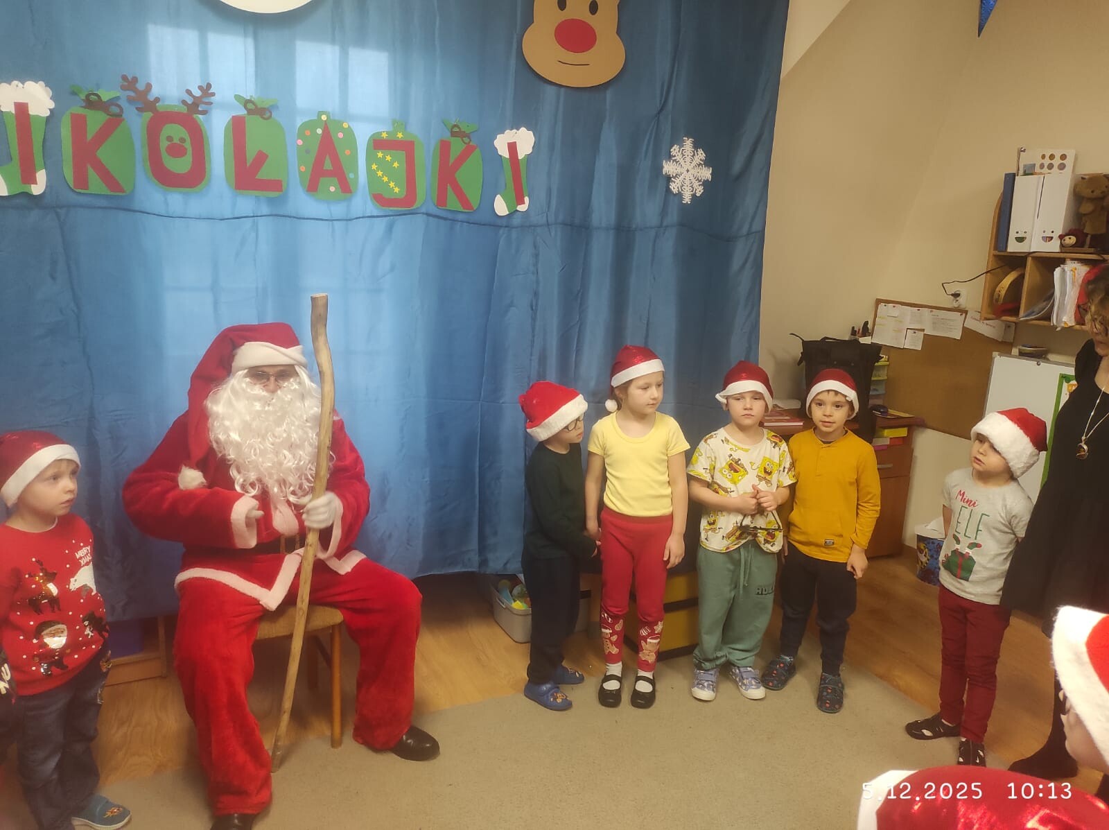 W grupie Kangurki przedszkolaki spotkały się ze Świętym Mikołajem, otrzymały podarunki oraz wspólnie zaśpiewały piosenkę, którą pilnie ćwiczyły. Miały także okazję zagrać na instrumentach muzycznych, co sprawiło im ogromną radość.