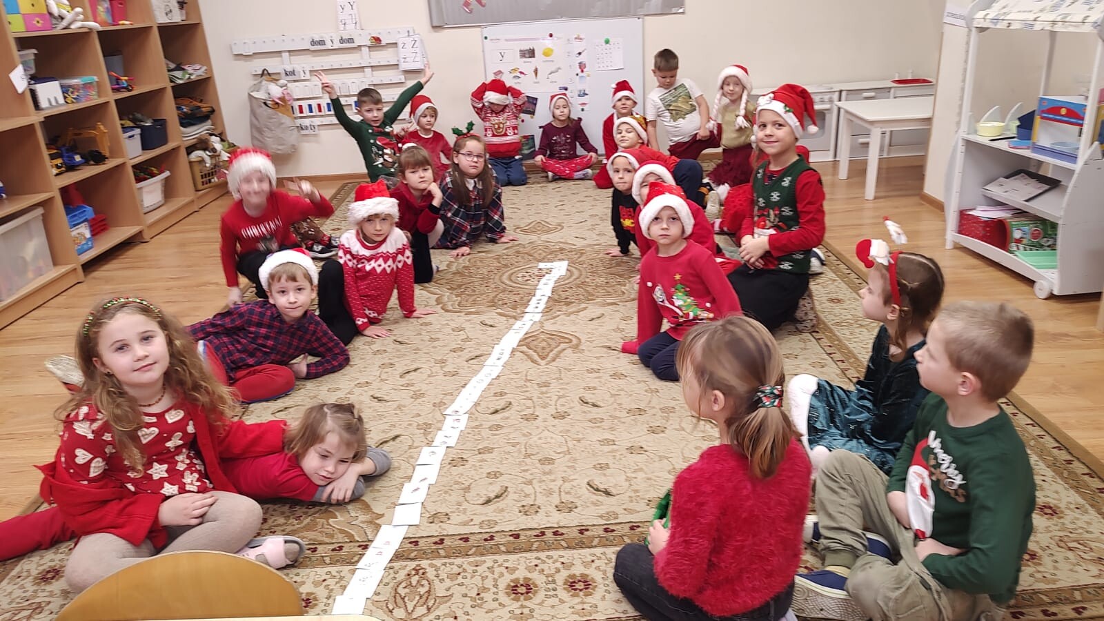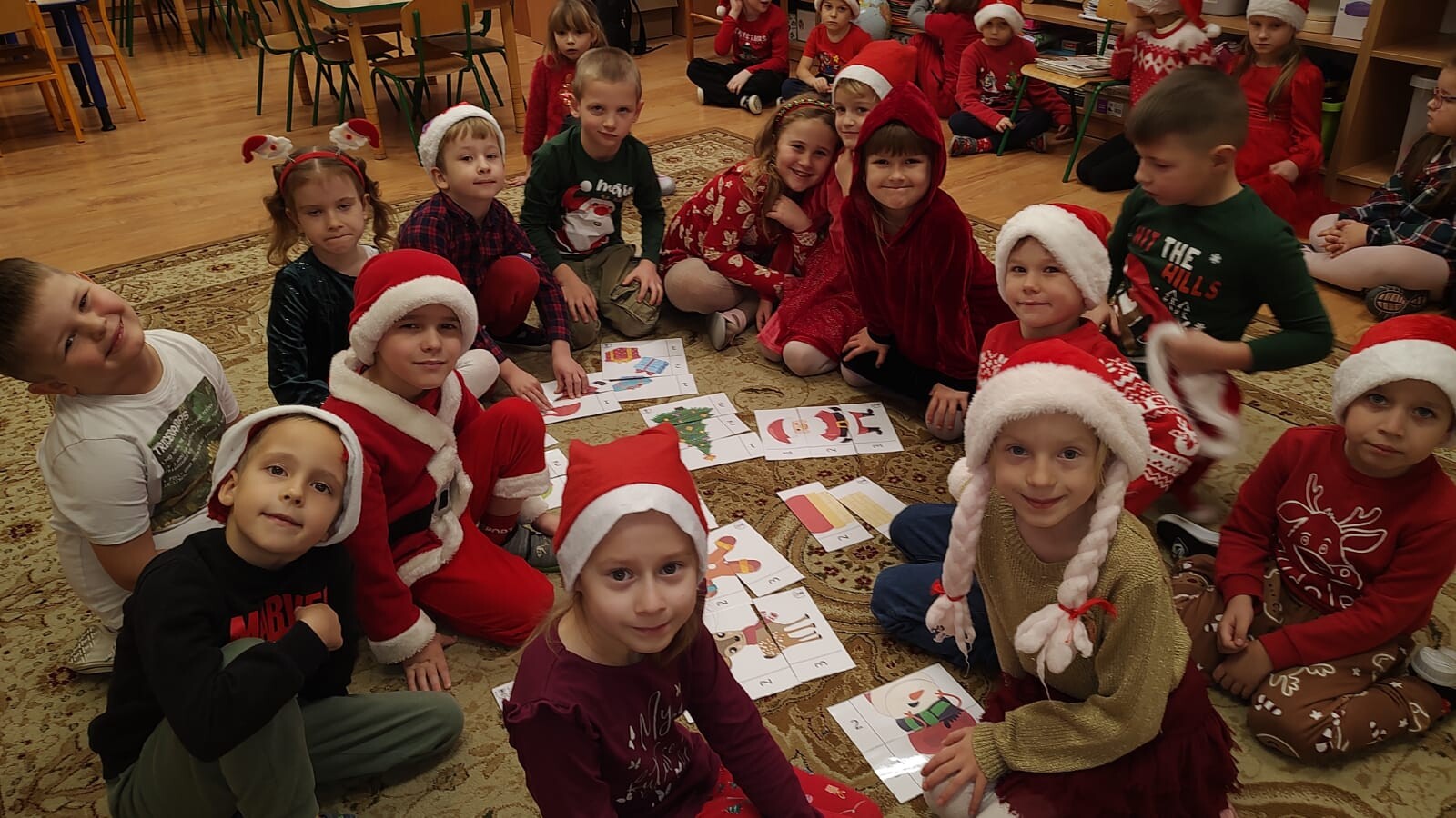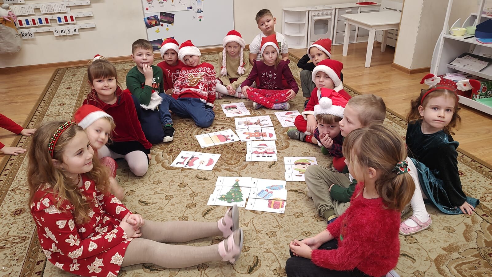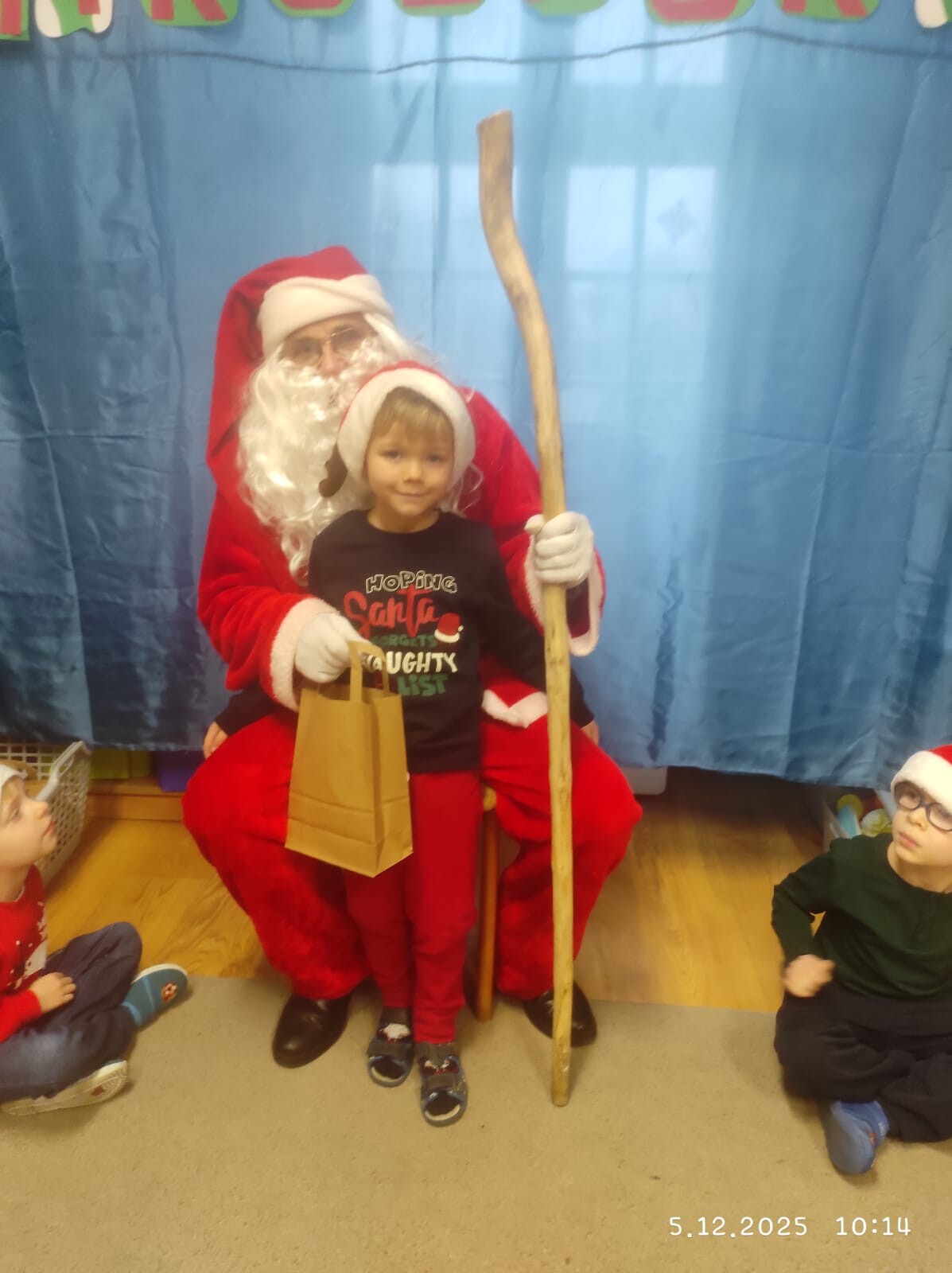 W grupie Tygryski wyjątkowy gość – Święty Mikołaj – odwiedził salę w pewien grudniowy poranek. Dzieci przywitały go śpiewem, który brzmiał jak najpiękniejsza zimowa melodia. Mikołaj był zachwycony, więc przedszkolaki postanowiły utrwalić tę wizytę, tworząc jego portrety pełne świątecznego blasku. Następnie rozpoczęła się prawdziwa mikołajkowa magia: wesołe zabawy, śmiech i mnóstwo radości unosiły się w powietrzu niczym płatki śniegu. Na zakończenie każde dziecko otrzymało tajemniczą, świąteczną listę wyzwań do wykonania wspólnie z rodzicami, aby magia mogła trwać także w domu.