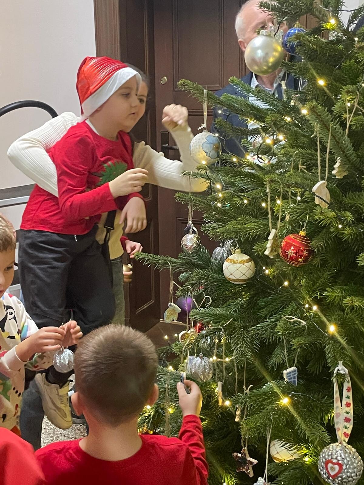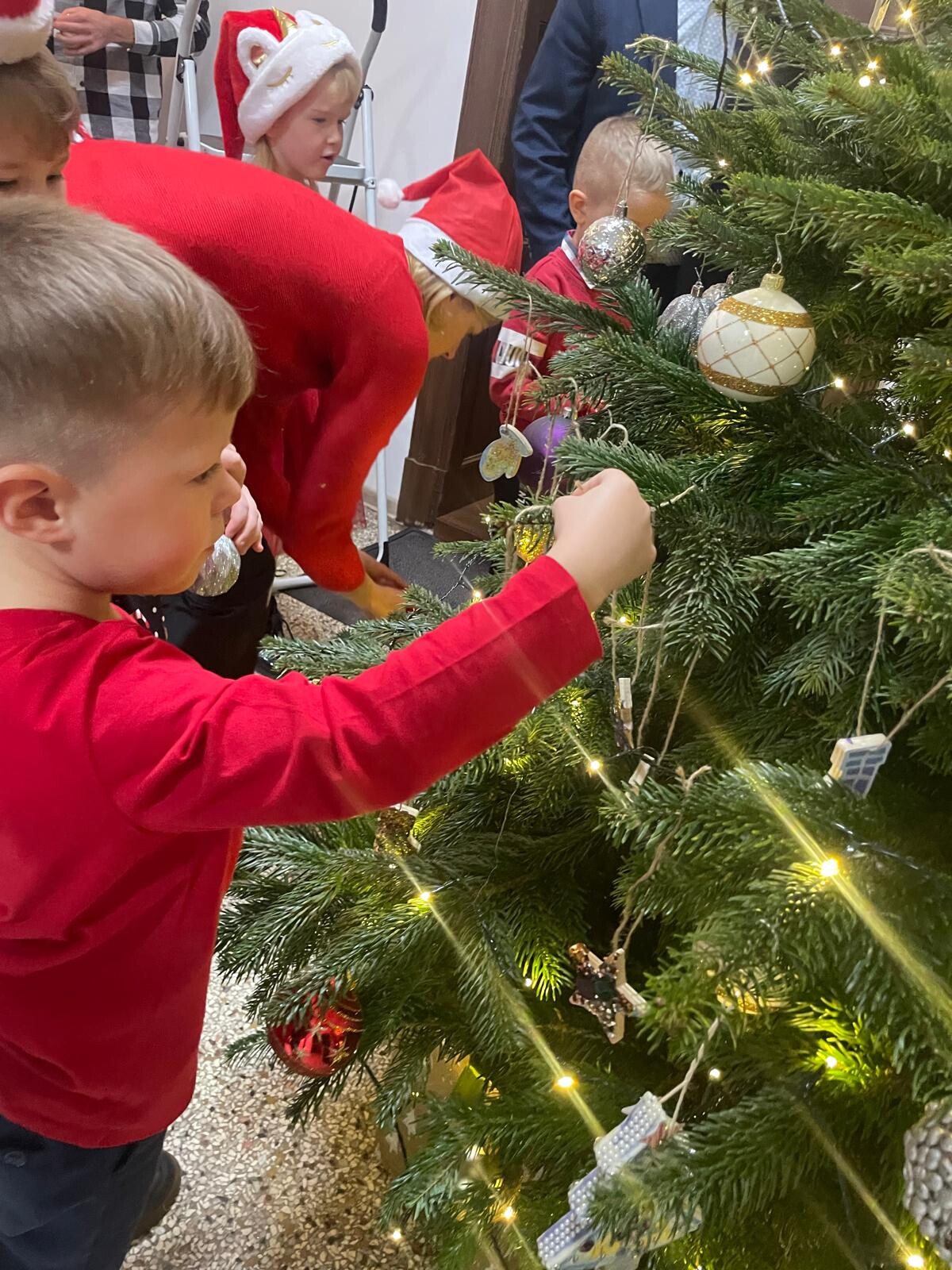Przedszkolaki z ogromnym zaangażowaniem wieszały ozdoby, a każdy mały gest dodawał choince jeszcze więcej uroku. Była to wyjątkowa chwila, która pokazała, jak ważna jest współpraca lokalnej społeczności i jak wiele radości przynosi najmłodszym udział w takich wydarzeniach.