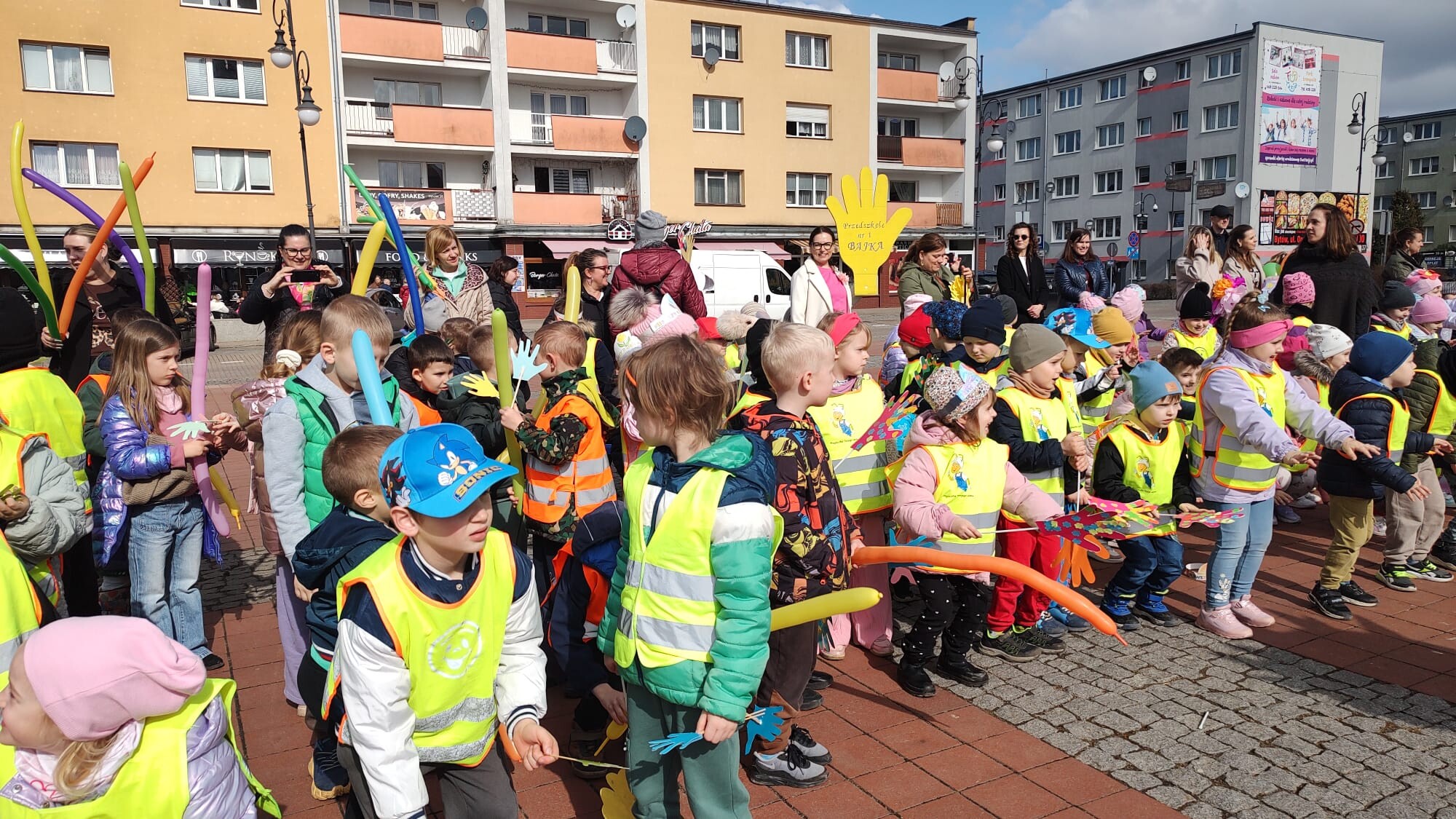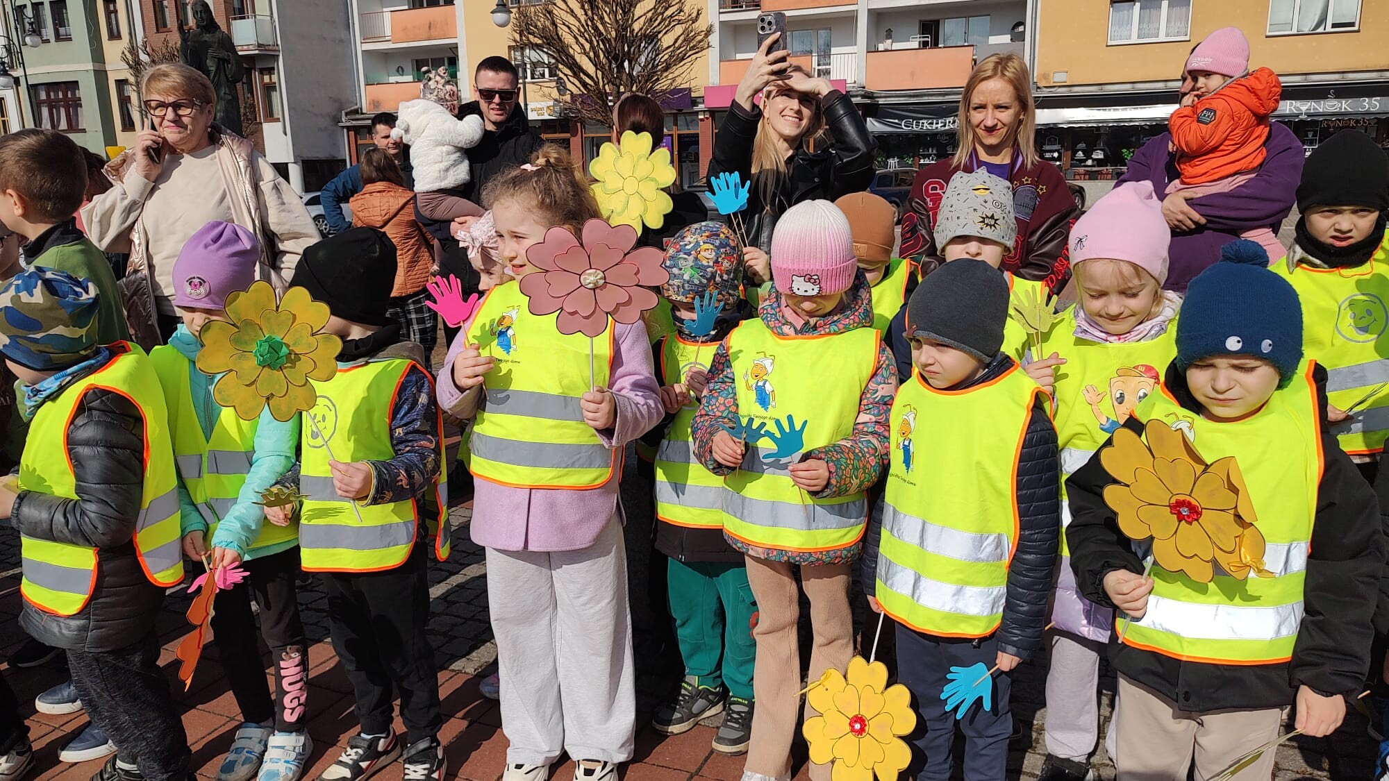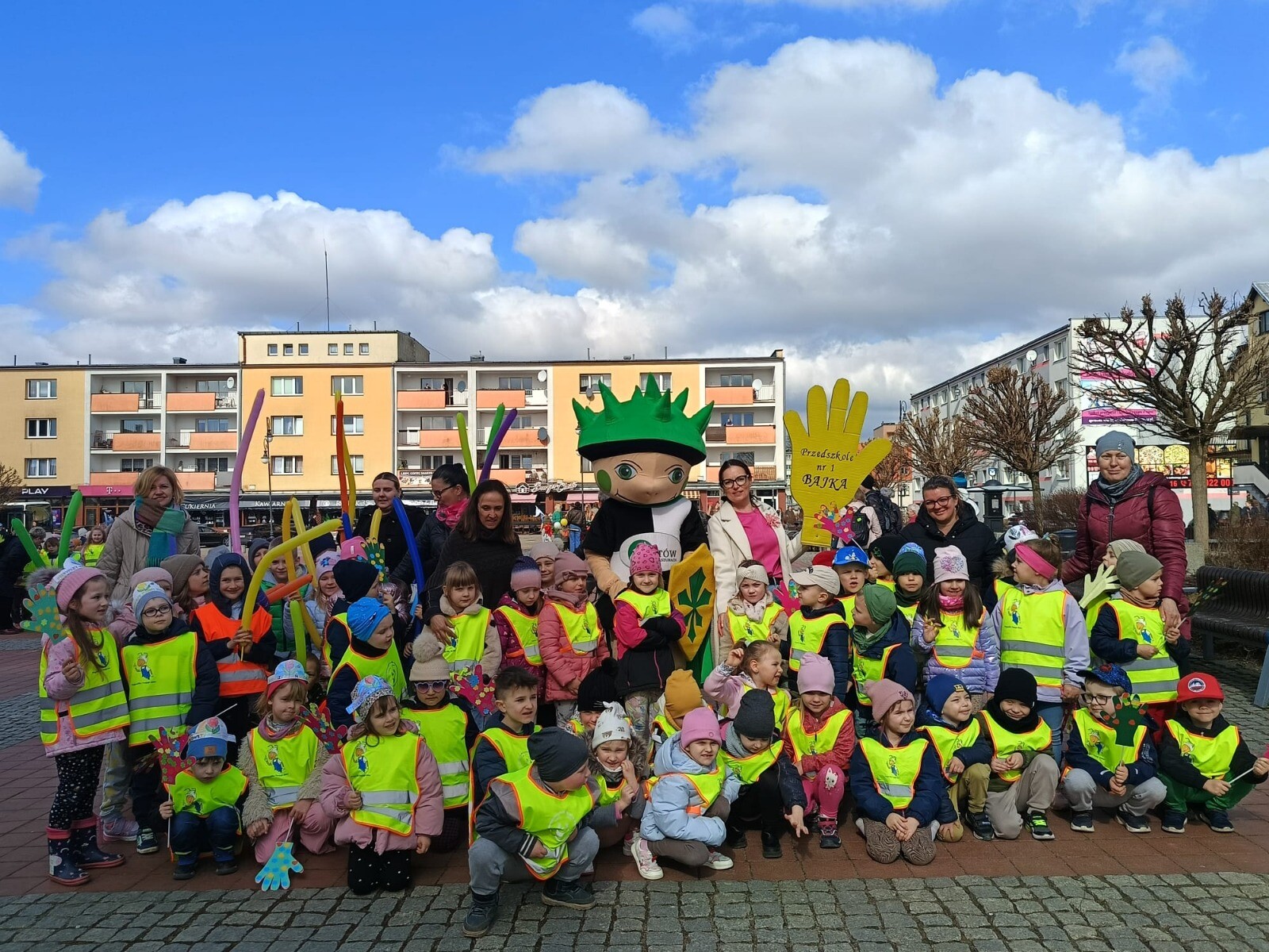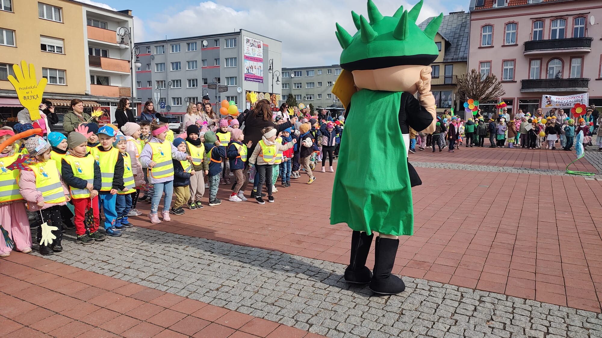 Dzieci z grupy „Króliczki” wzięły udział w uroczystym przemarszu na rynek w Bytowie, gdzie wspólnie powitano nową porę roku. Był to czas pełen radości, integracji i wspólnego świętowania. Na znak solidarności z osobami z zespołem Downa przedszkolaki założyły kolorowe, nie do pary skarpetki – symbol różnorodności i wyjątkowości każdego człowieka. Wspólne zdjęcia wykonano w specjalnie przygotowanej przez dzieci ramie, a dodatkową atrakcją była fotobudka „Witaj wiosno”, która dostarczyła wielu uśmiechów.