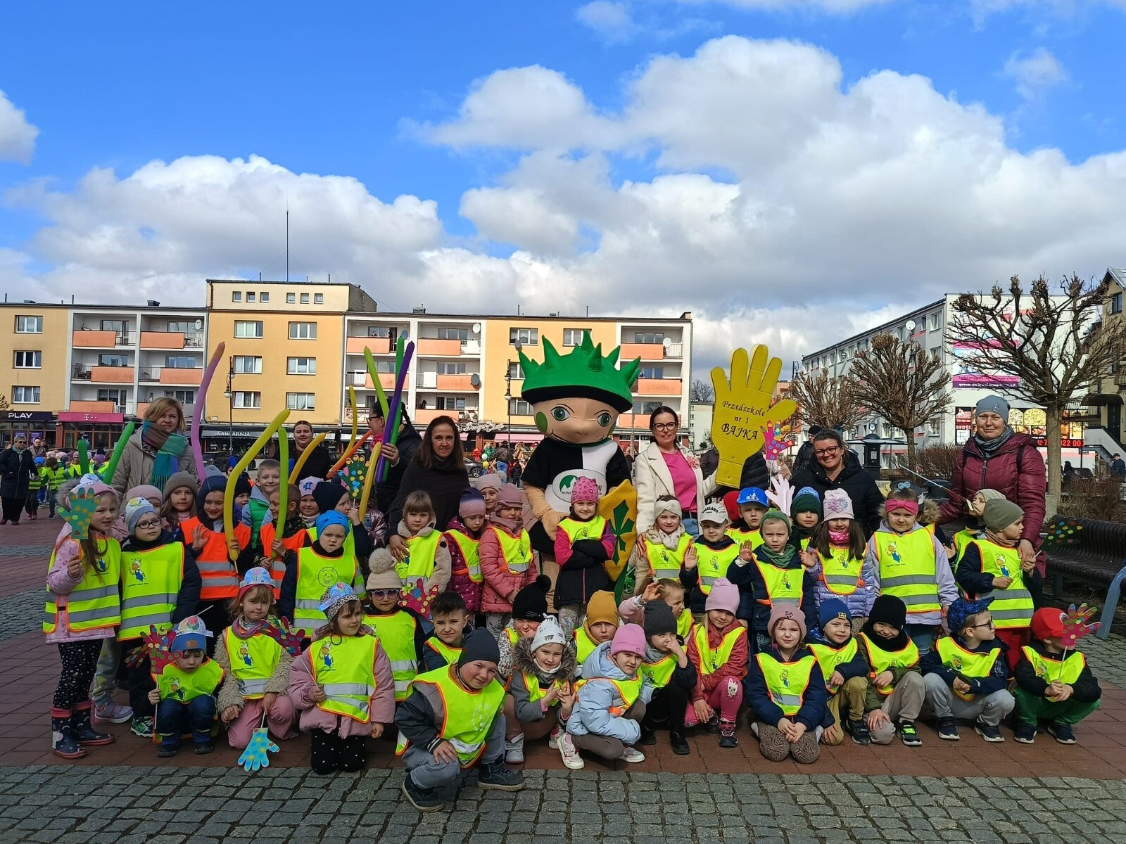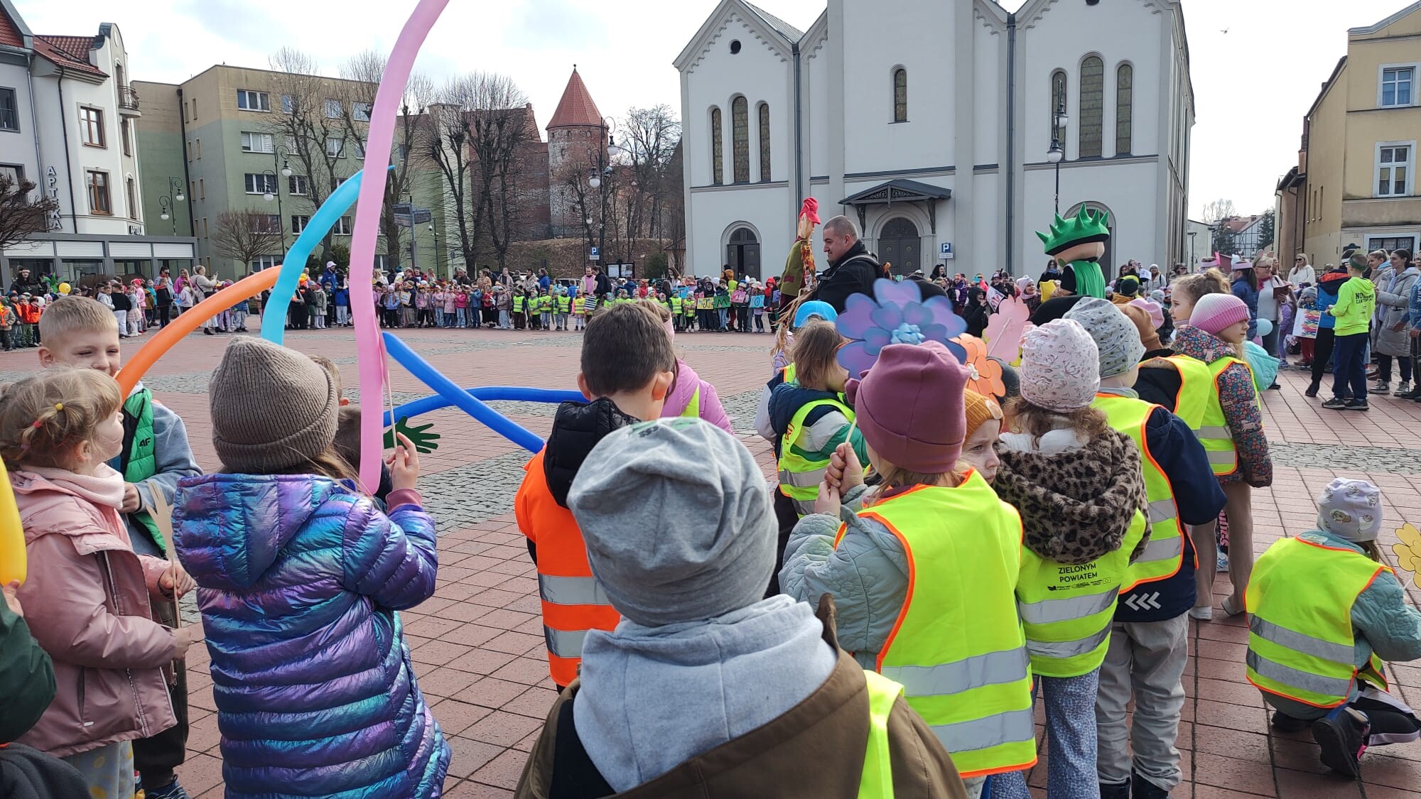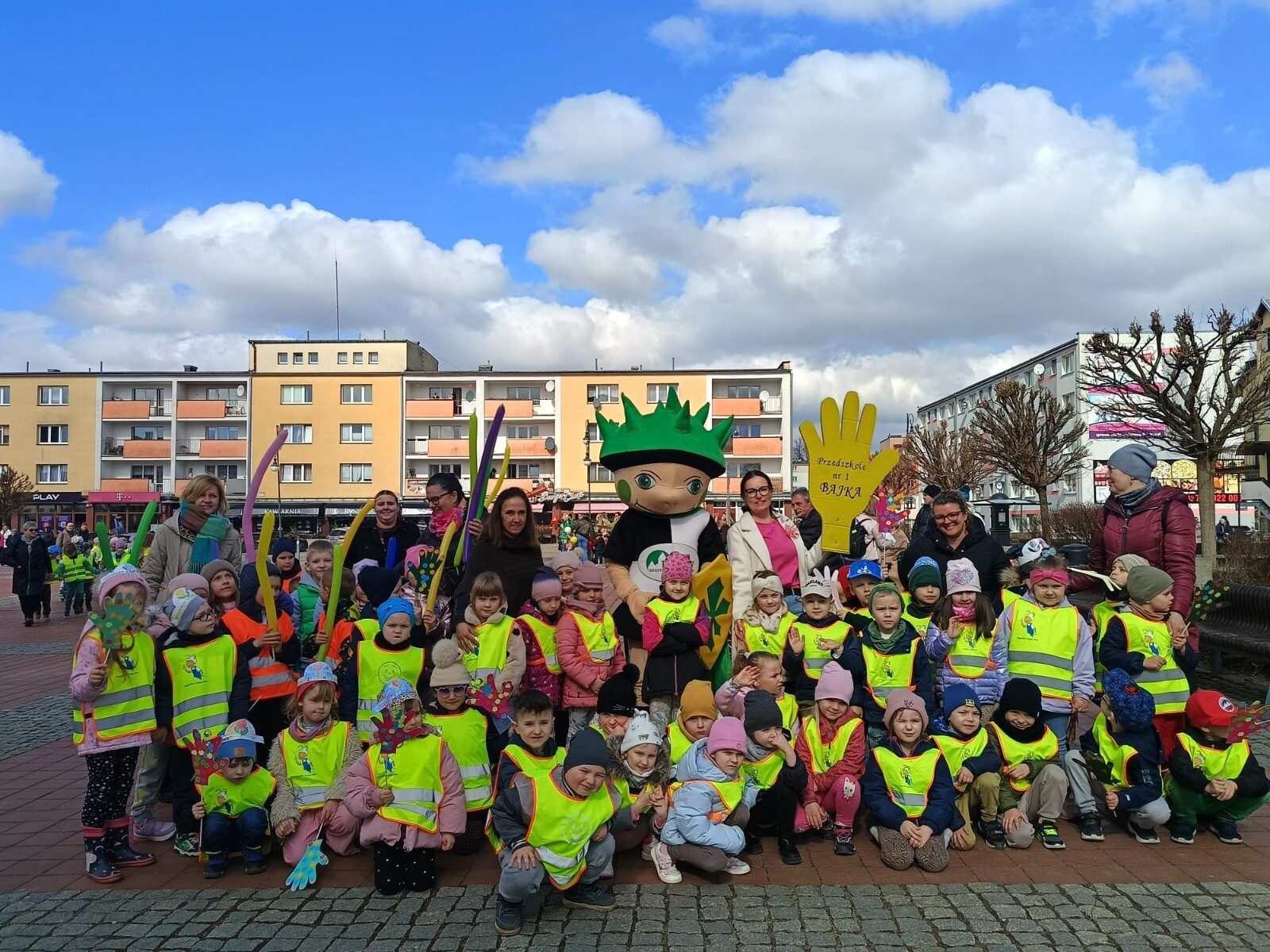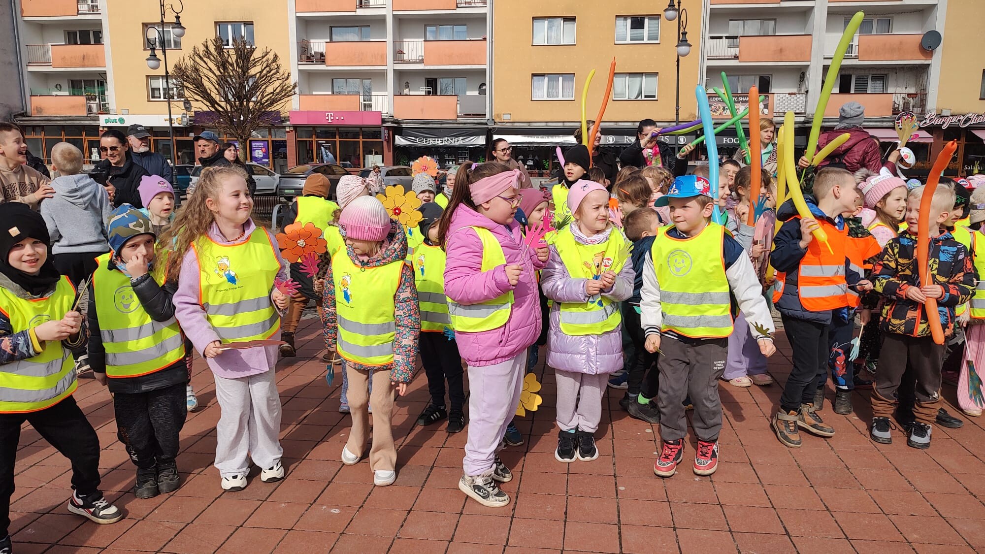 Dzieci z grupy „Króliczki” wzięły udział w uroczystym przemarszu na rynek w Bytowie, gdzie wspólnie powitano nową porę roku. Był to czas pełen radości, integracji i wspólnego świętowania. Na znak solidarności z osobami z zespołem Downa przedszkolaki założyły kolorowe, nie do pary skarpetki – symbol różnorodności i wyjątkowości każdego człowieka. Wspólne zdjęcia wykonano w specjalnie przygotowanej przez dzieci ramie, a dodatkową atrakcją była fotobudka „Witaj wiosno”, która dostarczyła wielu uśmiechów.