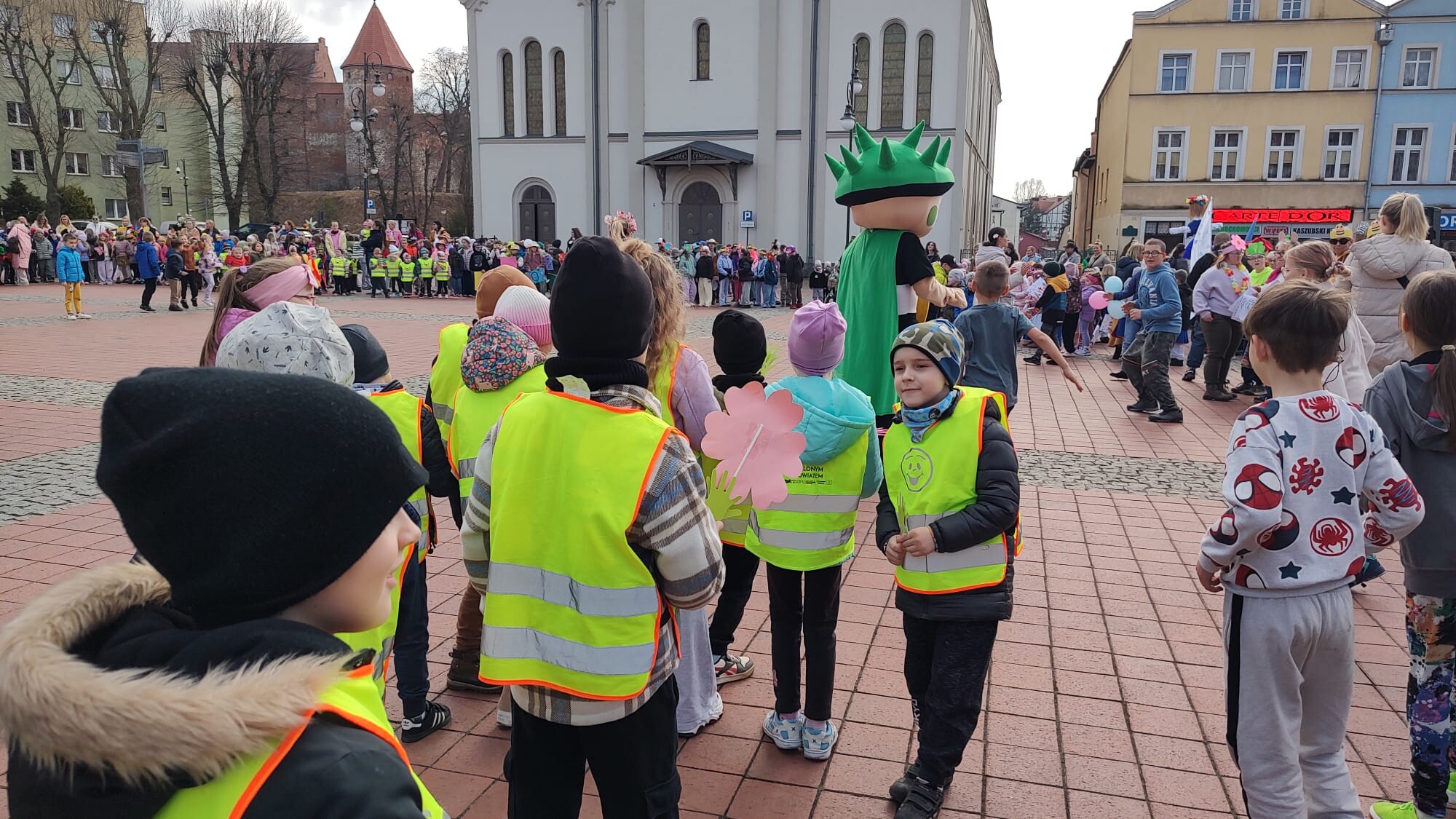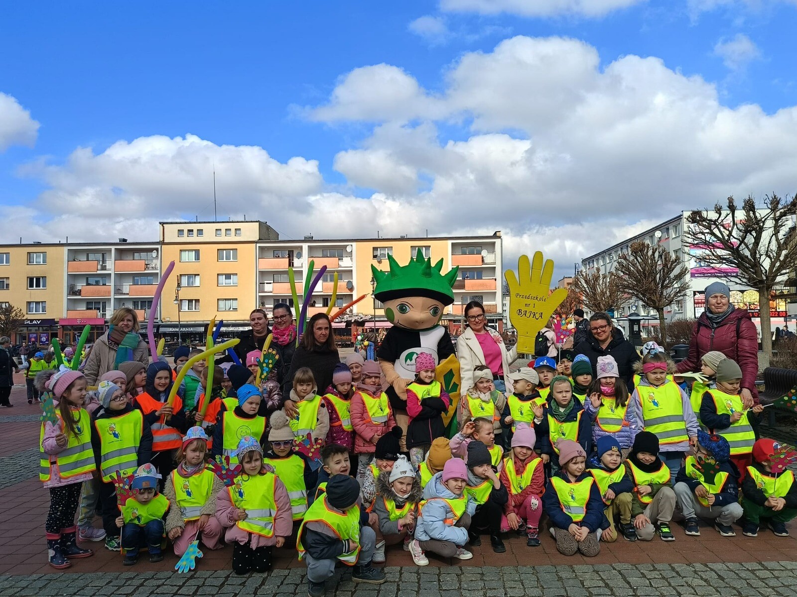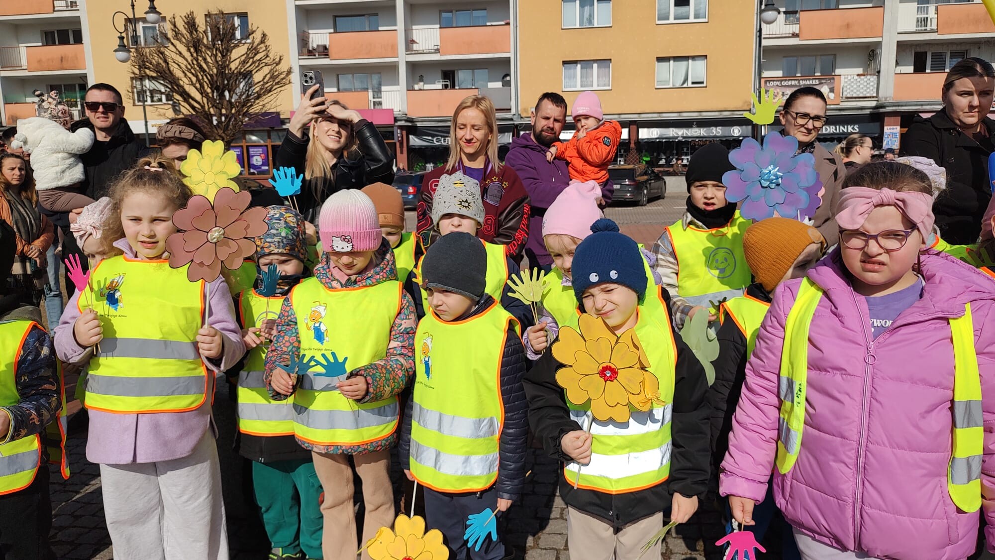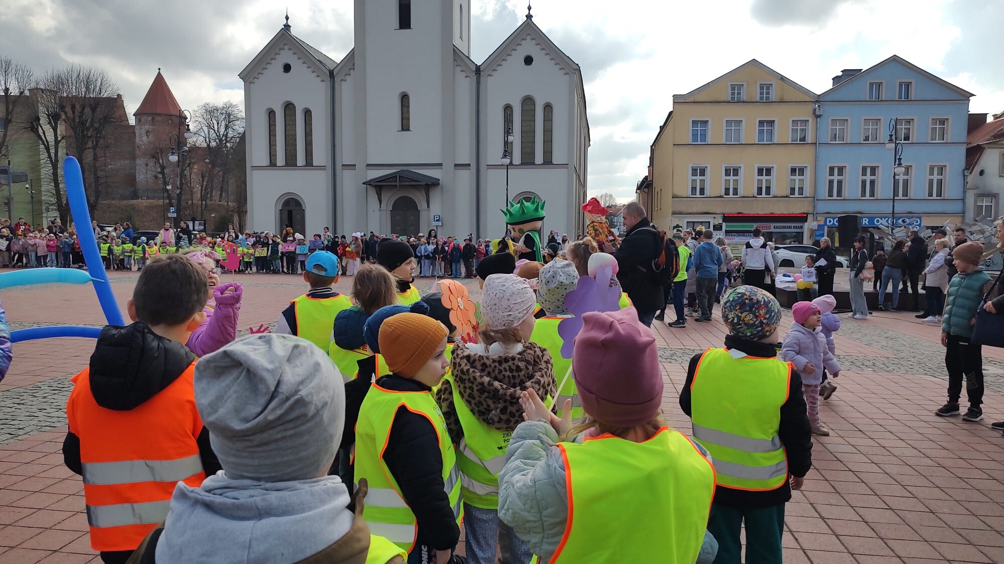 Dzieci z grupy „Króliczki” wzięły udział w uroczystym przemarszu na rynek w Bytowie, gdzie wspólnie powitano nową porę roku. Był to czas pełen radości, integracji i wspólnego świętowania. Na znak solidarności z osobami z zespołem Downa przedszkolaki założyły kolorowe, nie do pary skarpetki – symbol różnorodności i wyjątkowości każdego człowieka. Wspólne zdjęcia wykonano w specjalnie przygotowanej przez dzieci ramie, a dodatkową atrakcją była fotobudka „Witaj wiosno”, która dostarczyła wielu uśmiechów.