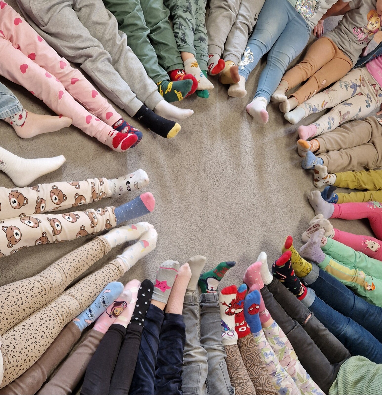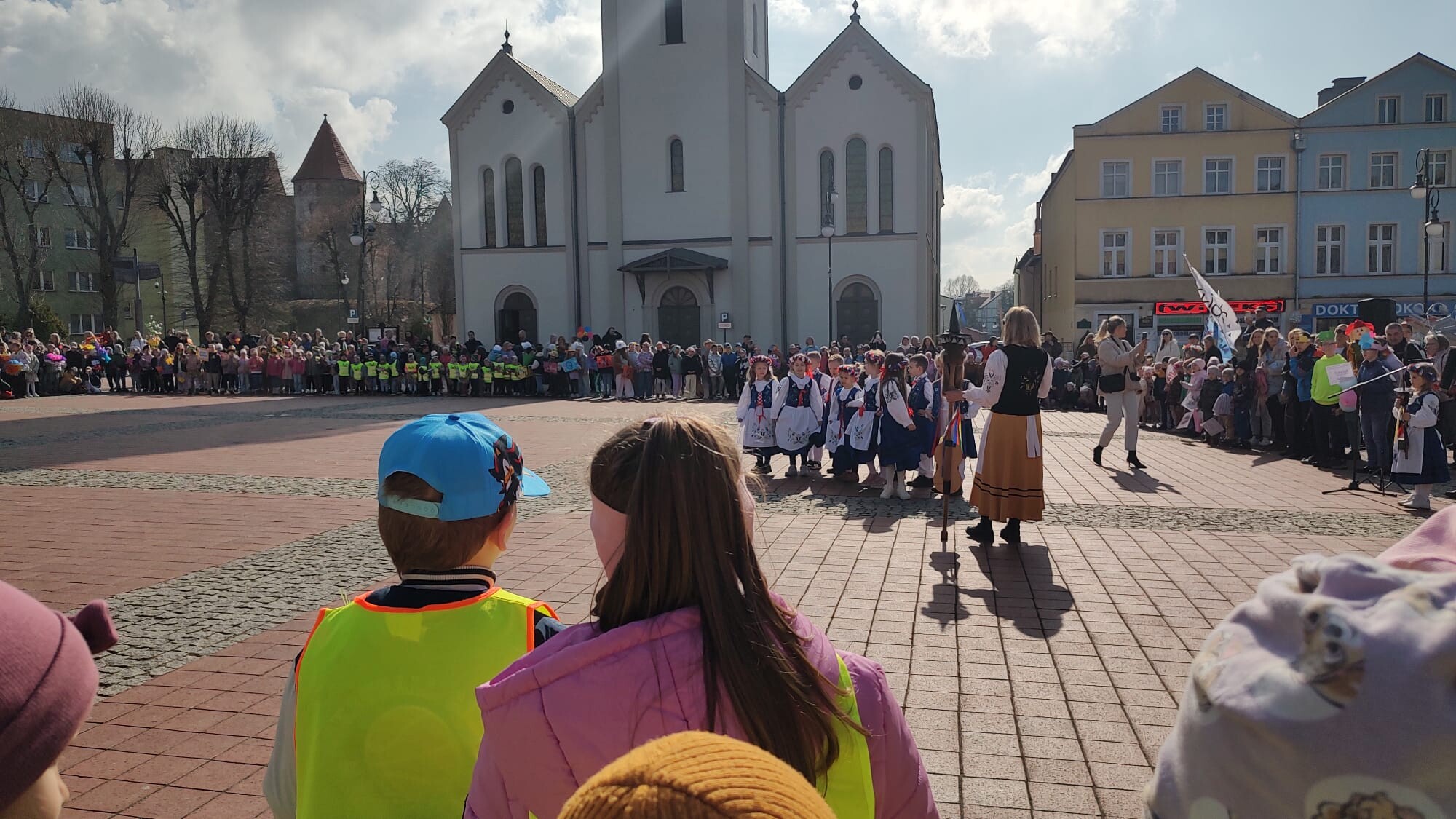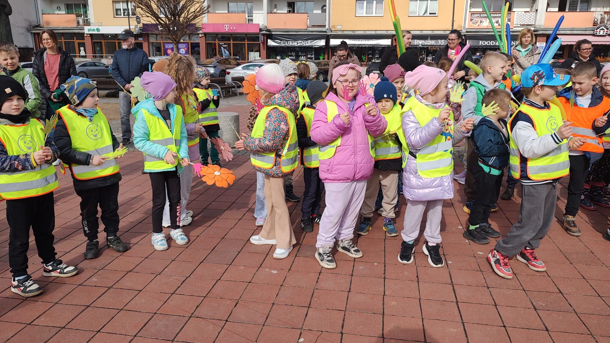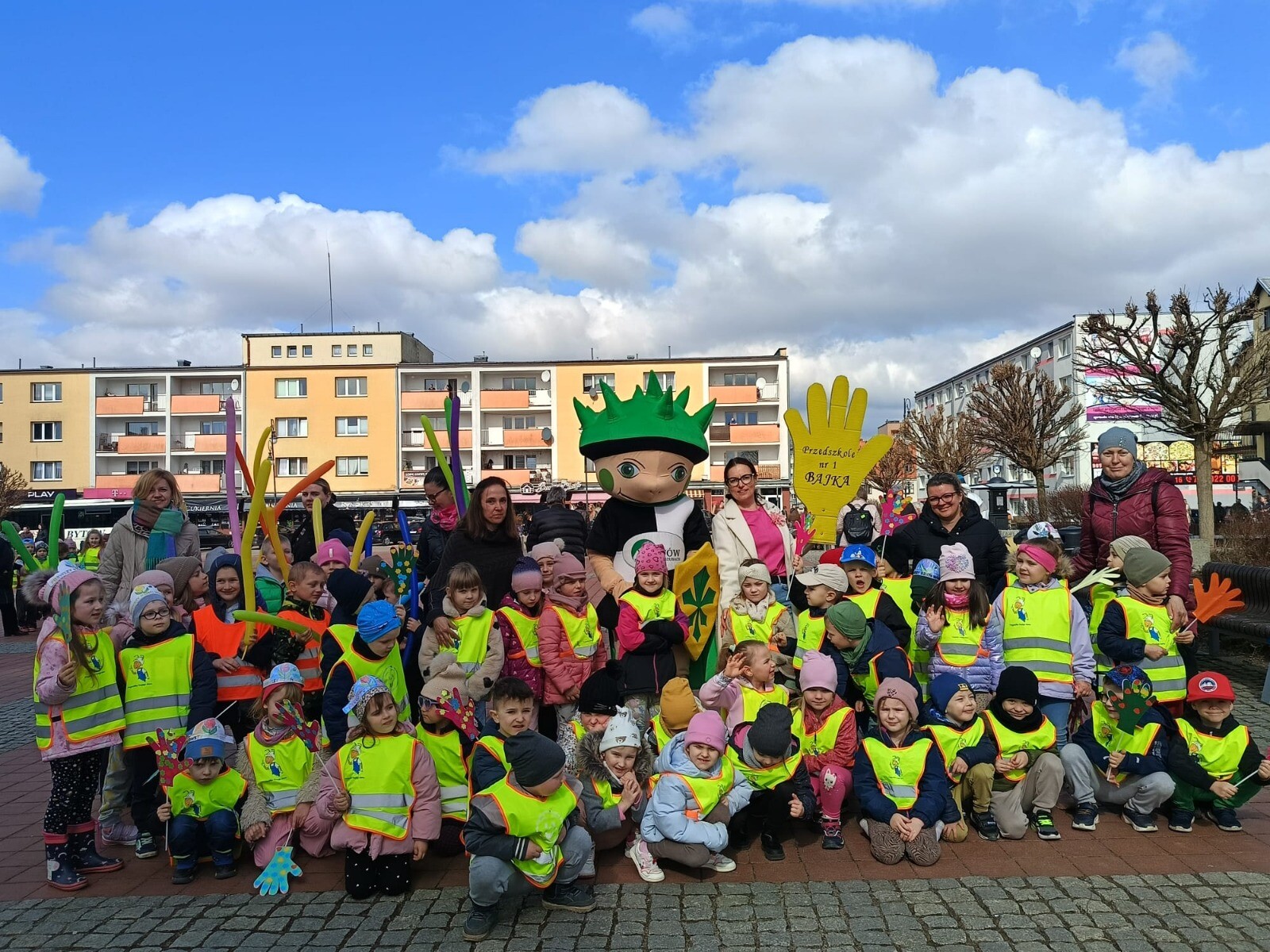 Dzieci z grupy „Króliczki” wzięły udział w uroczystym przemarszu na rynek w Bytowie, gdzie wspólnie powitano nową porę roku. Był to czas pełen radości, integracji i wspólnego świętowania. Na znak solidarności z osobami z zespołem Downa przedszkolaki założyły kolorowe, nie do pary skarpetki – symbol różnorodności i wyjątkowości każdego człowieka. Wspólne zdjęcia wykonano w specjalnie przygotowanej przez dzieci ramie, a dodatkową atrakcją była fotobudka „Witaj wiosno”, która dostarczyła wielu uśmiechów.