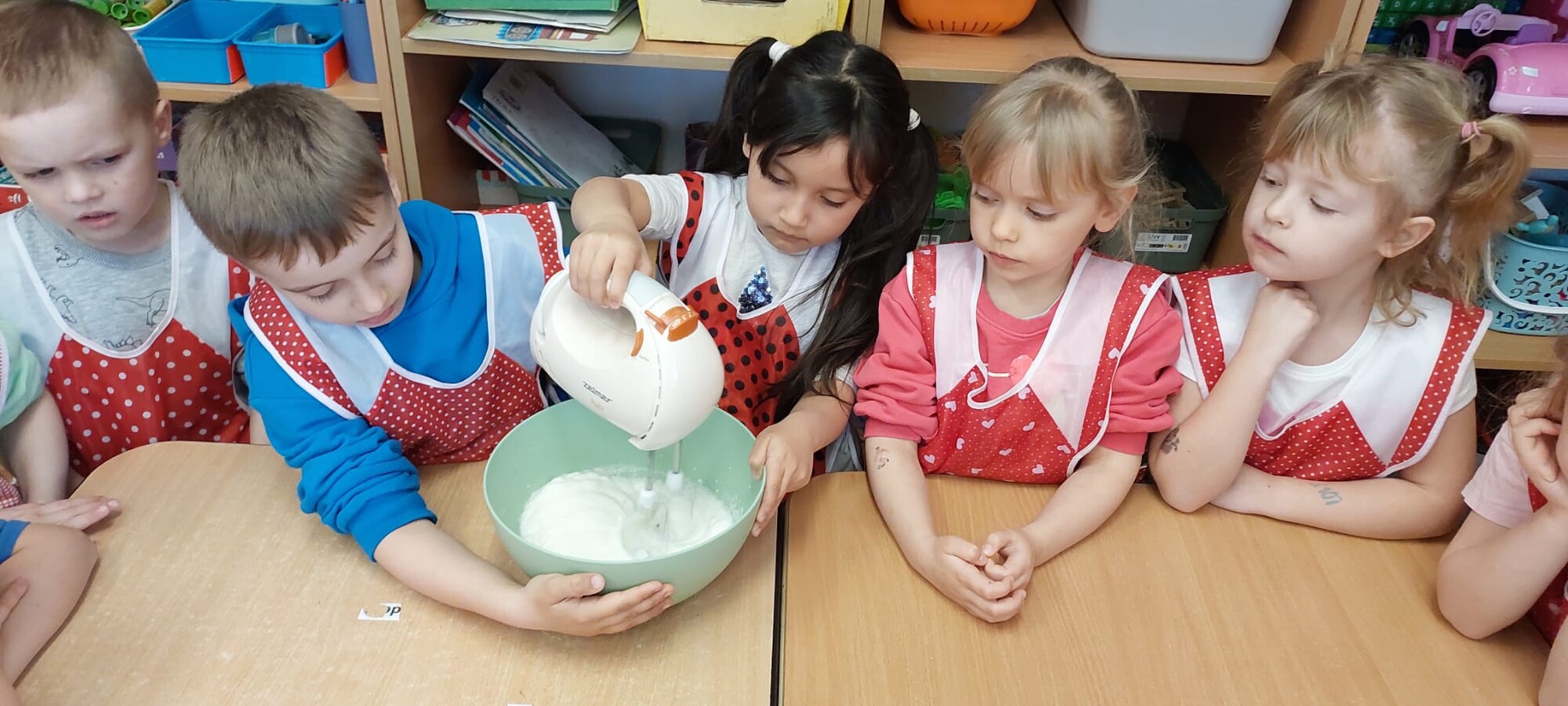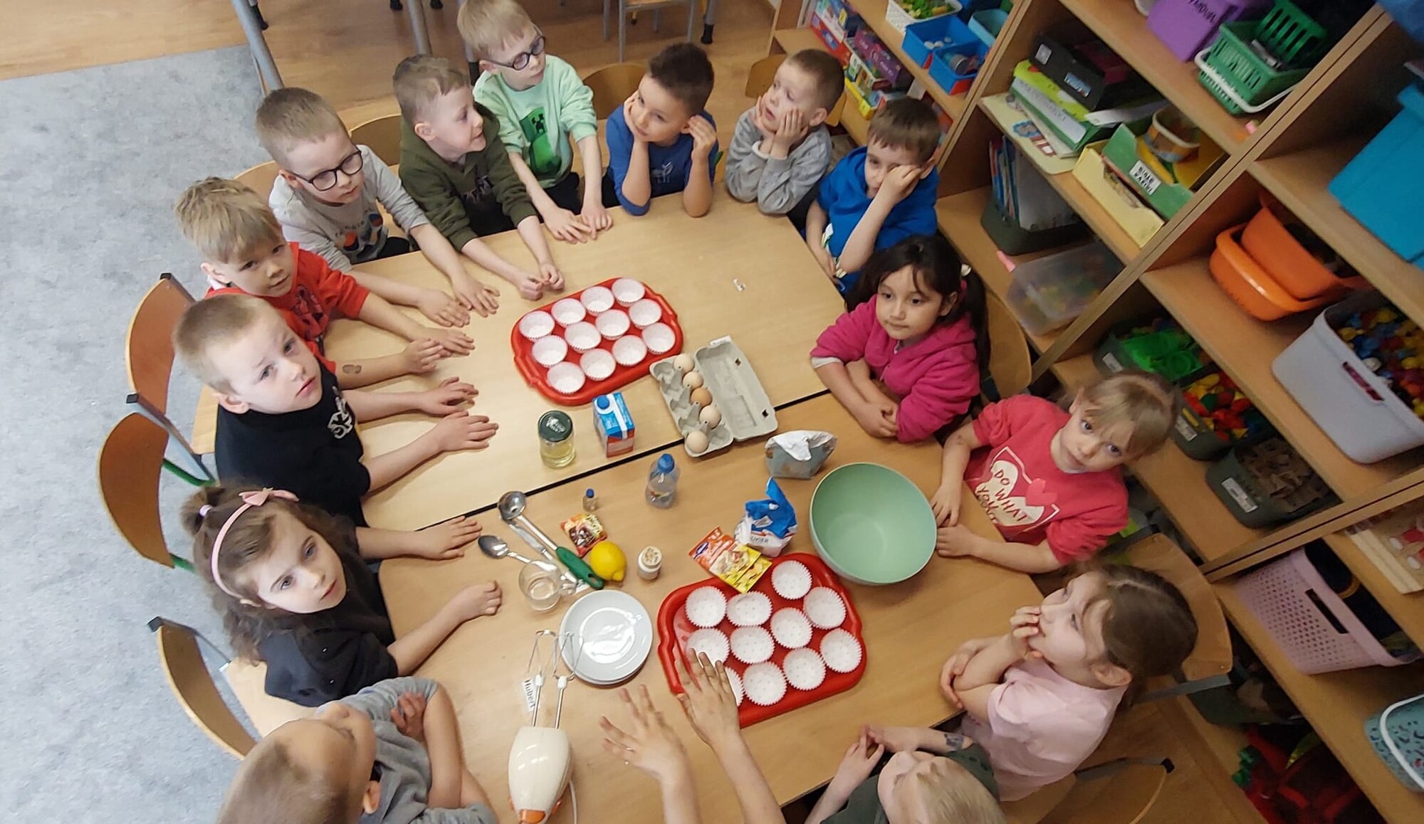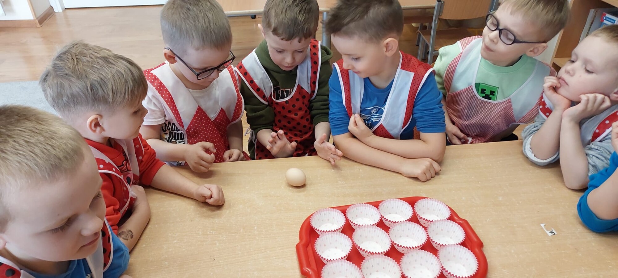 Podczas zajęć dzieci pamiętały o zachowaniu czystości i zasad bezpieczeństwa. Sprawdzały, jak odróżnić jajko gotowane od surowego bez rozbijania skorupki oraz poznawały różne sposoby oddzielania białka od żółtka.