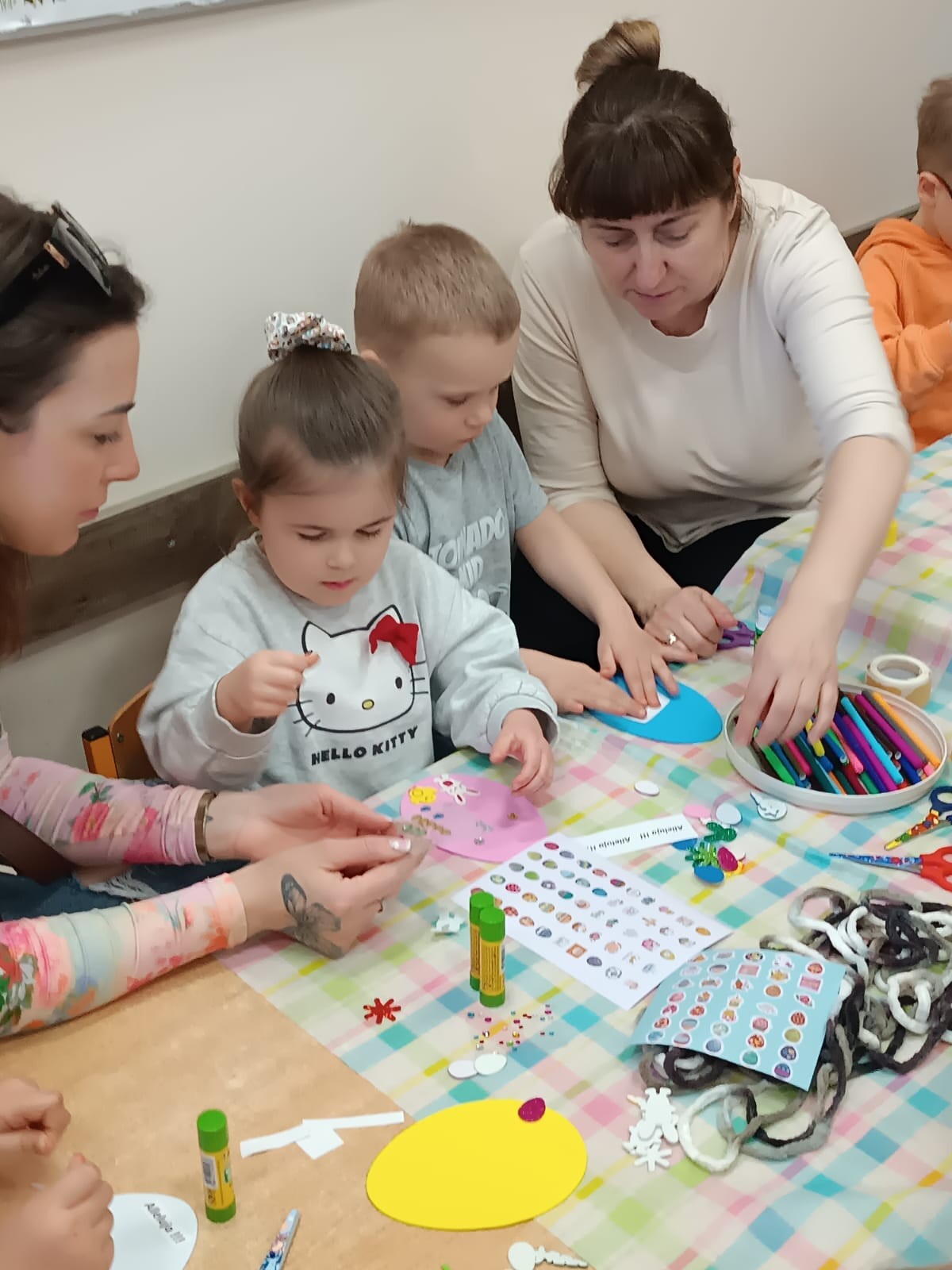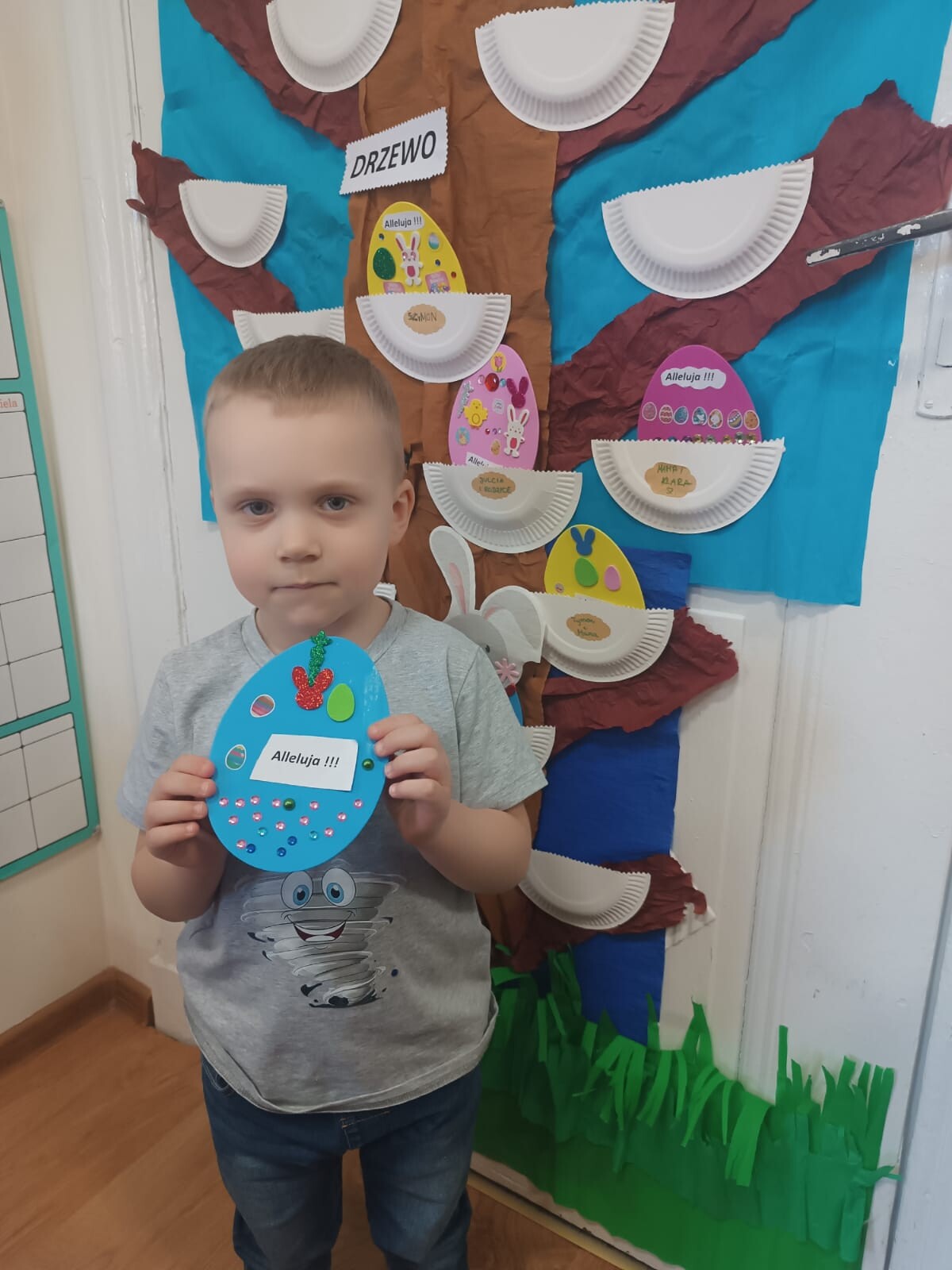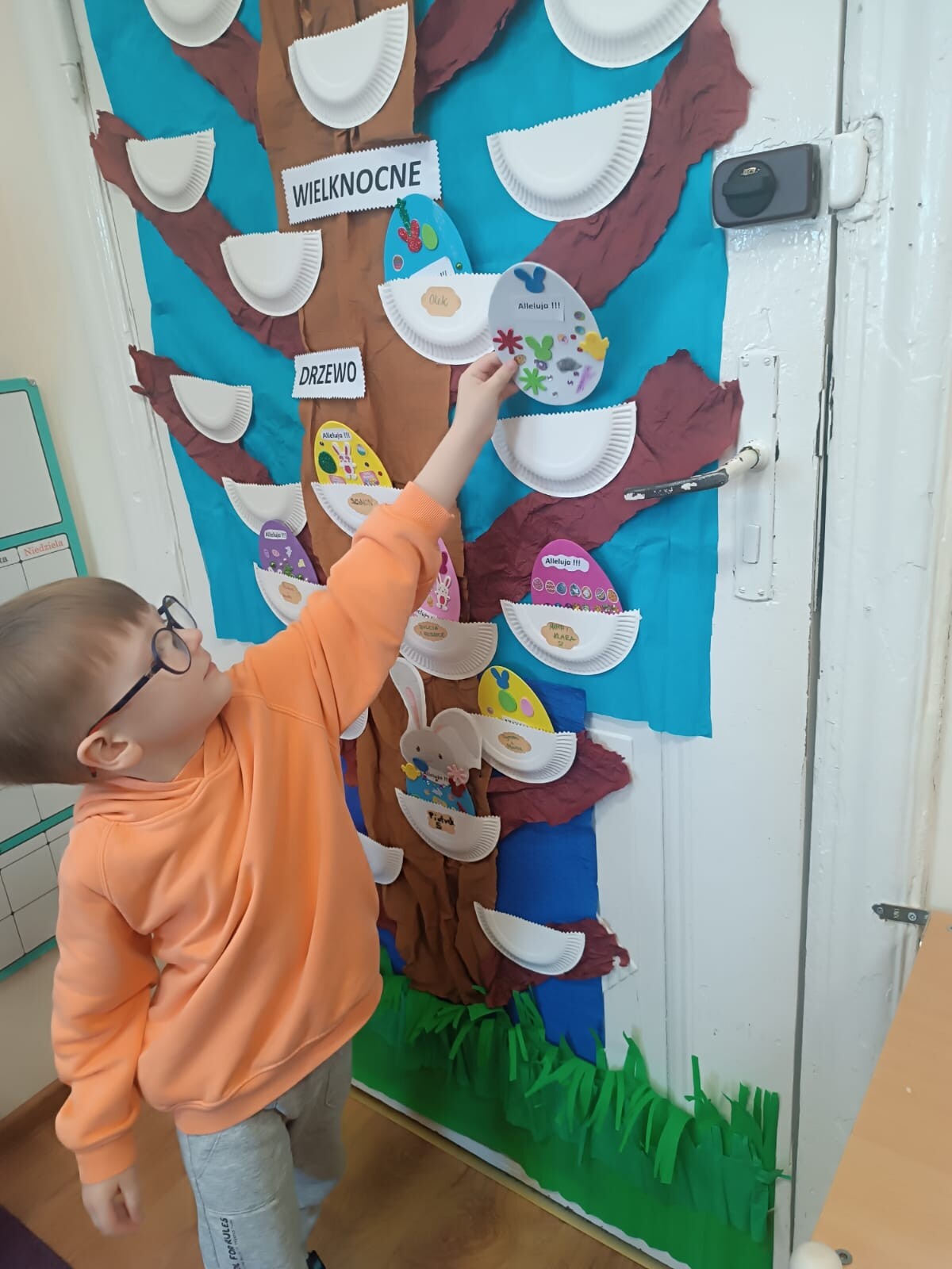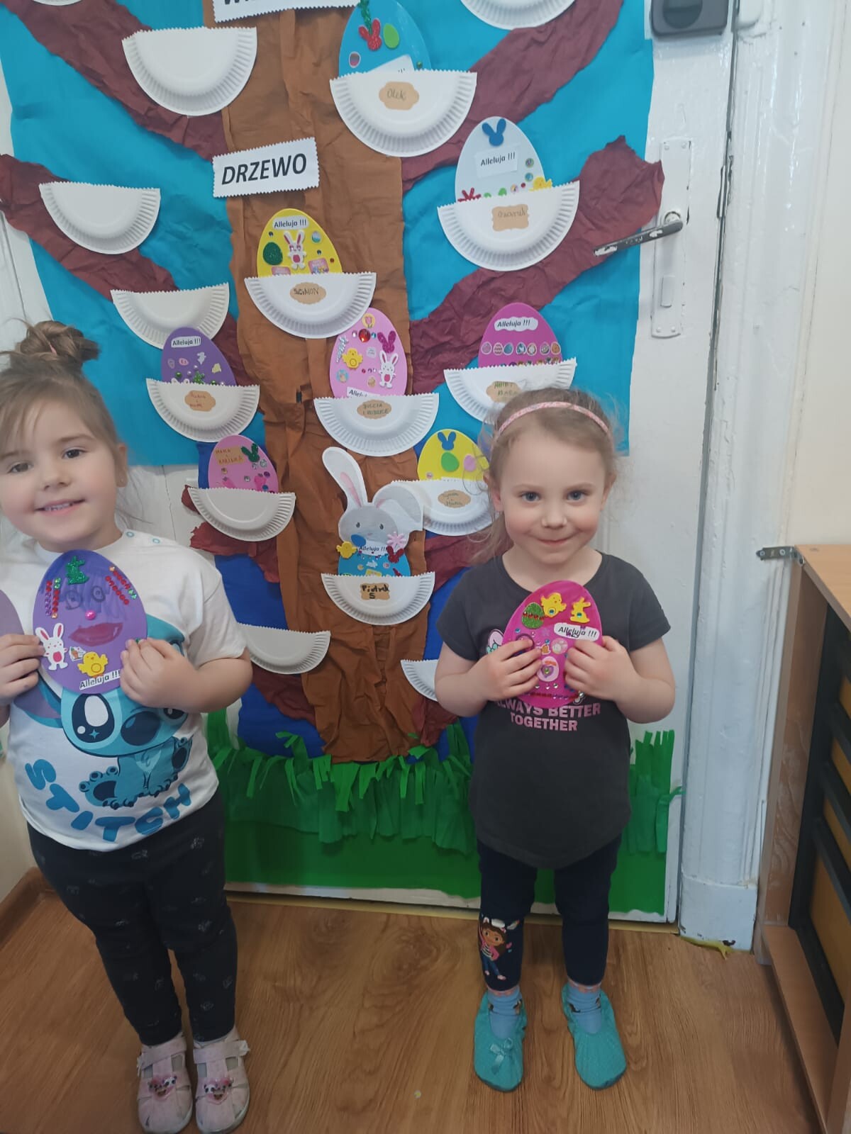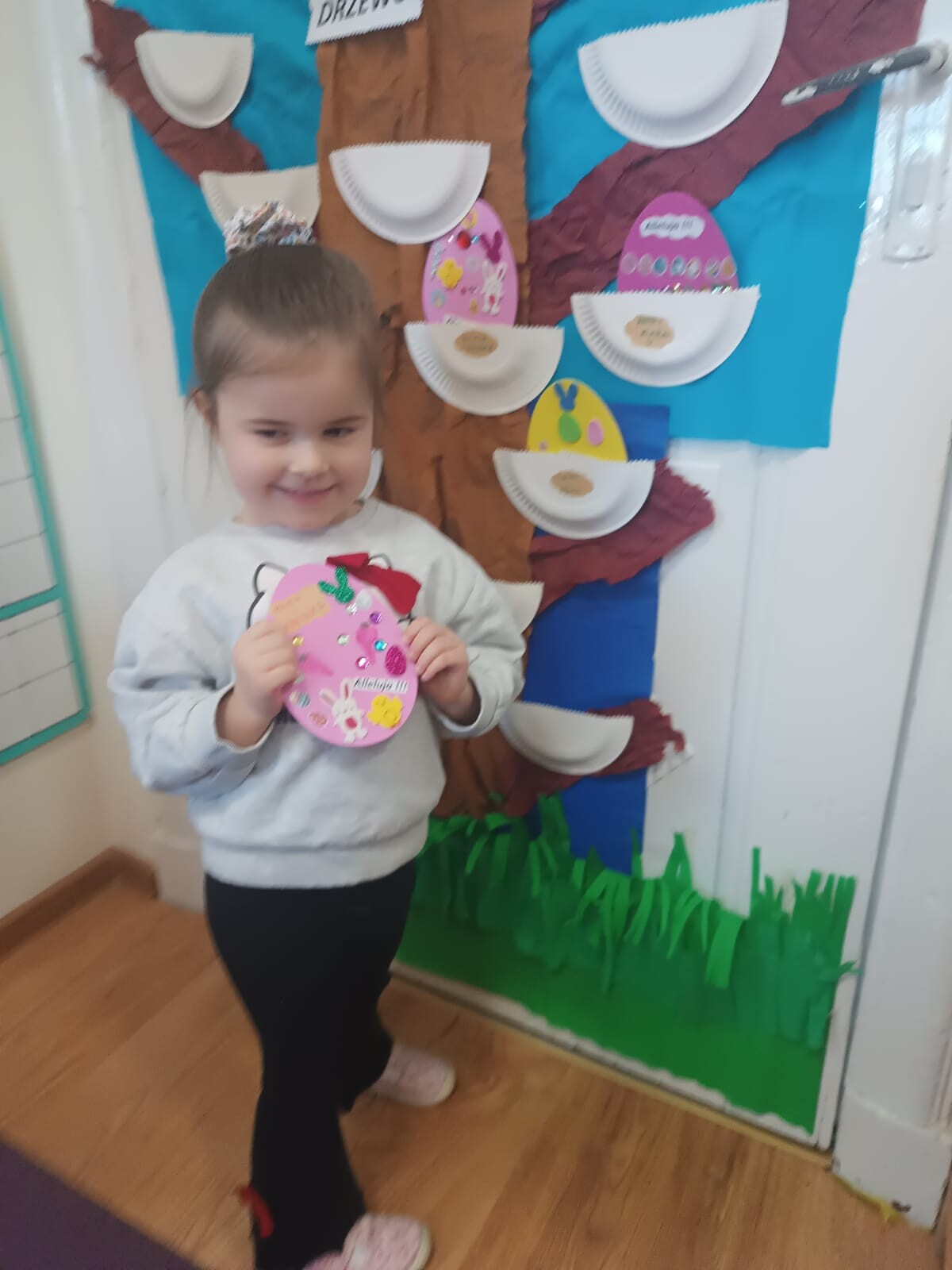 Dzieci wraz z rodzicami przystąpili do wspólnego tworzenia wielkanocnych pisanek, które ozdobiły grupowe drzewko. Nie zabrakło również pamiątkowych zdjęć na specjalnie przygotowanym, świątecznym tle.