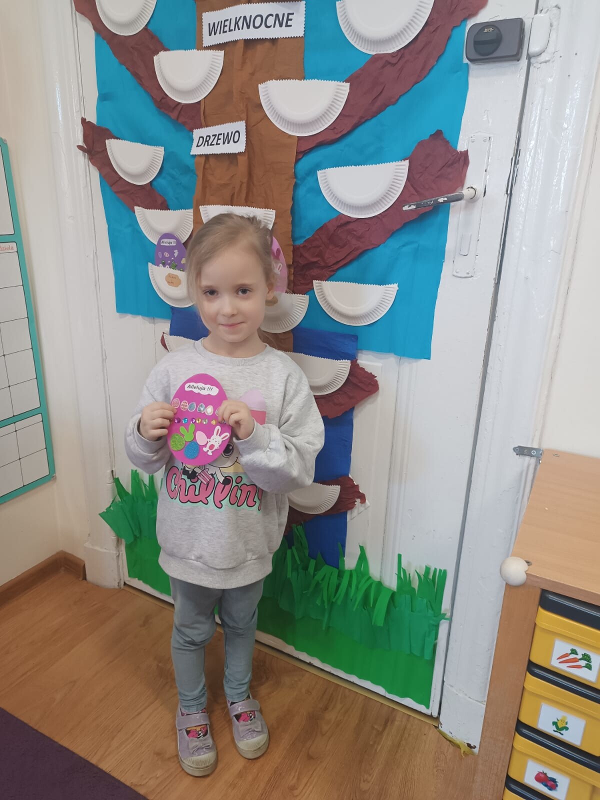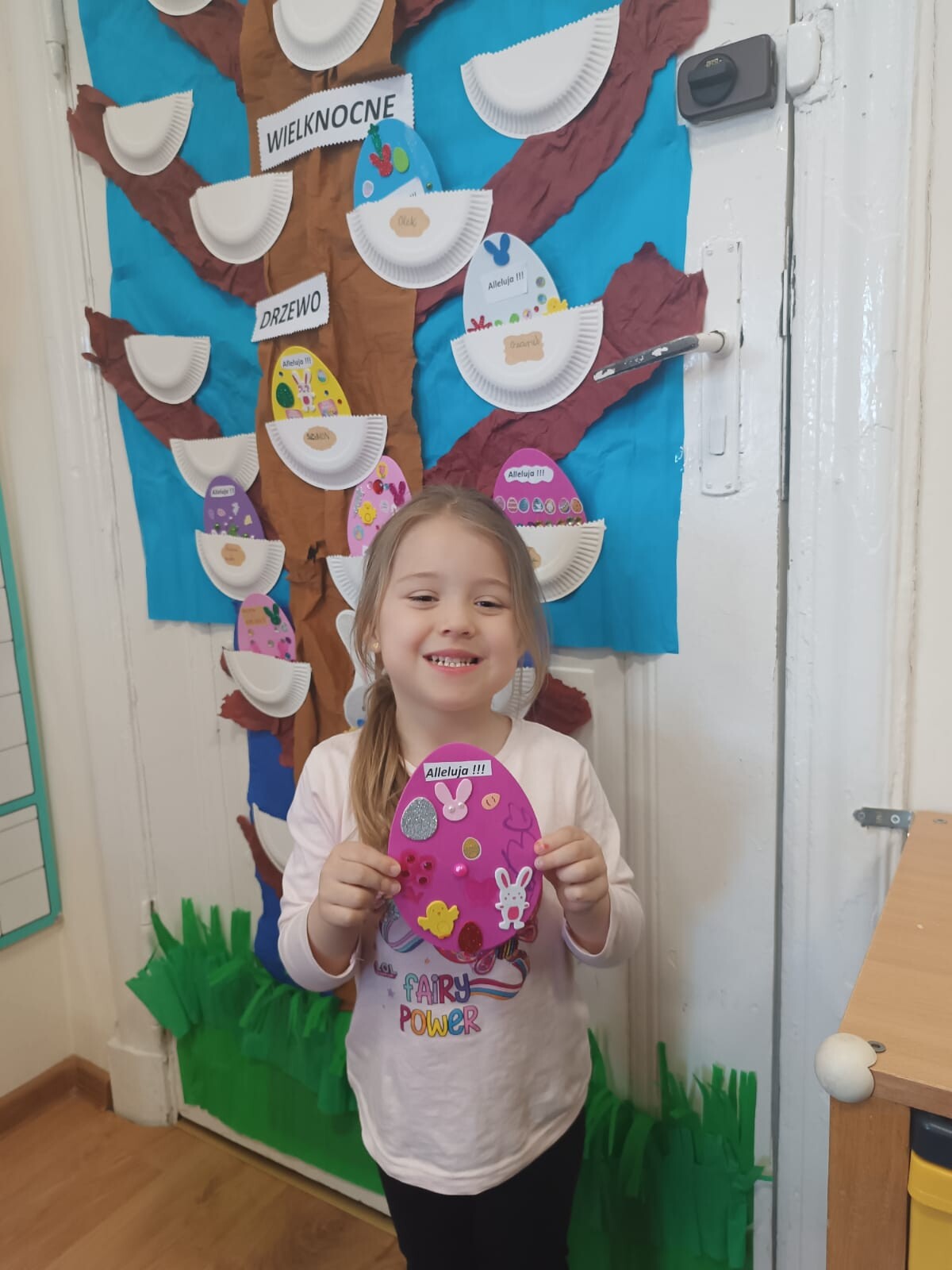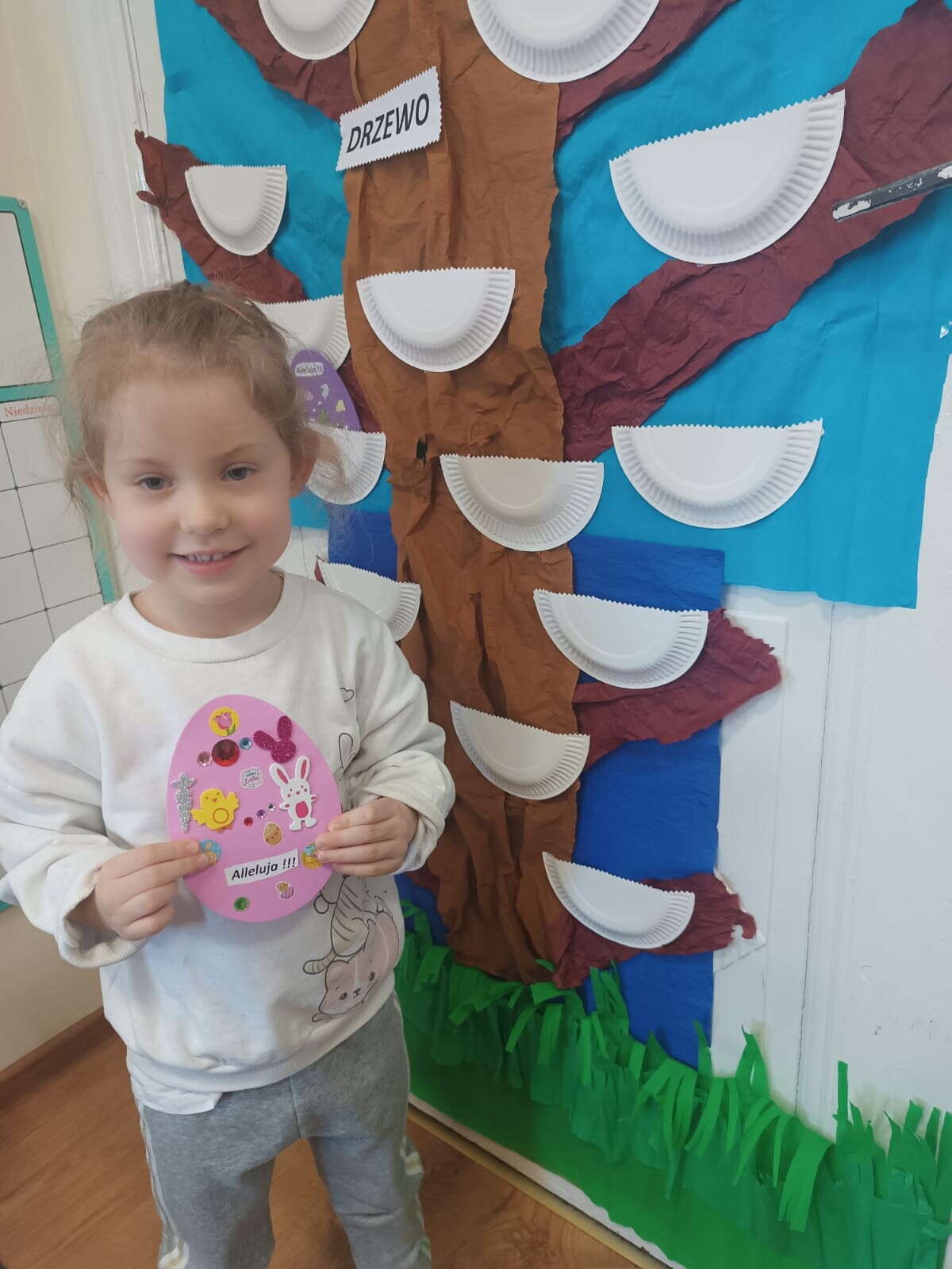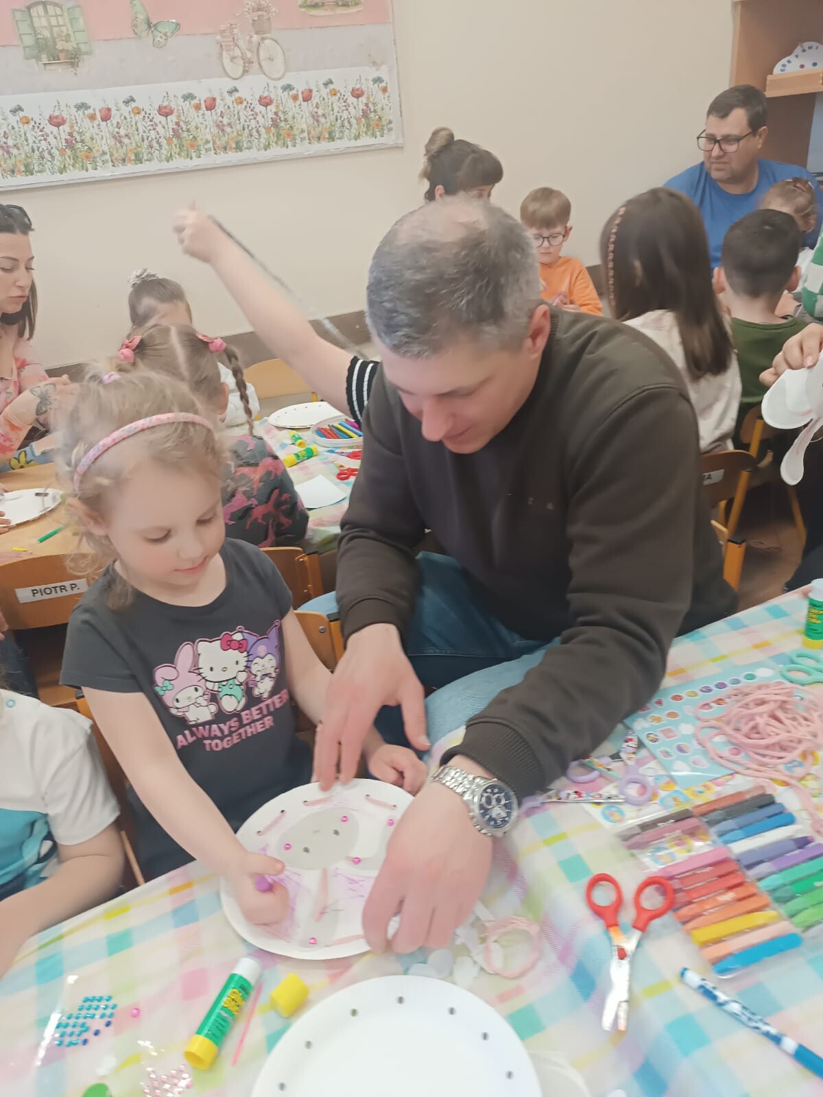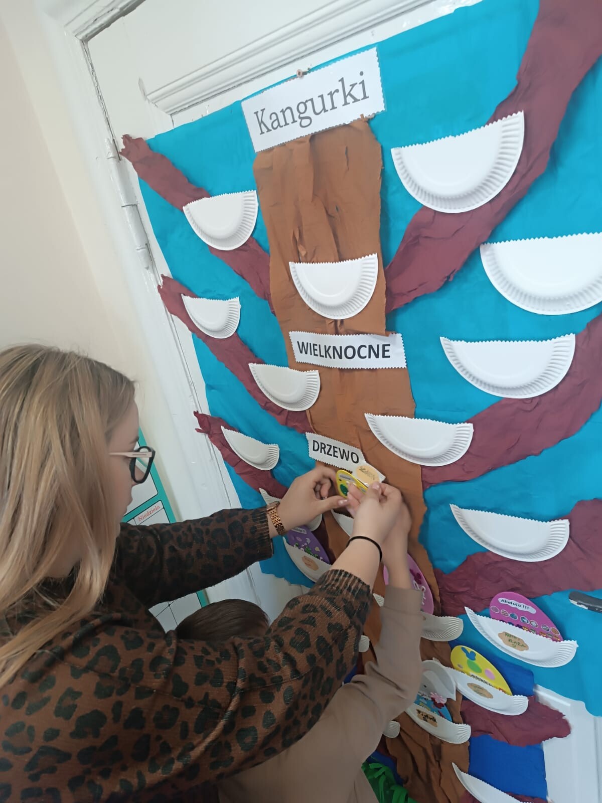 Dzieci wraz z rodzicami przystąpili do wspólnego tworzenia wielkanocnych pisanek, które ozdobiły grupowe drzewko. Nie zabrakło również pamiątkowych zdjęć na specjalnie przygotowanym, świątecznym tle.