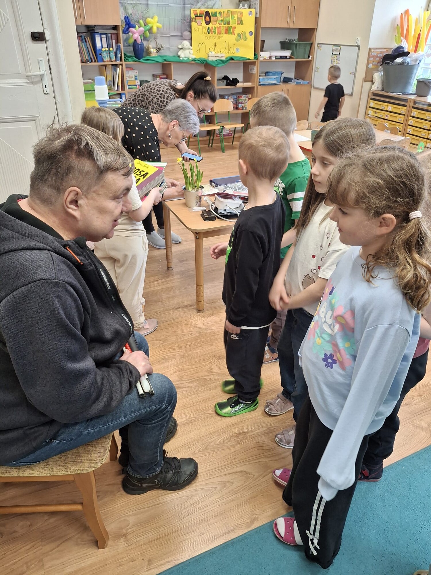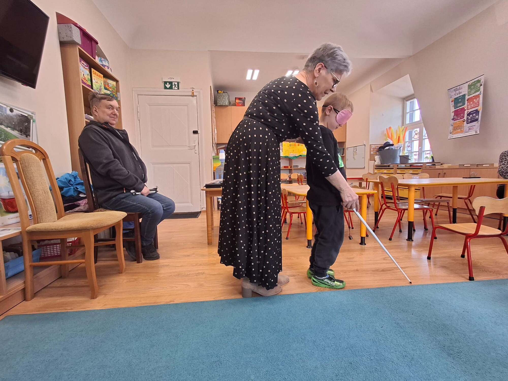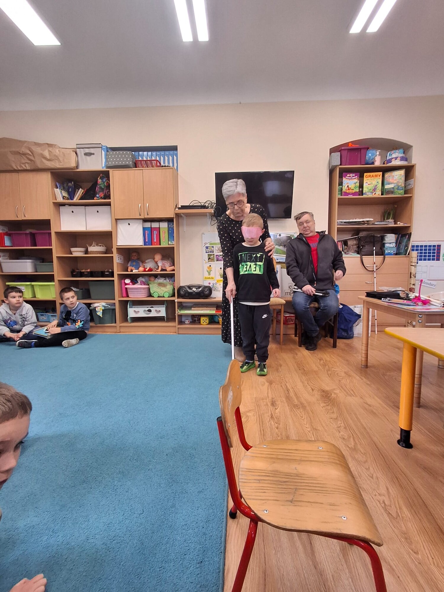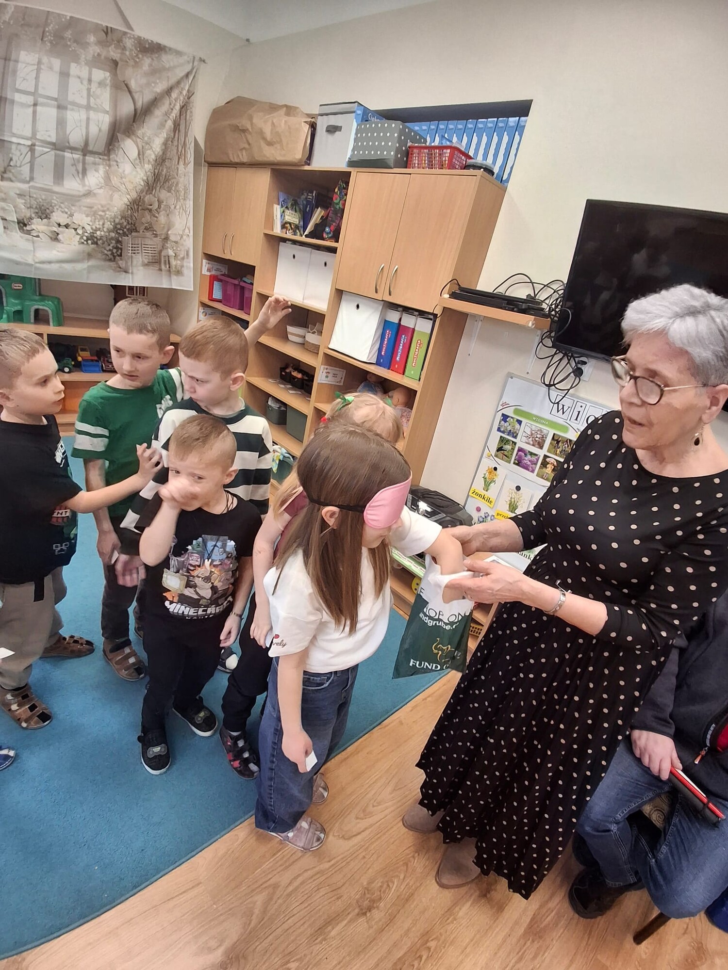 Podczas spotkania przedszkolaki miały okazję zapoznać się z różnymi przedmiotami codziennego użytku, które ułatwiają funkcjonowanie osobom niewidomym. Dzieci mogły także spróbować poruszania się z zasłoniętymi oczami, co pozwoliło im lepiej zrozumieć wyzwania, z jakimi mierzą się osoby z dysfunkcją wzroku.