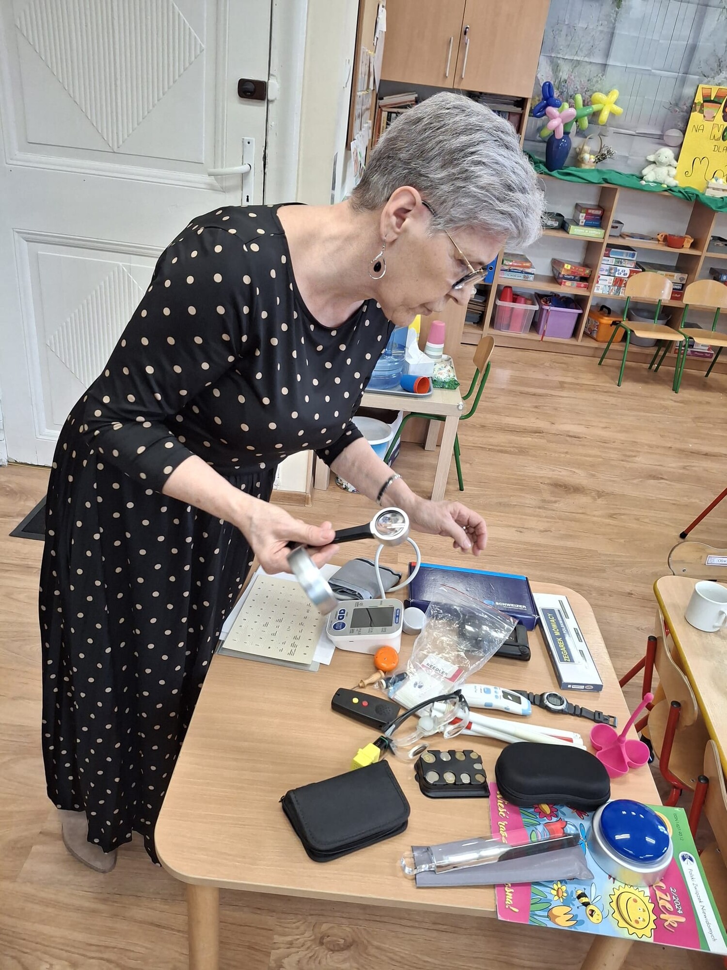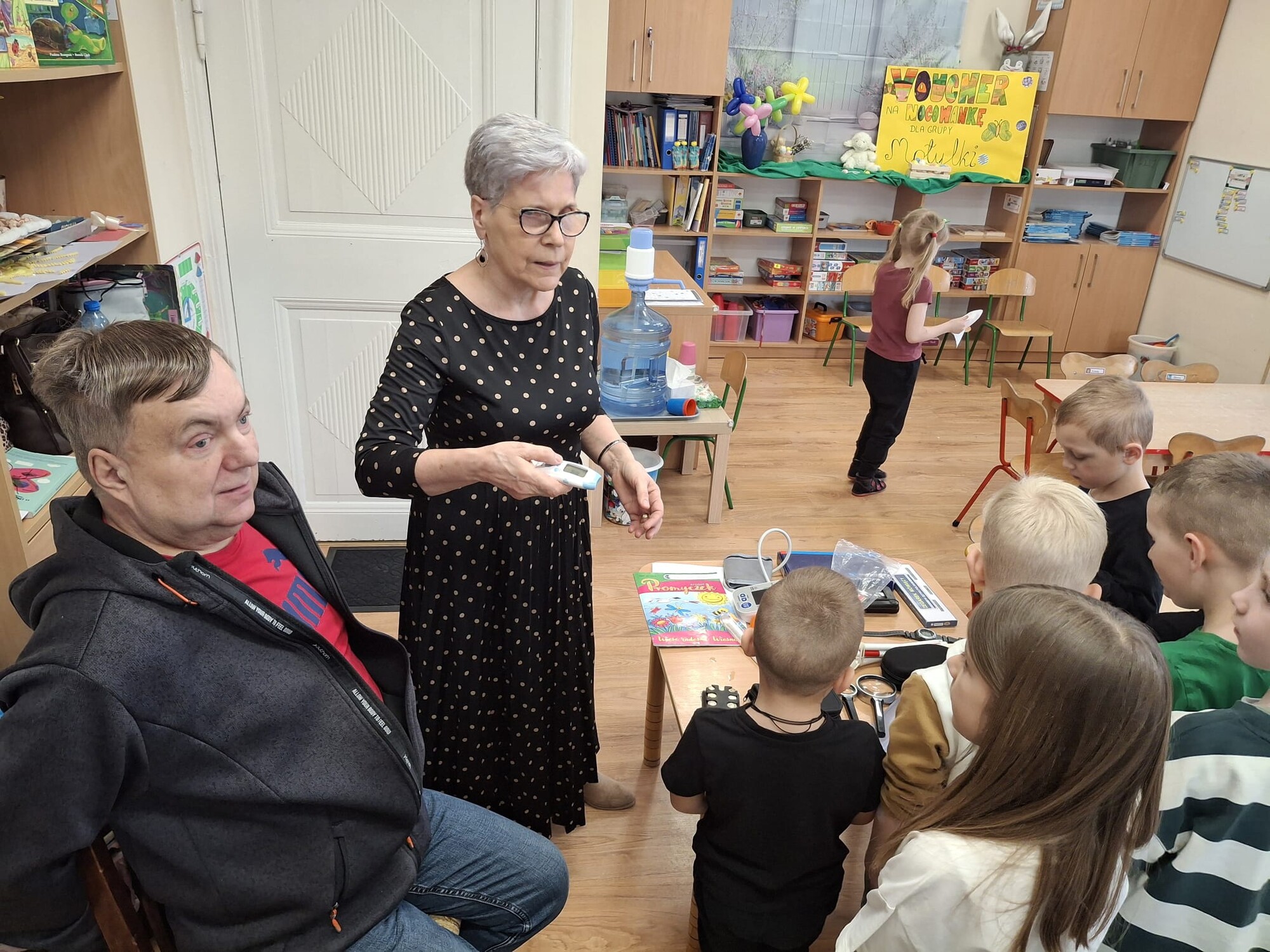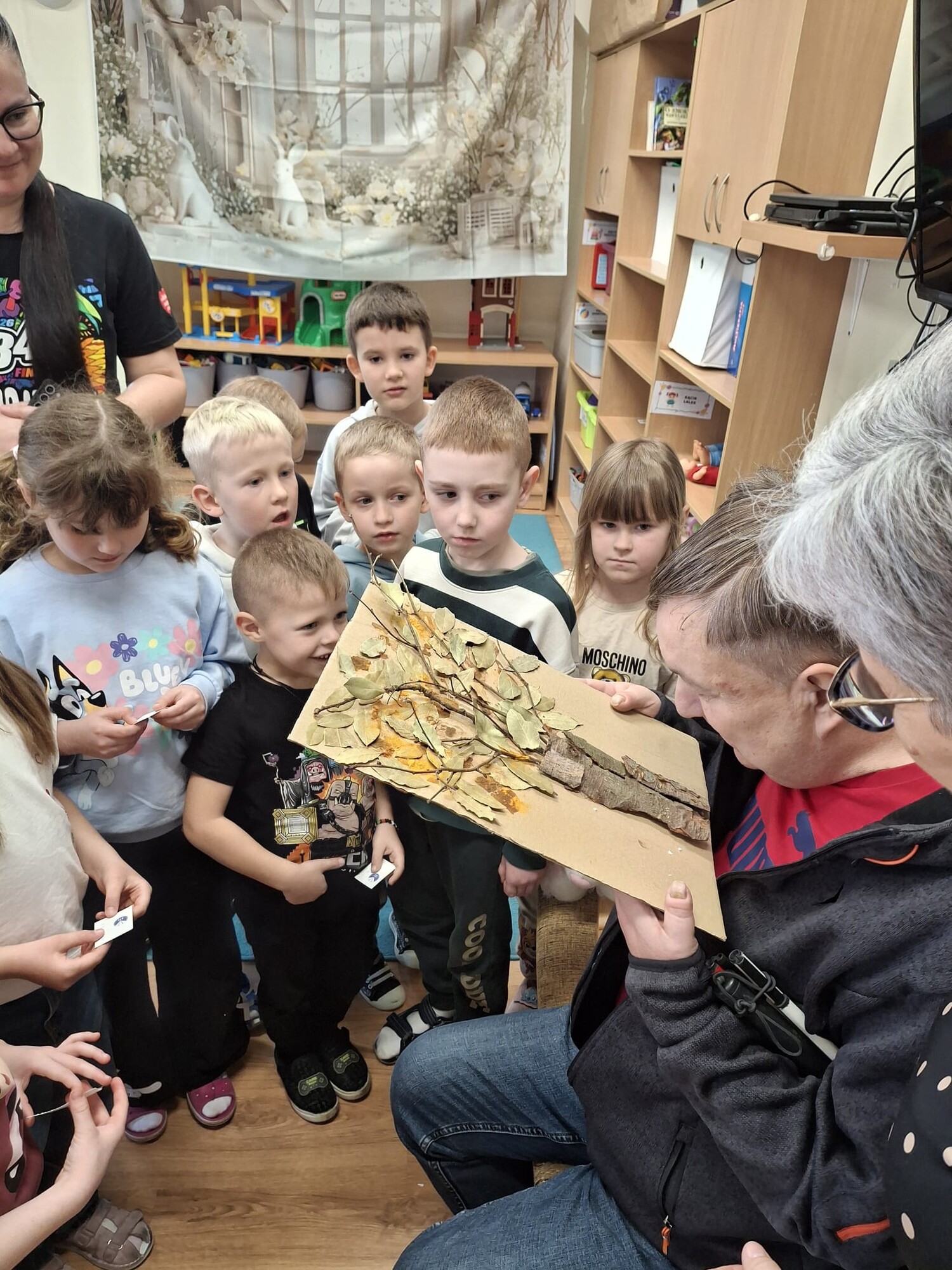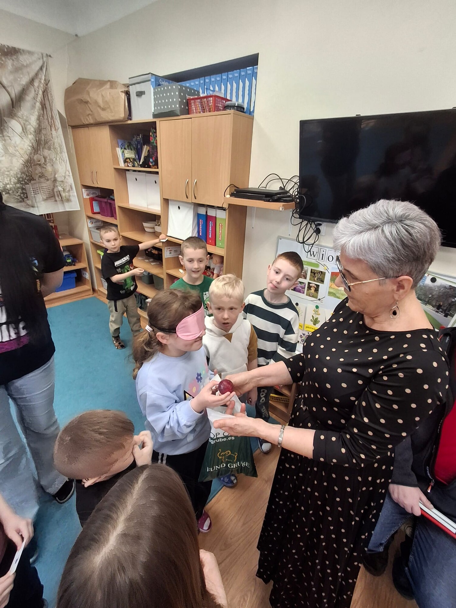 Podczas spotkania przedszkolaki miały okazję zapoznać się z różnymi przedmiotami codziennego użytku, które ułatwiają funkcjonowanie osobom niewidomym. Dzieci mogły także spróbować poruszania się z zasłoniętymi oczami, co pozwoliło im lepiej zrozumieć wyzwania, z jakimi mierzą się osoby z dysfunkcją wzroku.