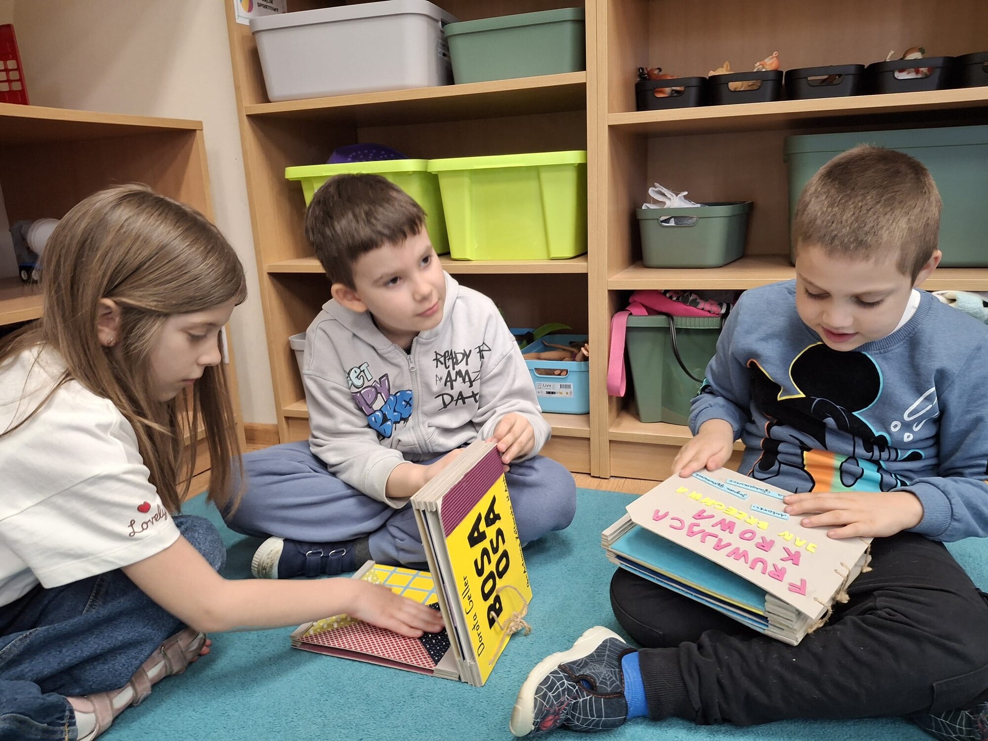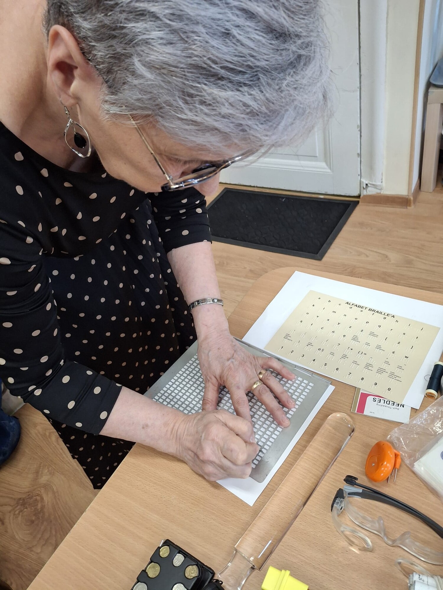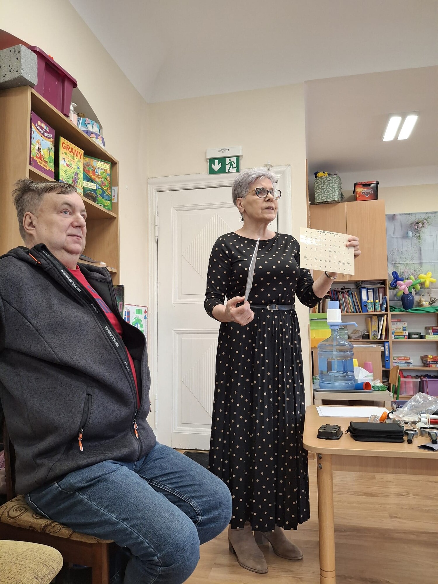 Dużym zainteresowaniem cieszyło się również poznawanie alfabetu Braille’a – każde dziecko otrzymało swoje imię zapisane w tej formie.