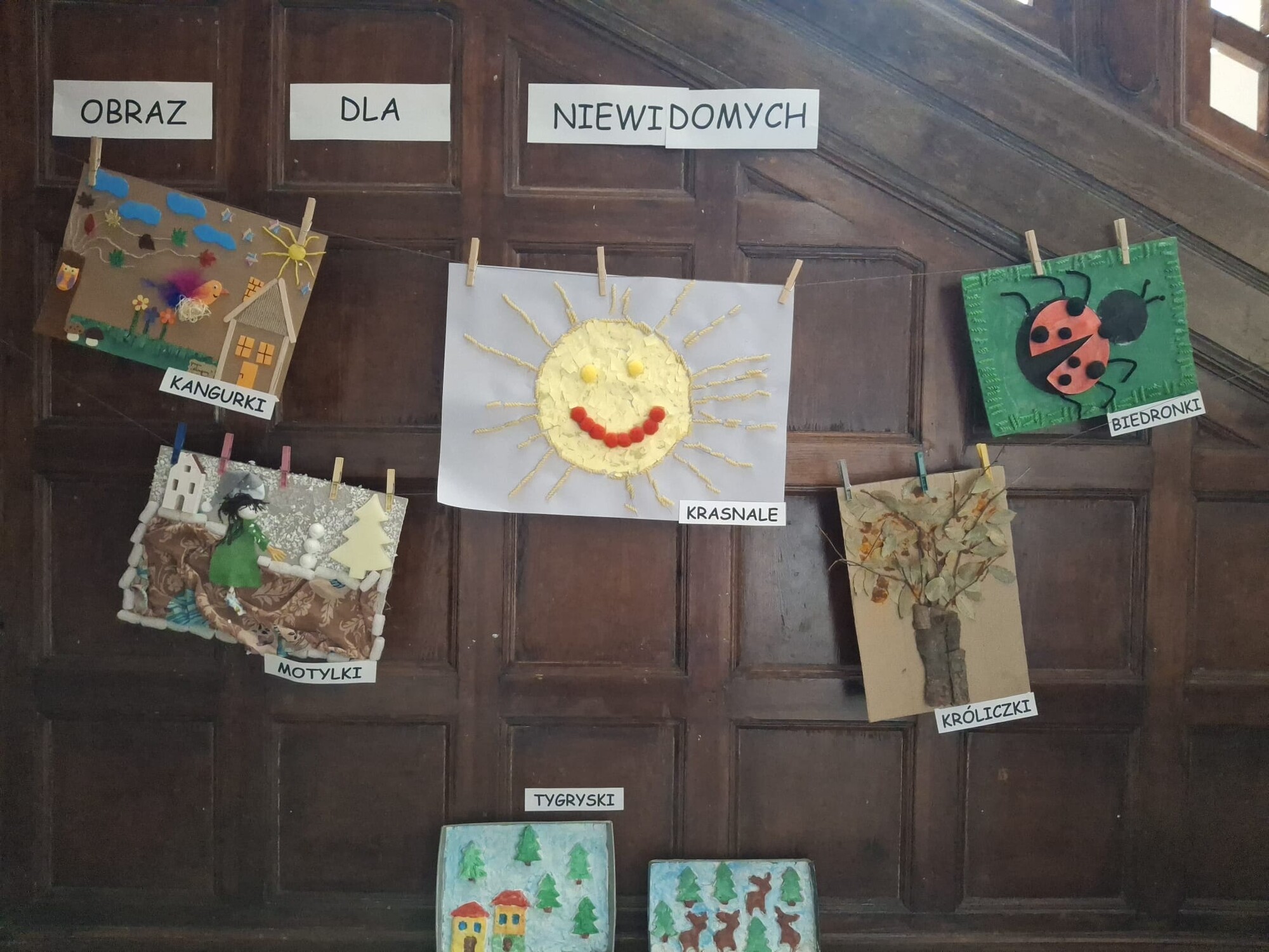 Pozostałe grupy przedszkolne przygotowały prace plastyczne pt. „Obraz dla niewidomych”, które stanowiły niespodziankę oraz ciekawe wyzwanie dla Pana Zbyszka.