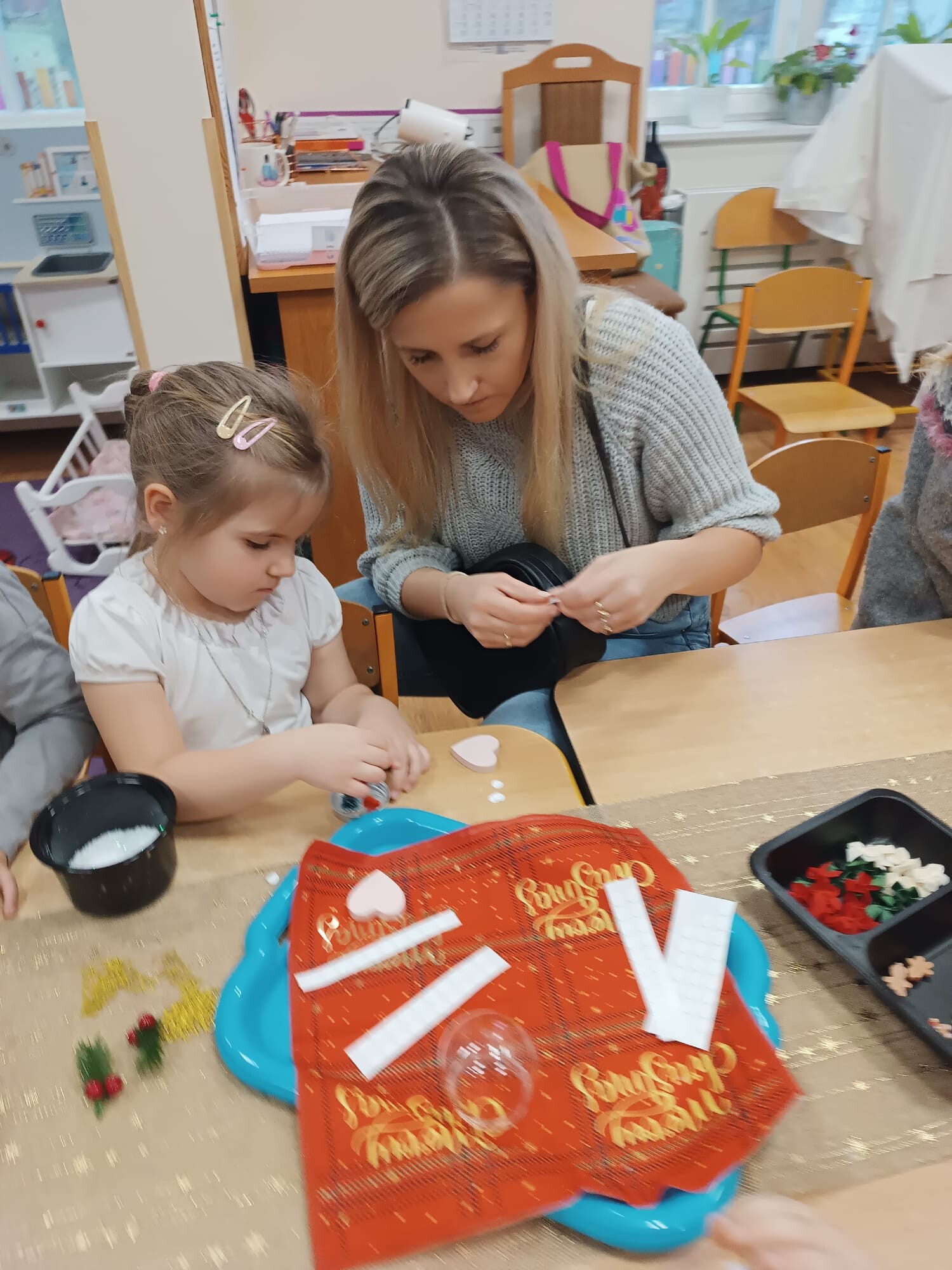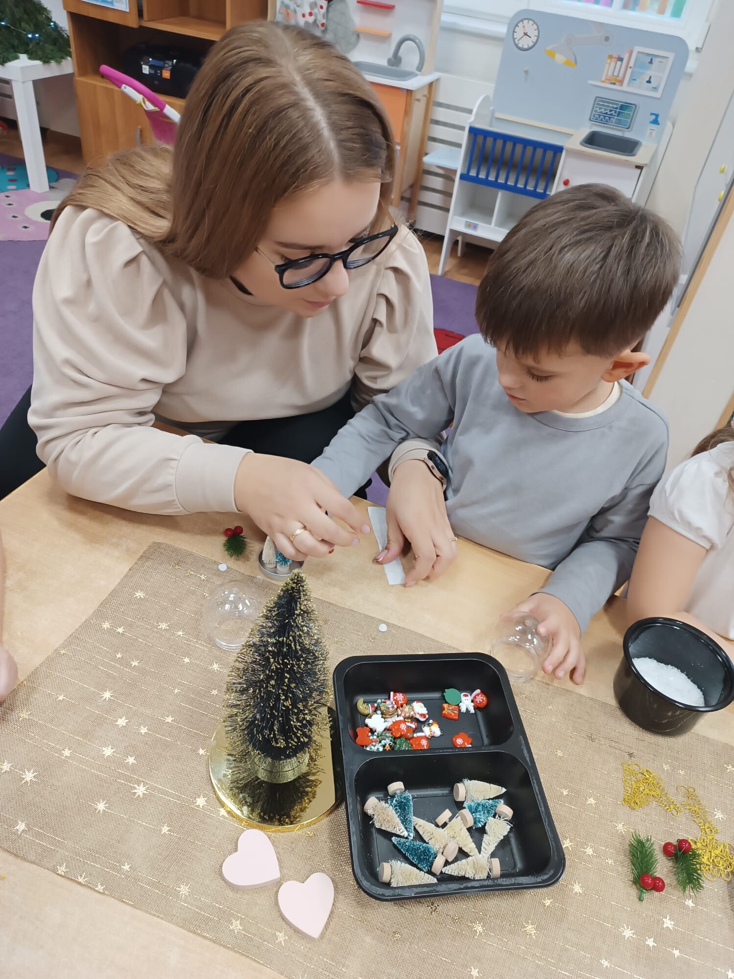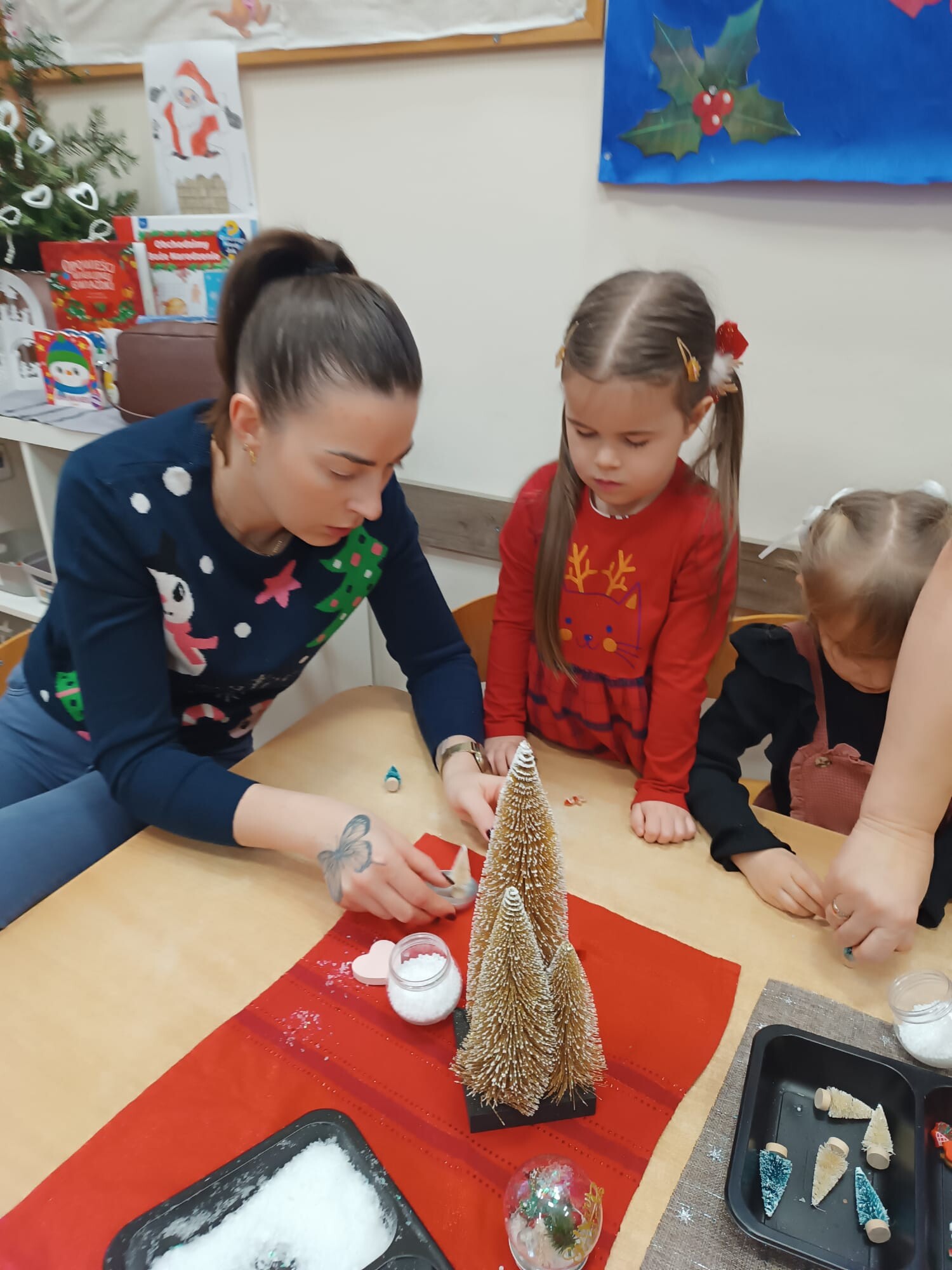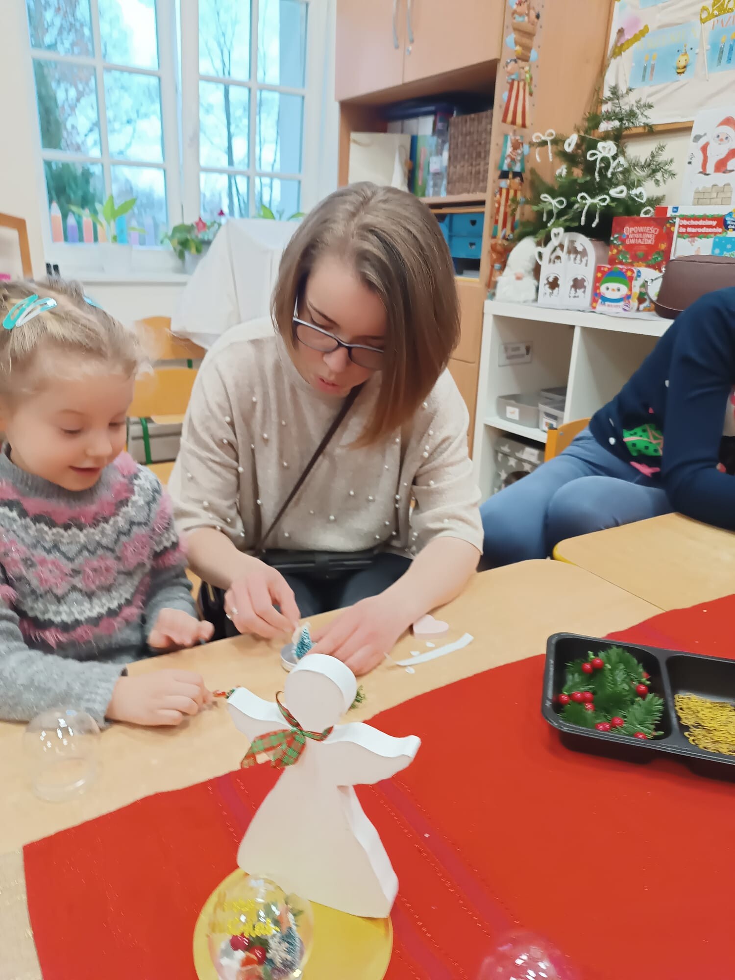 W grupie Kangurki odbyły się świąteczne warsztaty plastyczne. Zadaniem dzieci było wykonanie kuli śnieżnej z przygotowanych wcześniej materiałów. Przedszkolaki wraz z rodzicami, z ogromnym zaangażowaniem i radością tworzyły swoje kreatywne prace.