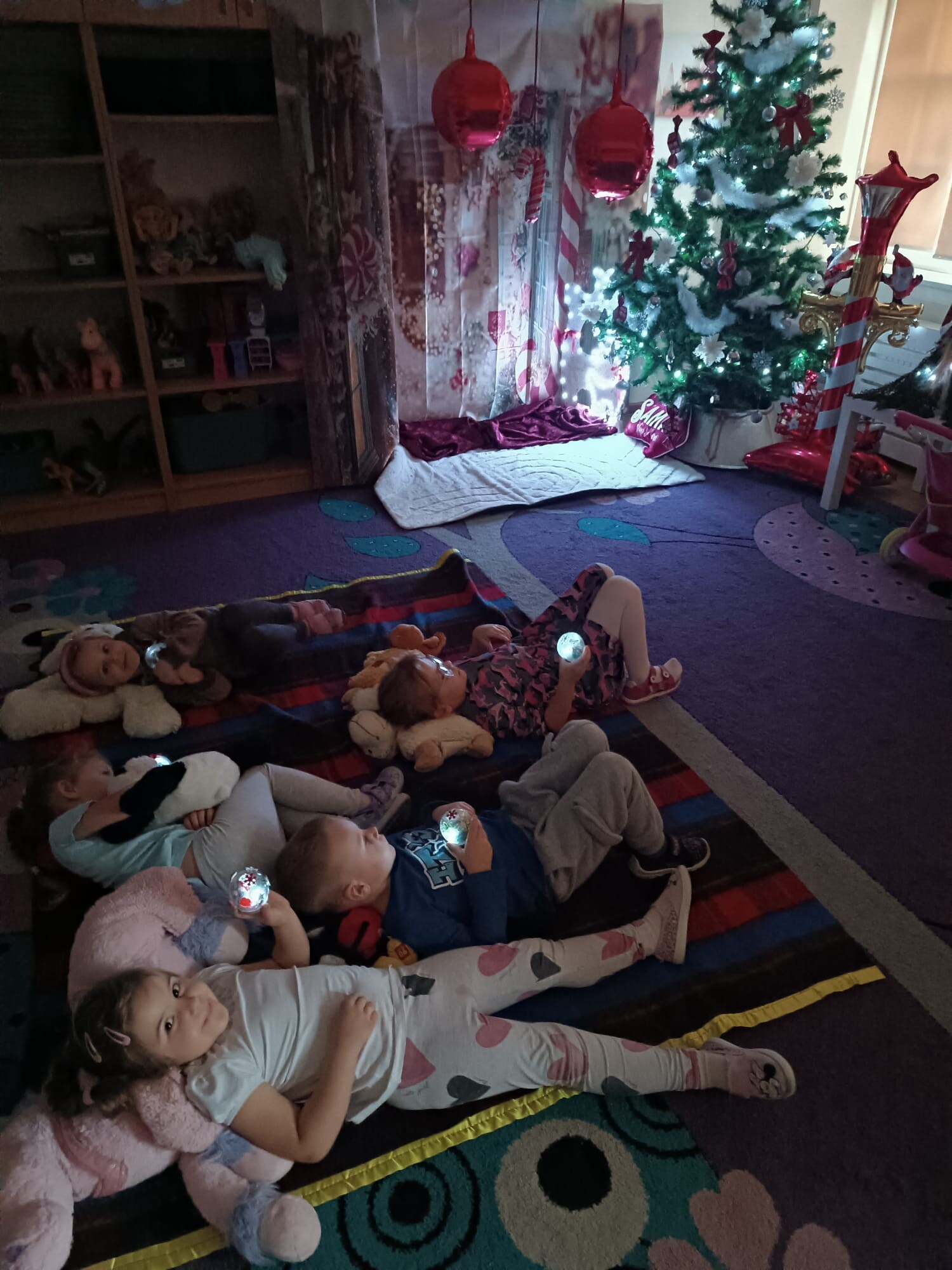 Na zakończenie dnia, podczas zajęć relaksacyjnych, towarzyszyły im własnoręcznie wykonane kule śnieżne, wprowadzając jeszcze więcej świątecznej atmosfery.
