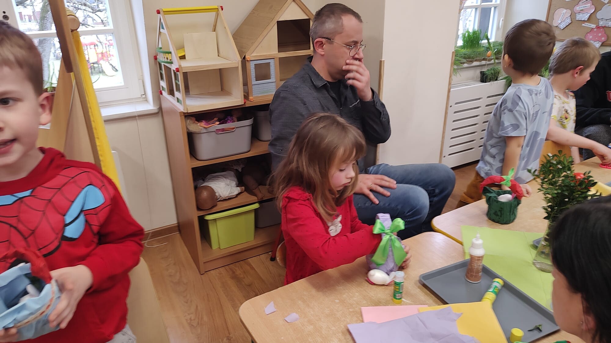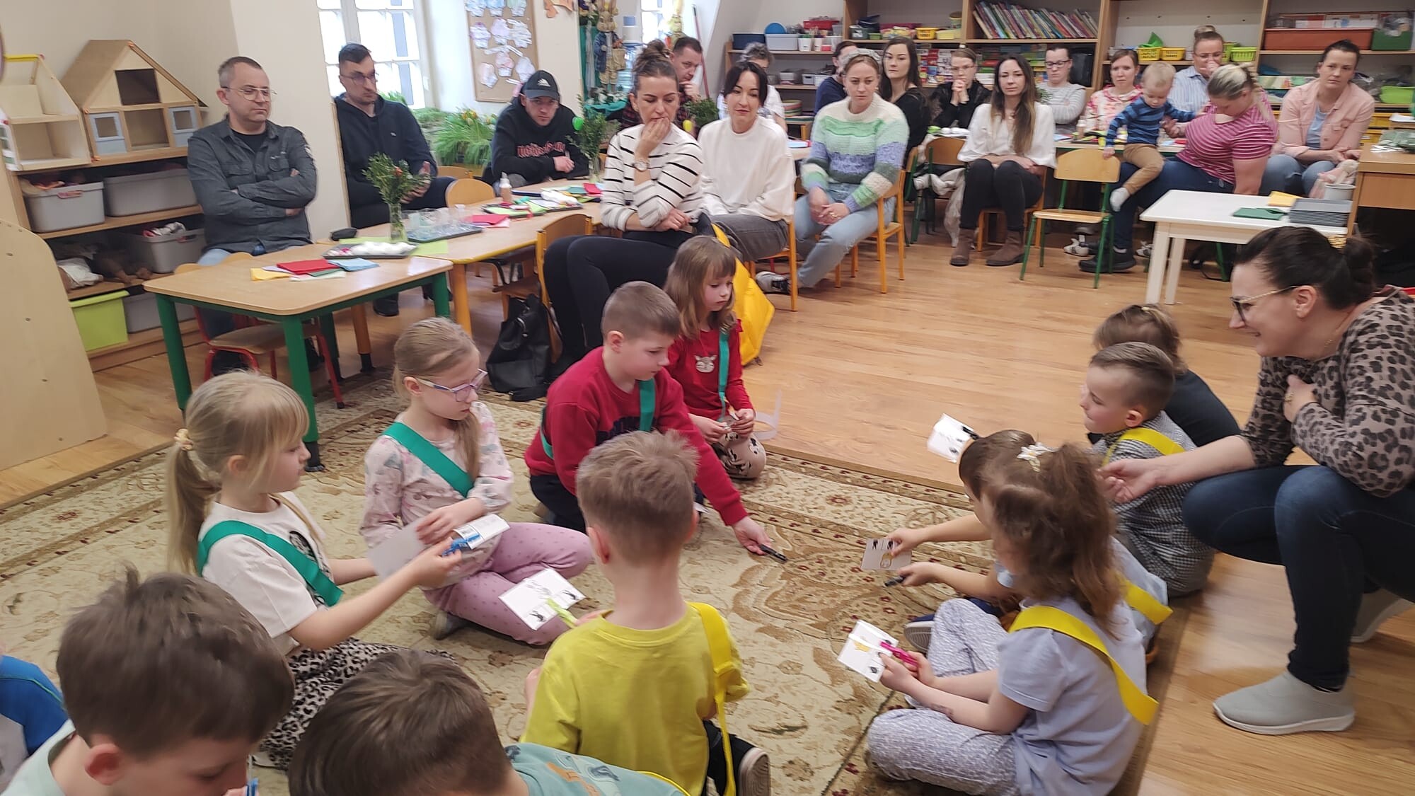 Warsztaty wielkanocne z udziałem rodziców w grupie „Tygryski” były radosnym i pełnym zaangażowania wydarzeniem, które wprowadziło wszystkich w świąteczny, wiosenny nastrój. Spotkanie rozpoczęło się od prezentacji piosenek o tematyce wiosennej w wykonaniu dzieci. Mali artyści z dumą zaprezentowali swoje umiejętności wokalne, wywołując uśmiechy oraz wzruszenie wśród zgromadzonych rodziców.