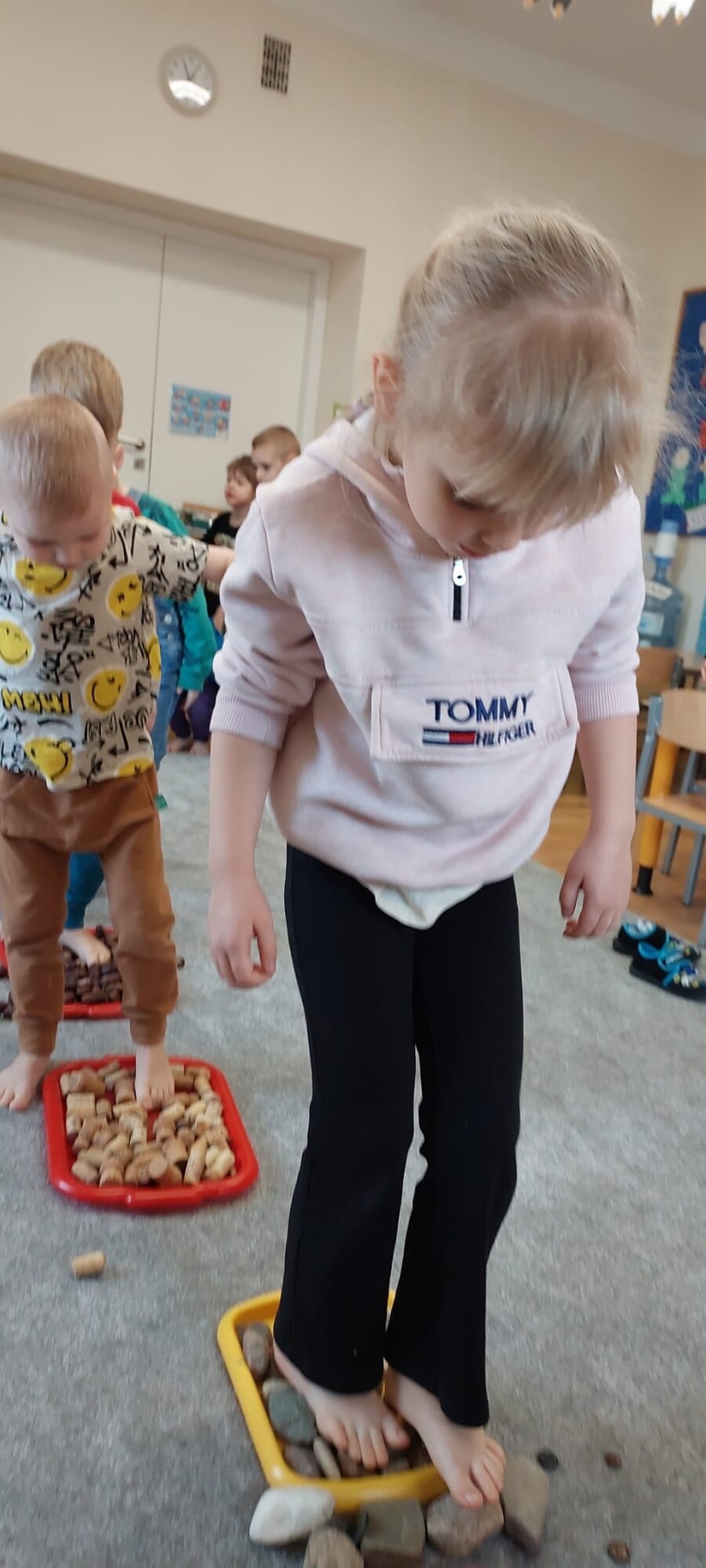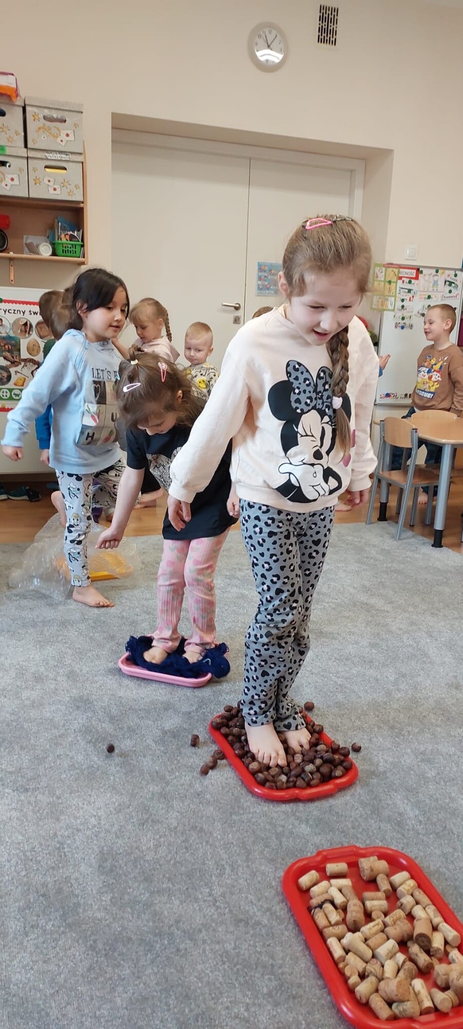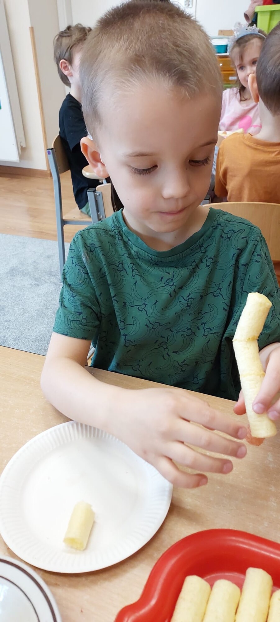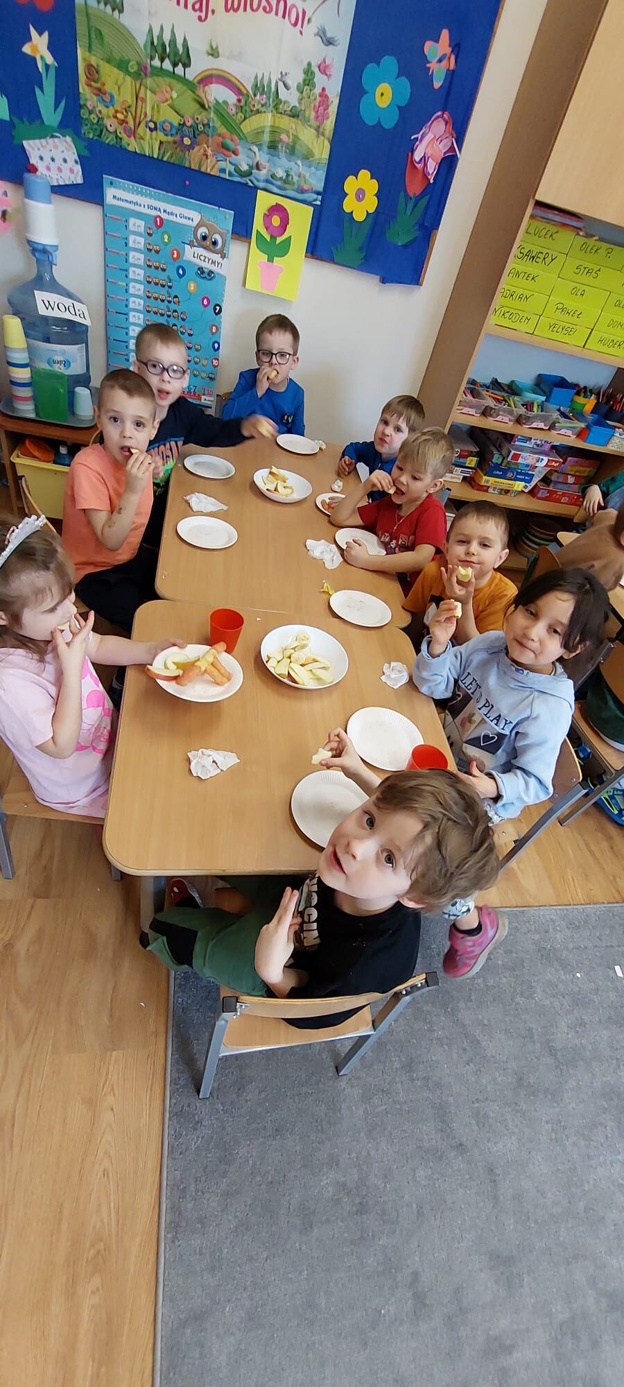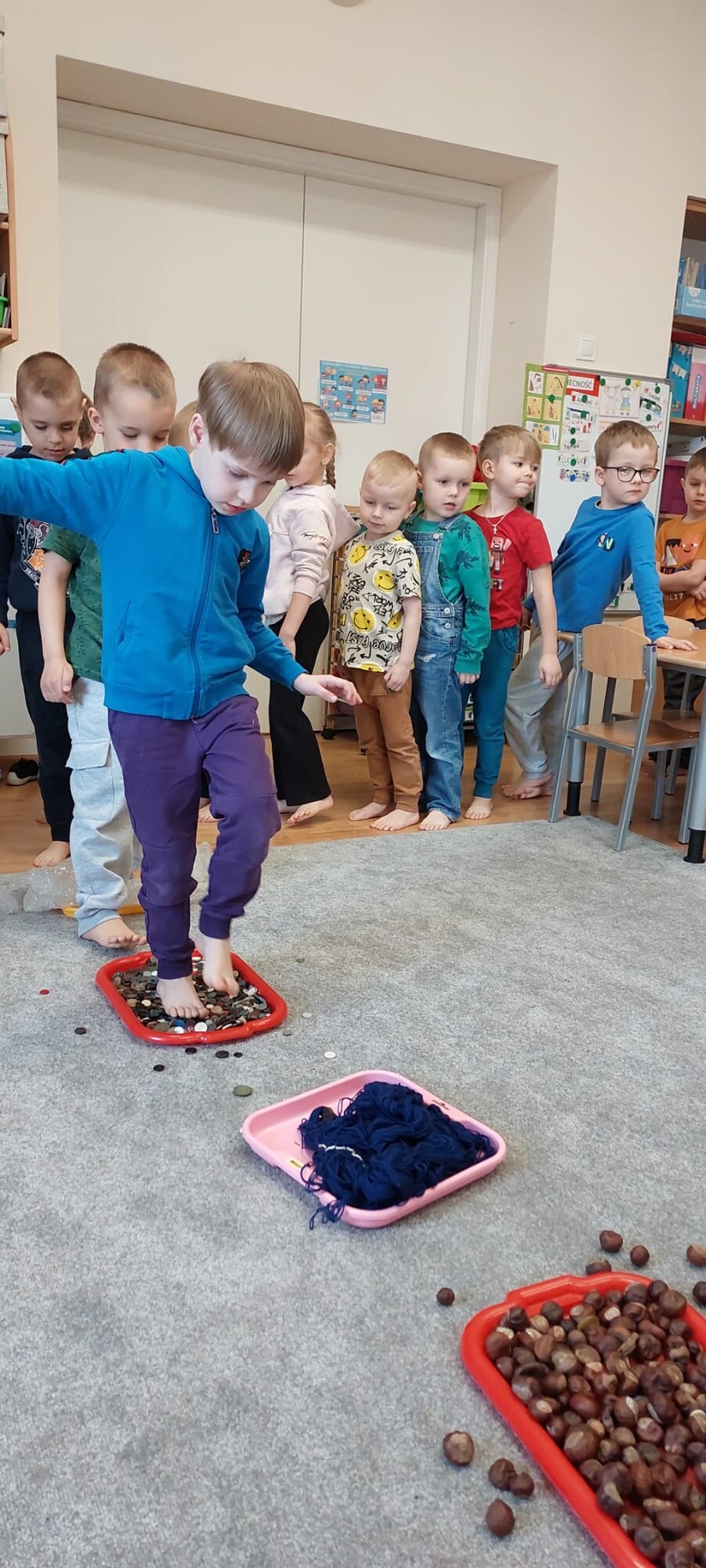 Dzieci z grupy „Biedronki” poznawały świat poprzez różnorodne doświadczenia angażujące zmysły: dotyk, słuch, smak, wzrok i węch. Podczas zajęć badały różne faktury, rozpoznawały zapachy owoców oraz próbowały ich smaku, rozwijając swoją wrażliwość sensoryczną.