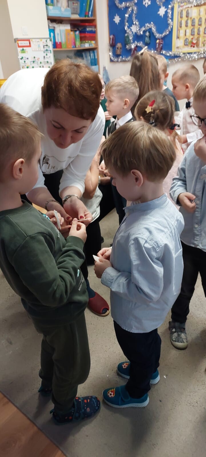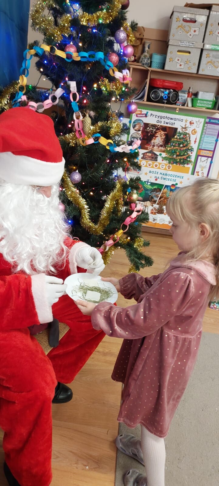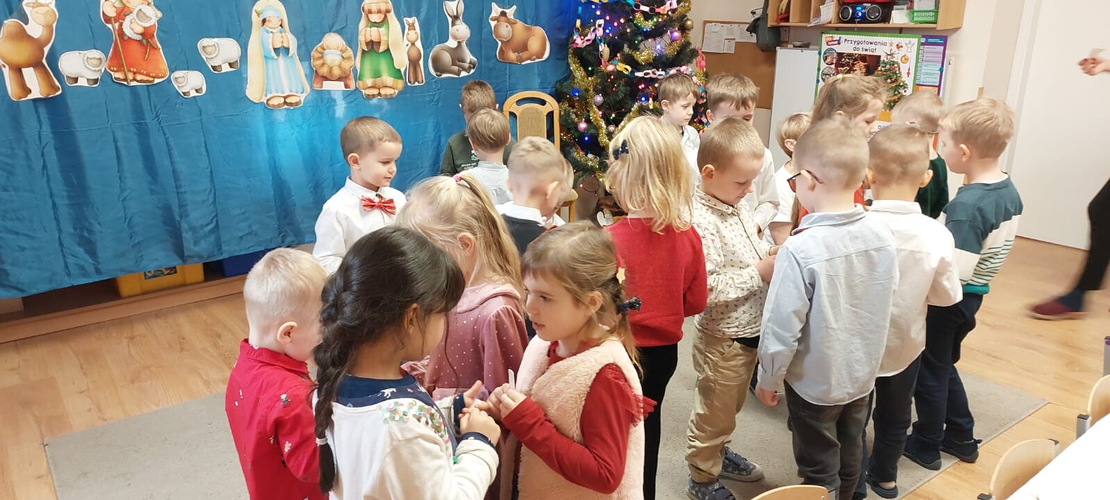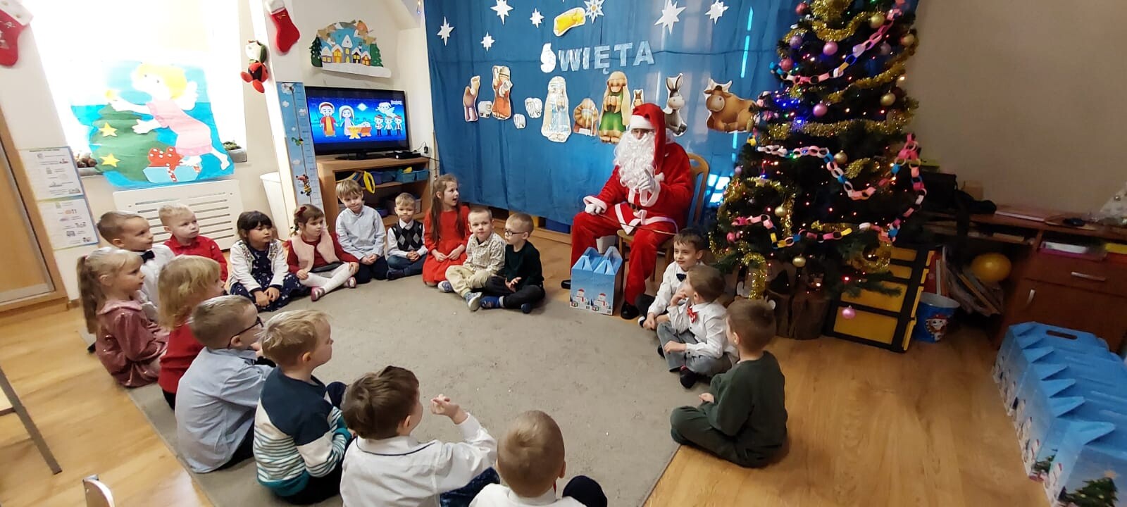 Wielką radość sprawiło dzieciom pojawienie się długo wyczekiwanego gościa – Świętego Mikołaja, którego powitały z entuzjazmem i obdarowały przygotowanymi niespodziankami. Wspólne śpiewanie kolęd i ciepła, rodzinna atmosfera sprawiły, że ten dzień na długo pozostanie w pamięci dzieci, wprowadzając wszystkich w prawdziwie świąteczny nastrój.