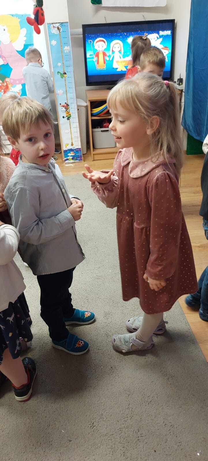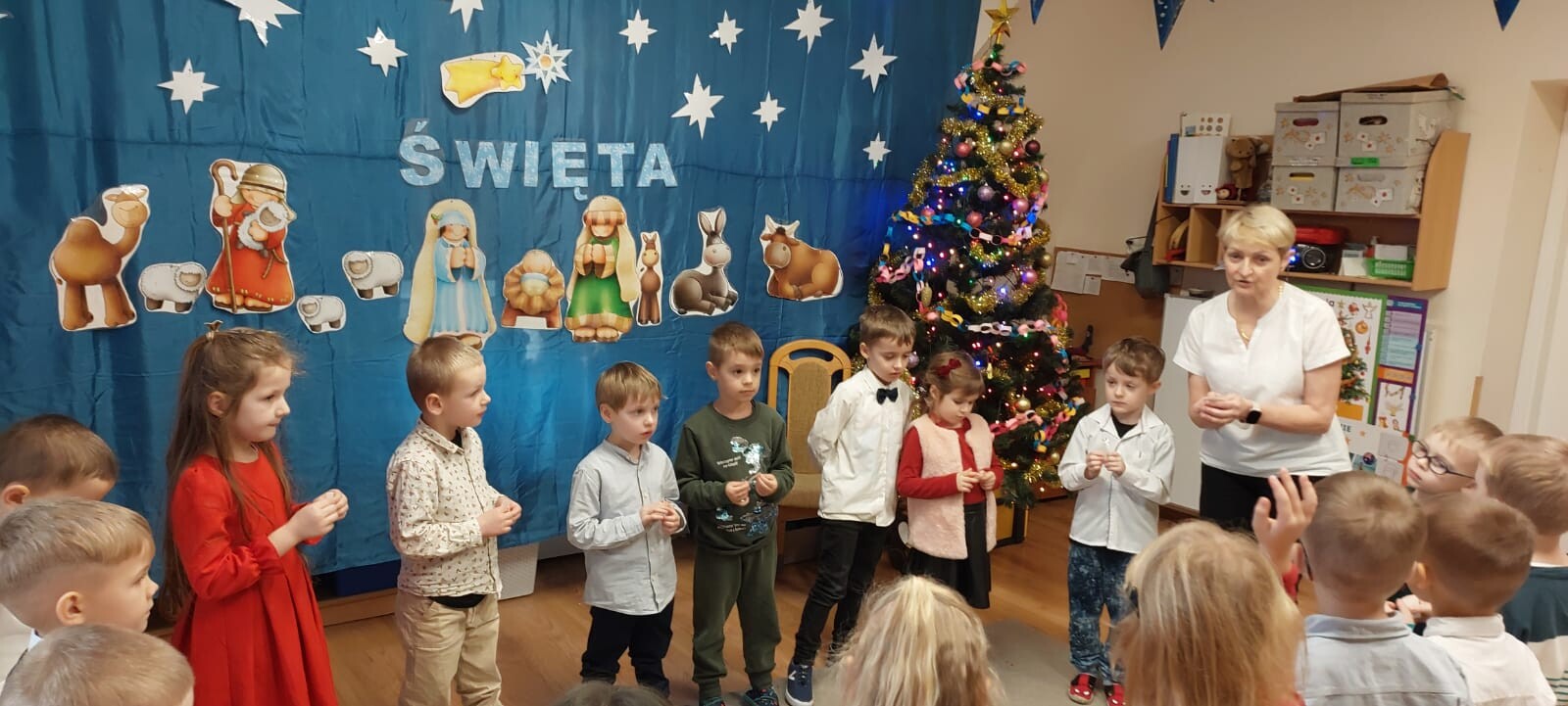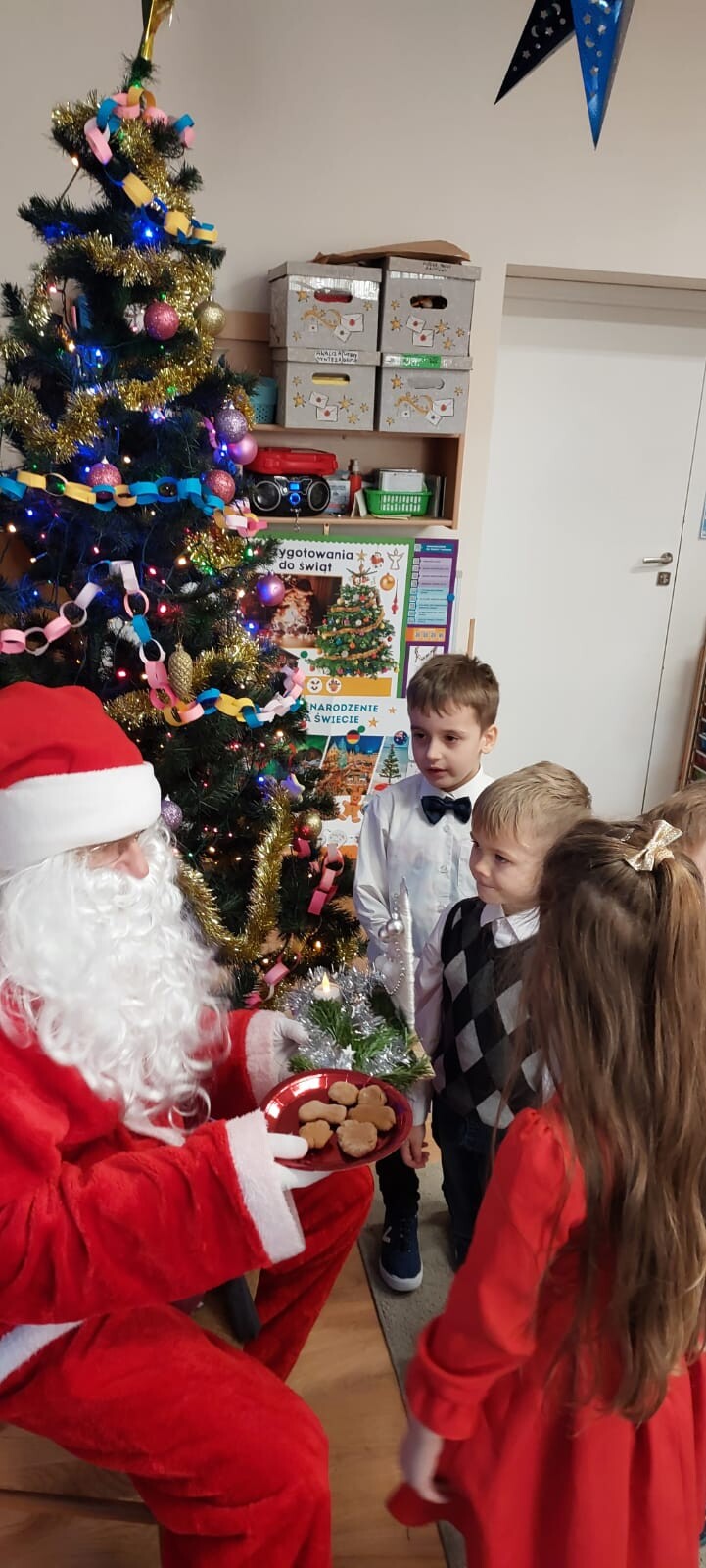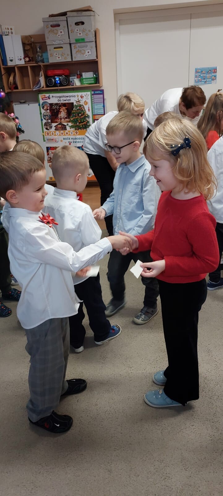 Wielką radość sprawiło dzieciom pojawienie się długo wyczekiwanego gościa – Świętego Mikołaja, którego powitały z entuzjazmem i obdarowały przygotowanymi niespodziankami. Wspólne śpiewanie kolęd i ciepła, rodzinna atmosfera sprawiły, że ten dzień na długo pozostanie w pamięci dzieci, wprowadzając wszystkich w prawdziwie świąteczny nastrój.