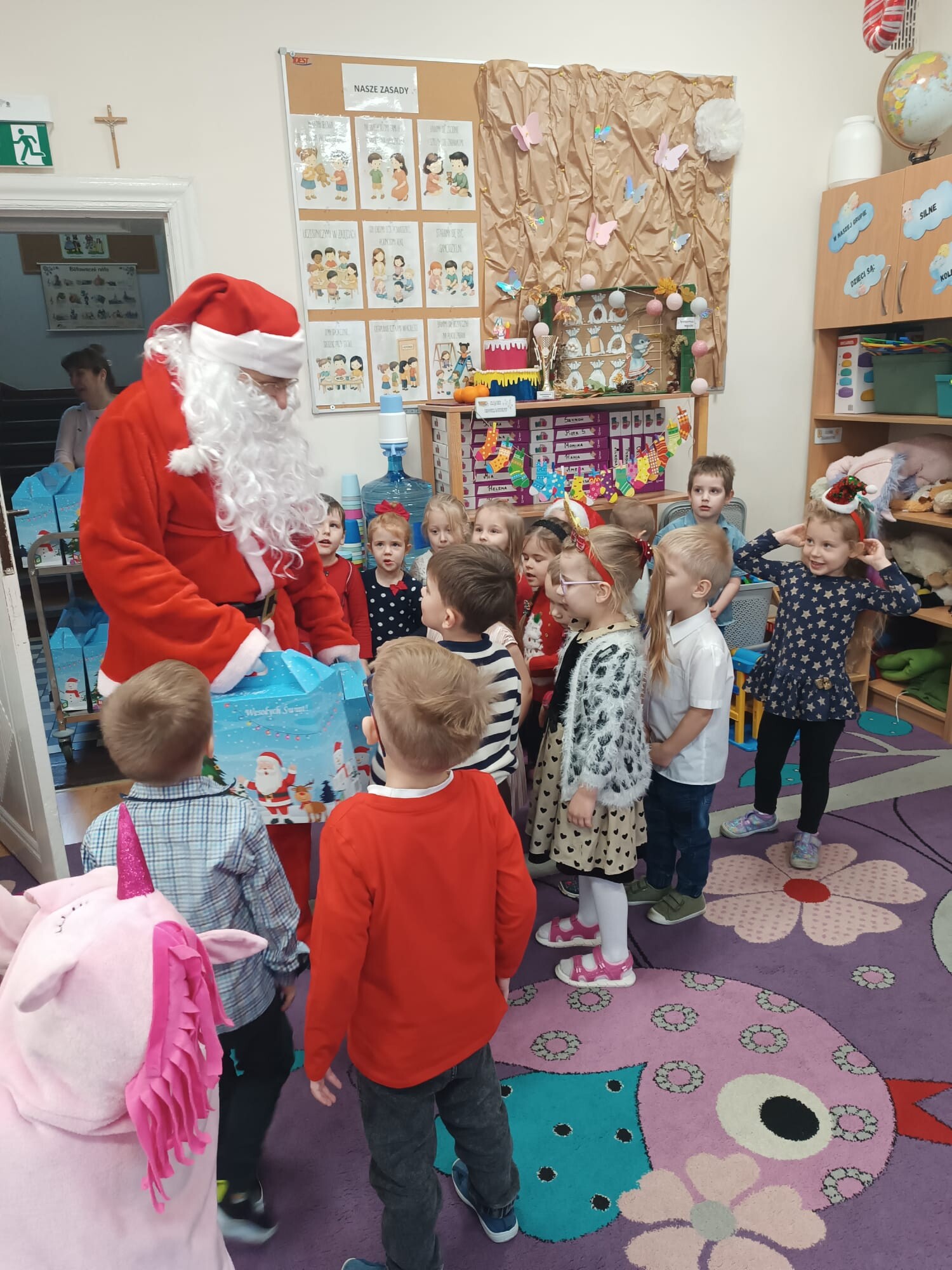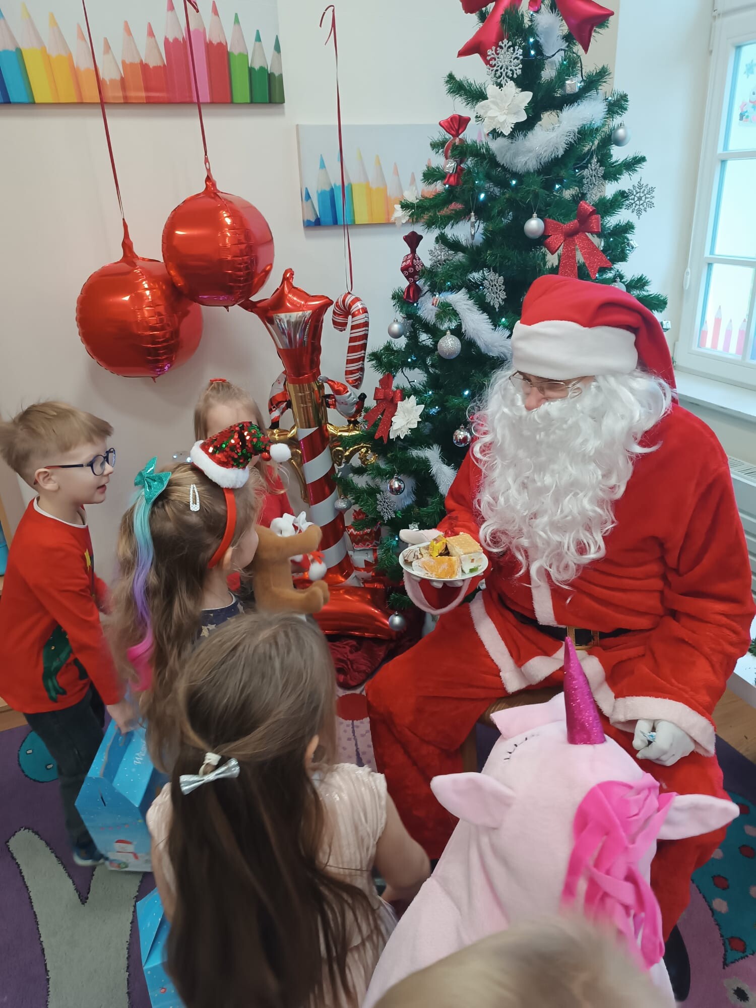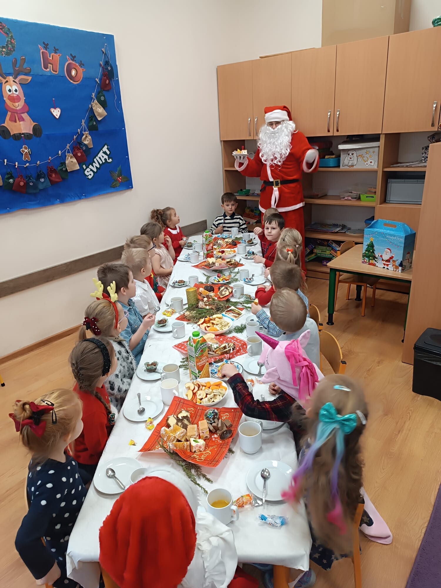 Miłą niespodzianką była wizyta Świętego Mikołaja, który przyniósł dzieciom podarunki. W podziękowaniu Kangury zaprosiły go do swojego wigilijnego stołu i poczęstowały przygotowanymi smakołykami.