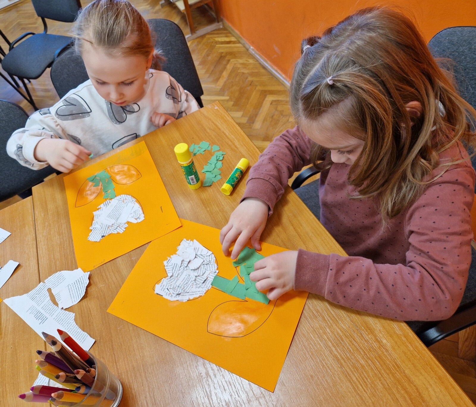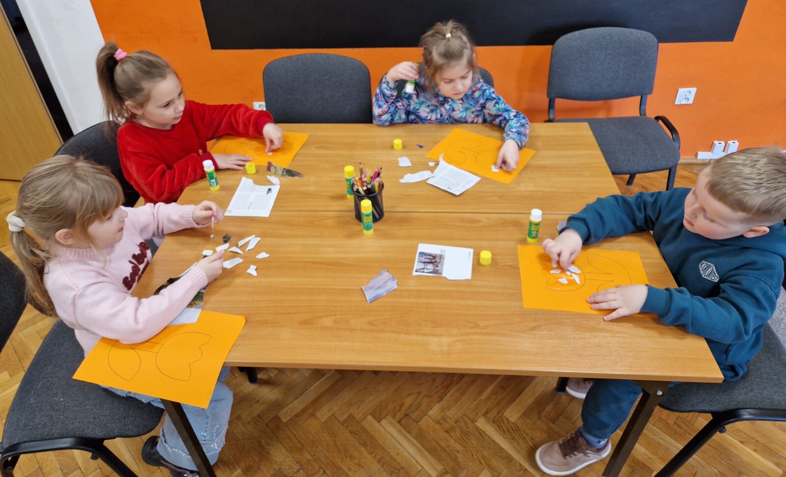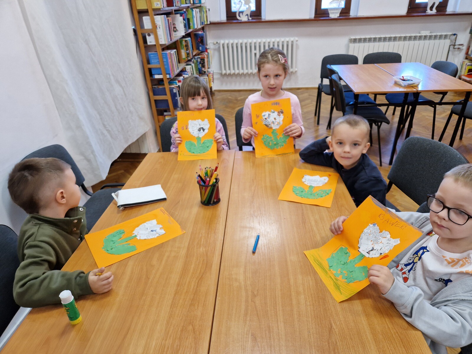 Na początku uczestnicy z dużym zaangażowaniem wykonali własnoręcznie piękne tulipany z gazet oraz kolorowego papieru, rozwijając swoją kreatywność i zdolności manualne. Następnie dzieci przystąpiły do rozwiązywania krzyżówki, której hasłem była „wiosna” – przewodni temat całego spotkania. Zadanie zostało wykonane bardzo sprawnie dzięki współpracy i wzajemnej pomocy.