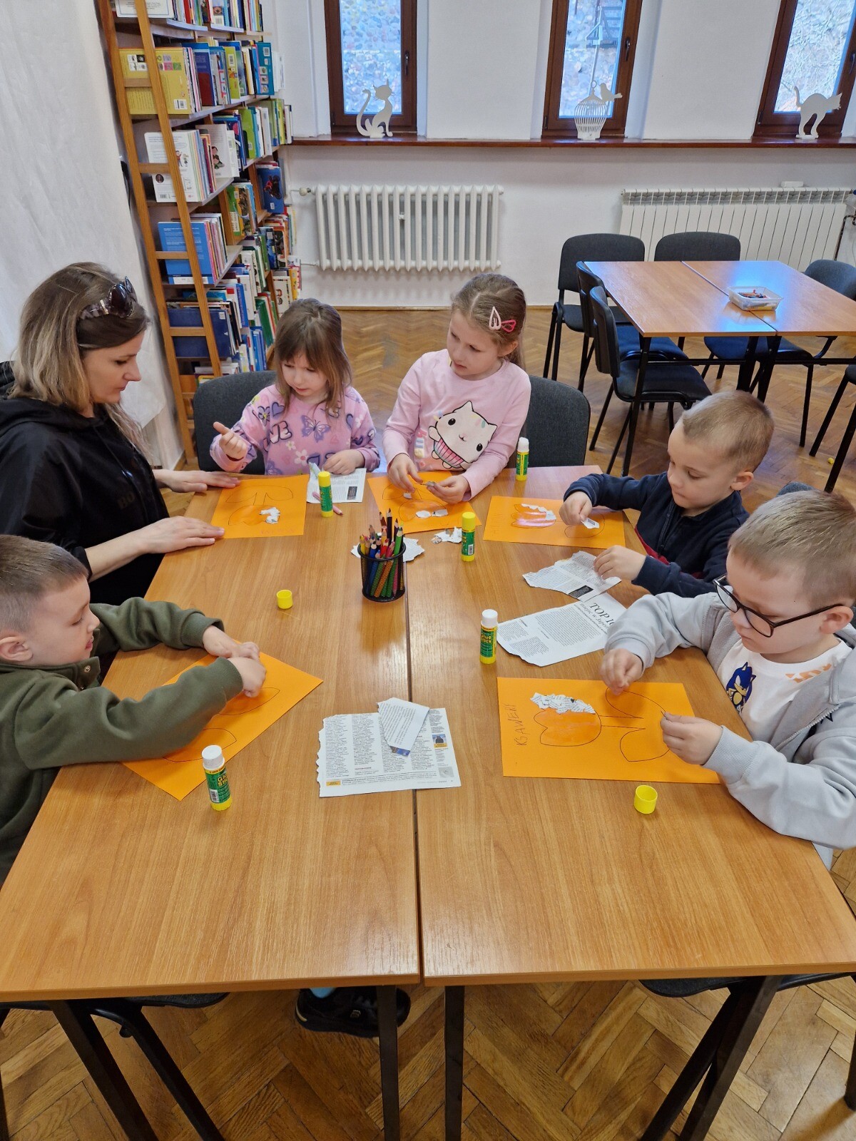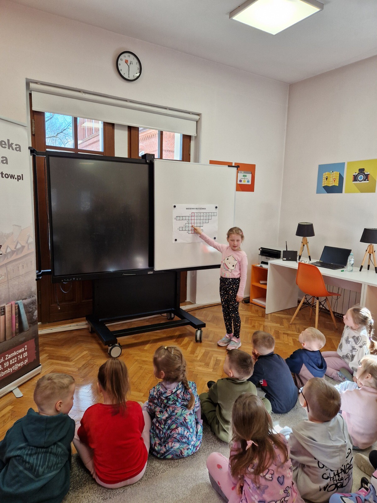 Na zakończenie wszyscy z uwagą wysłuchali opowiadania z morałem „Współpraca się opłaca”, które podkreśliło, jak ważne jest działanie w grupie oraz wspieranie się nawzajem. Wyjście do biblioteki było nie tylko ciekawą przygodą, ale także cenną lekcją współdziałania.