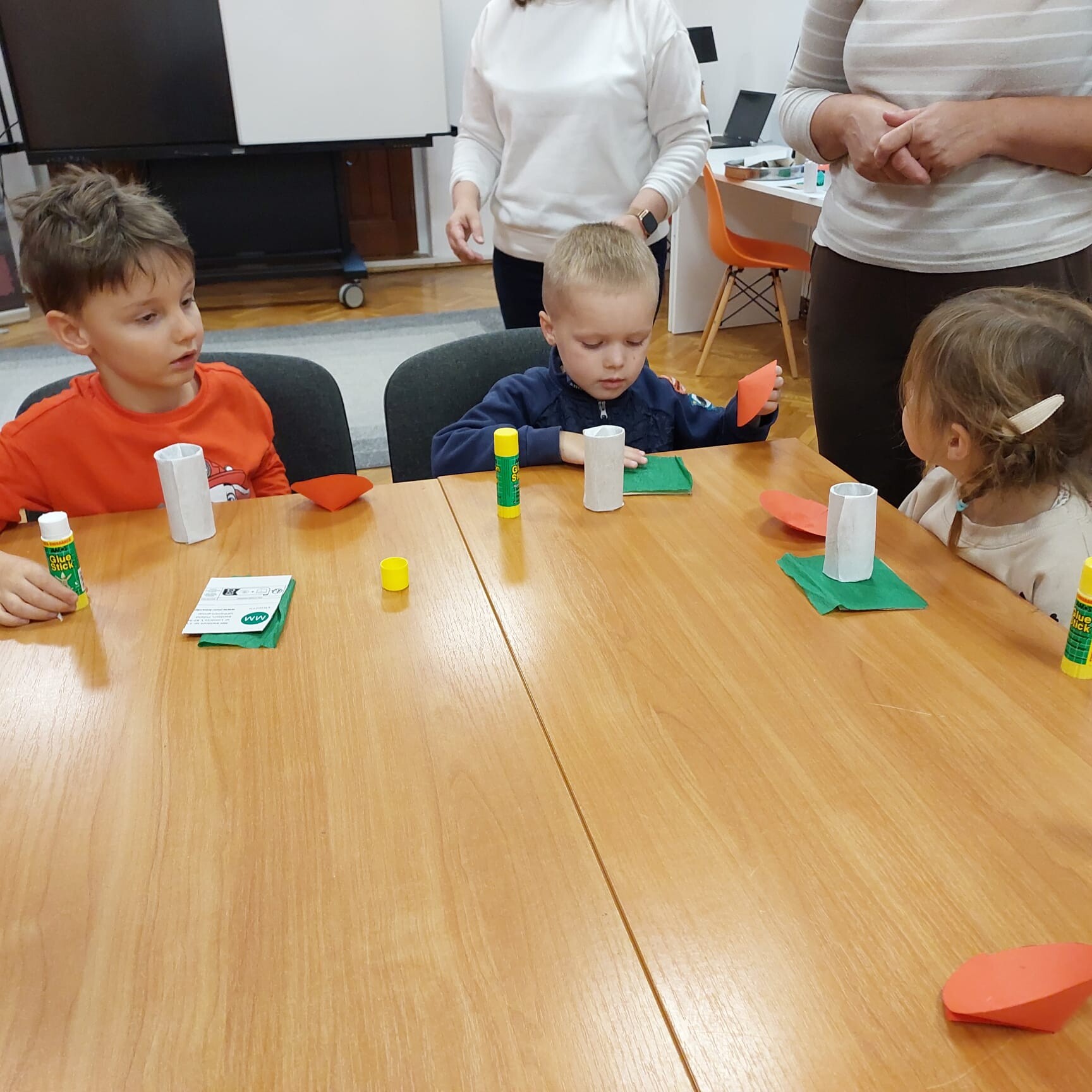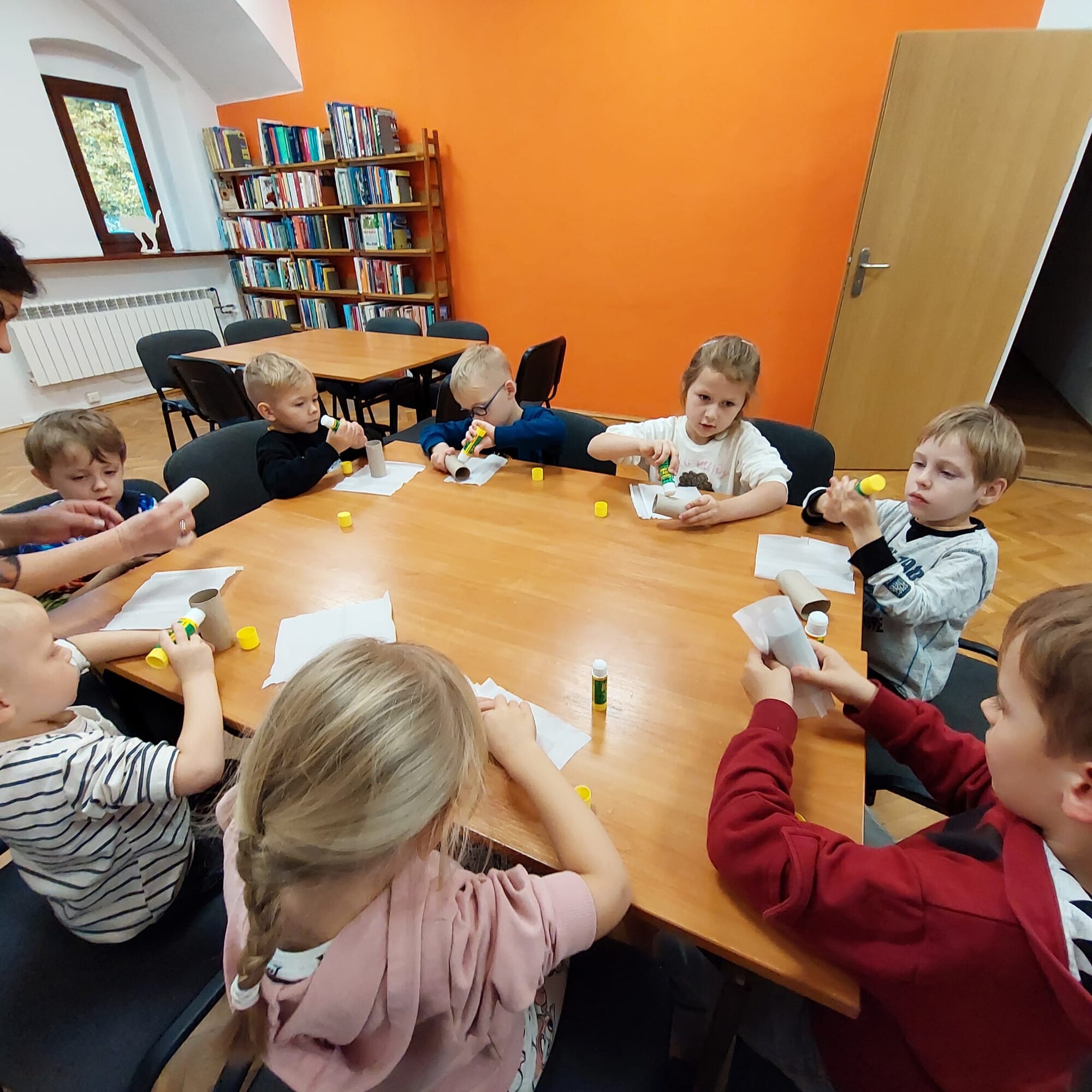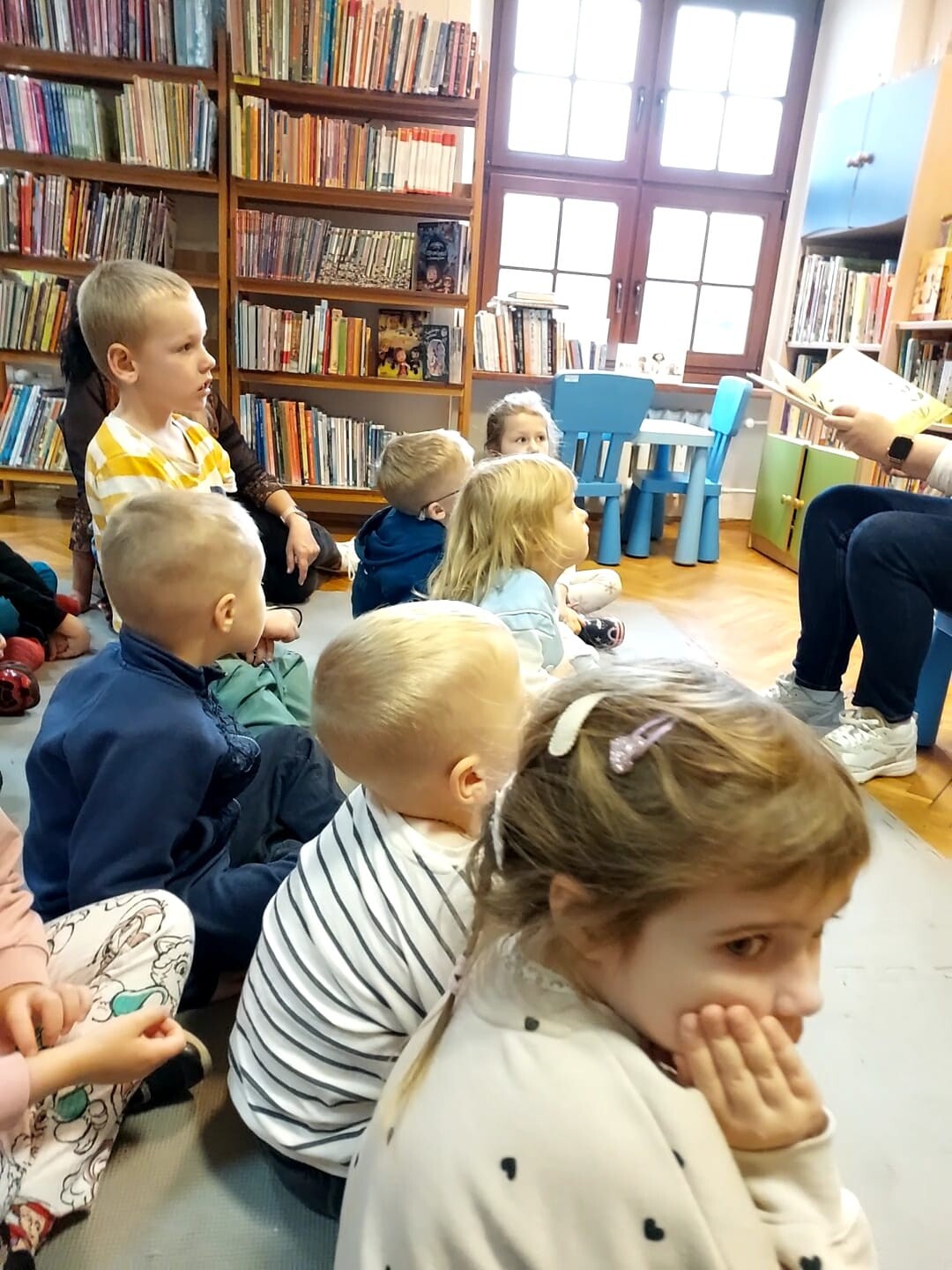 Podczas spotkania dzieci dowiedziały się, na czym polega praca pań bibliotekarek oraz jak wiele ciekawych form spędzania czasu oferuje biblioteka. Z przygotowanych przez panie materiałów przedszkolaki wykonały własne muchomorki, a wirtualna wyprawa do zaczarowanego lasu i zabawy w nim dostarczyły im wielu emocji i radości.