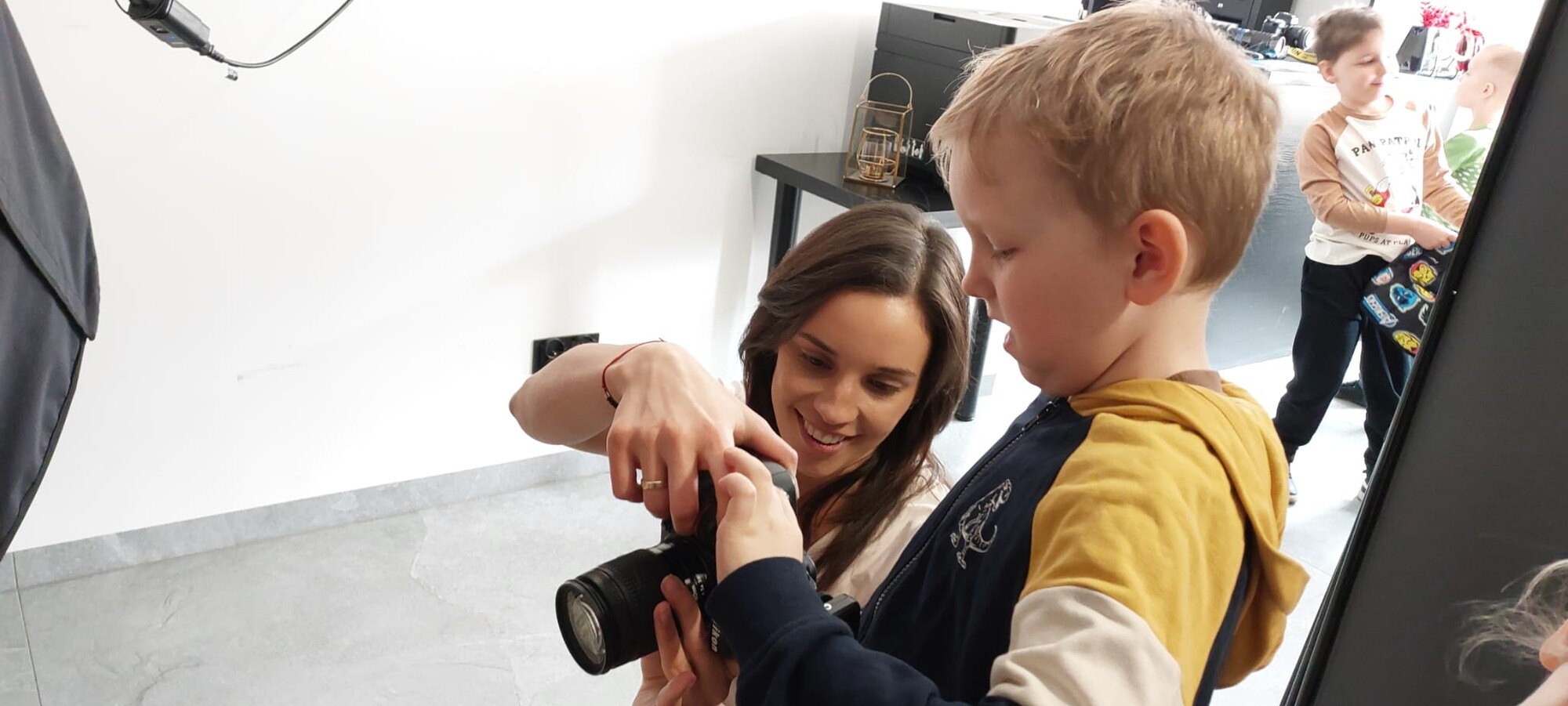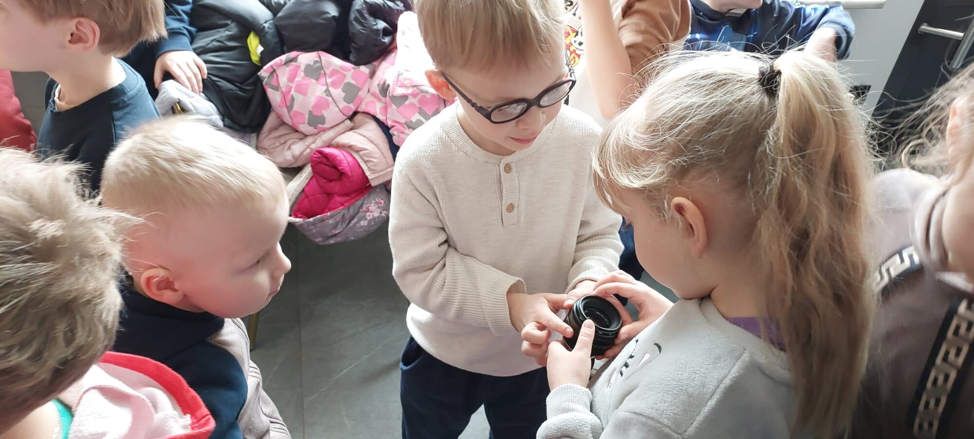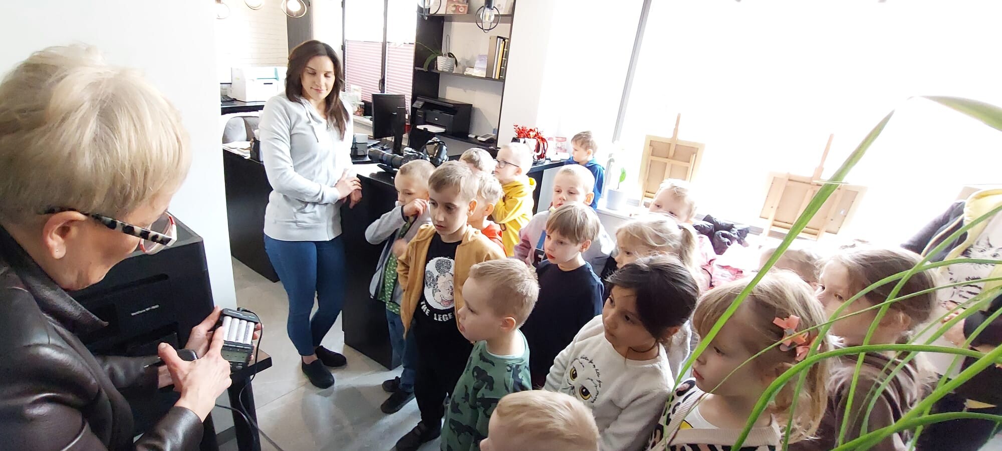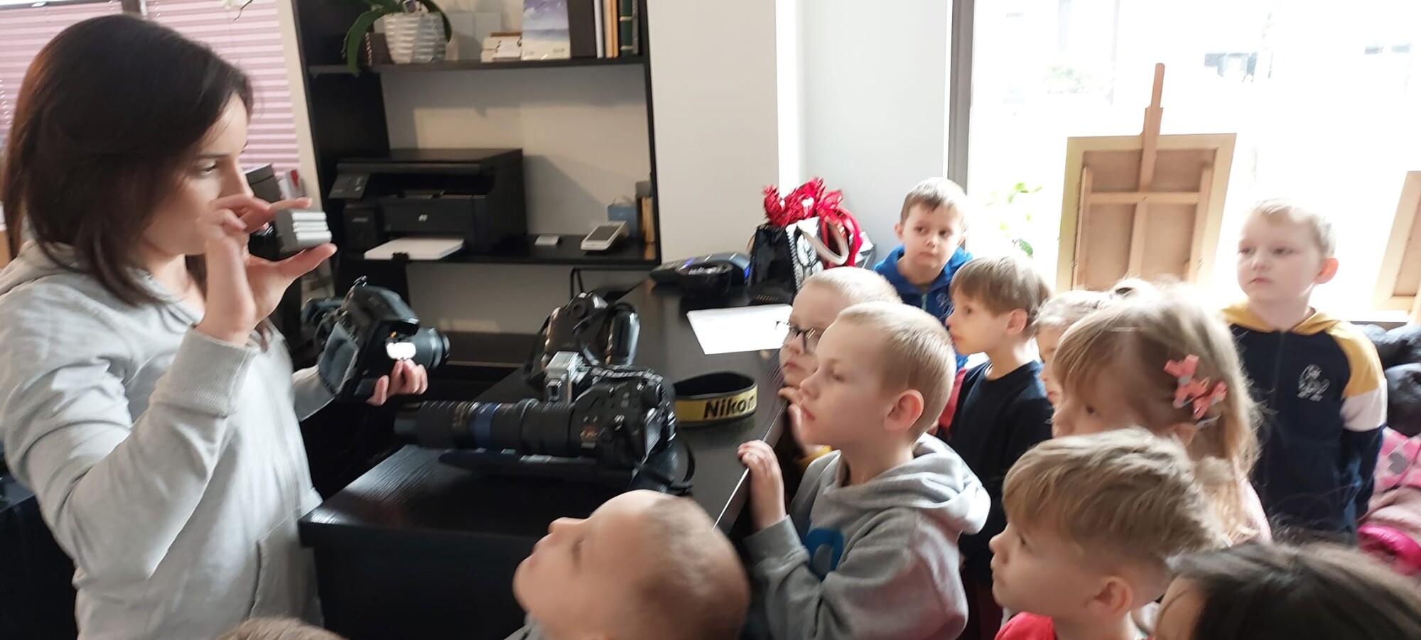 Podczas spotkania dzieci dowiedziały się, jakie są rodzaje fotografii, a także miały okazję obejrzeć zarówno dawne, jak i współczesne aparaty fotograficzne. Z dużym zainteresowaniem obserwowały pracę pani fotograf podczas sesji z klientami.