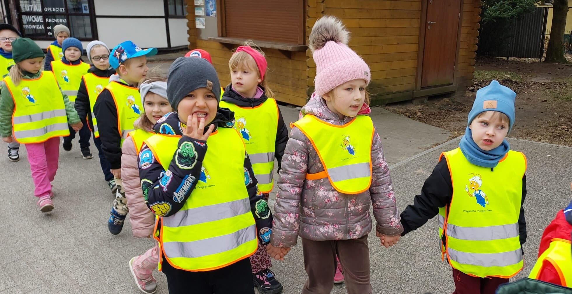 Motylki i Tygrysy poznają pracę pocztowców. W tym celu obie grupy wybrały się wraz ze swoimi wychowawczyniami na wycieczkę do Urzędu Pocztowego, aby wysłać list i nadać paczkę.