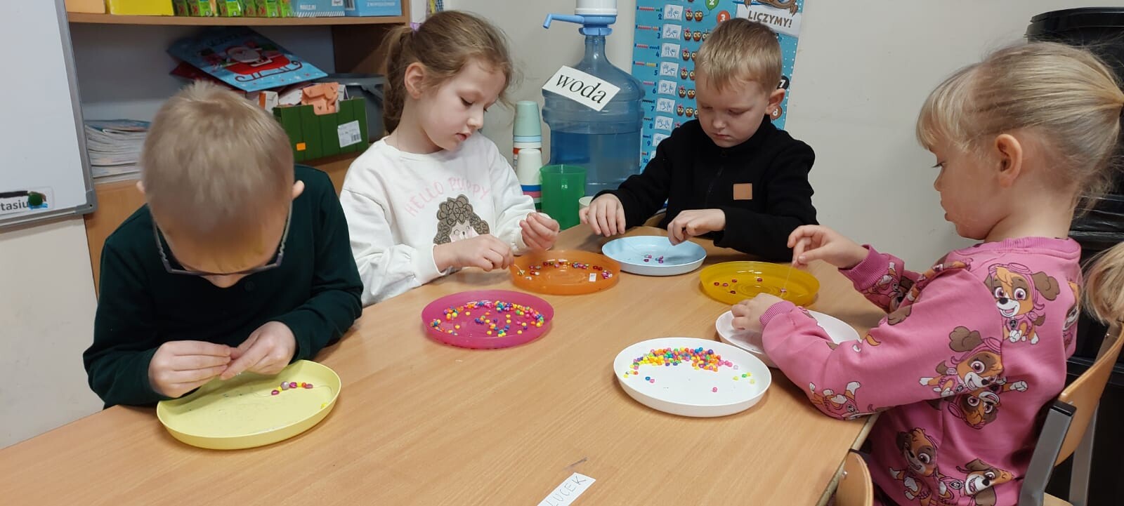Nasze przedszkolaki wspólnie ułożyły i pokolorowały puzzle, tworząc piękną pracę plastyczną dla kotków.
